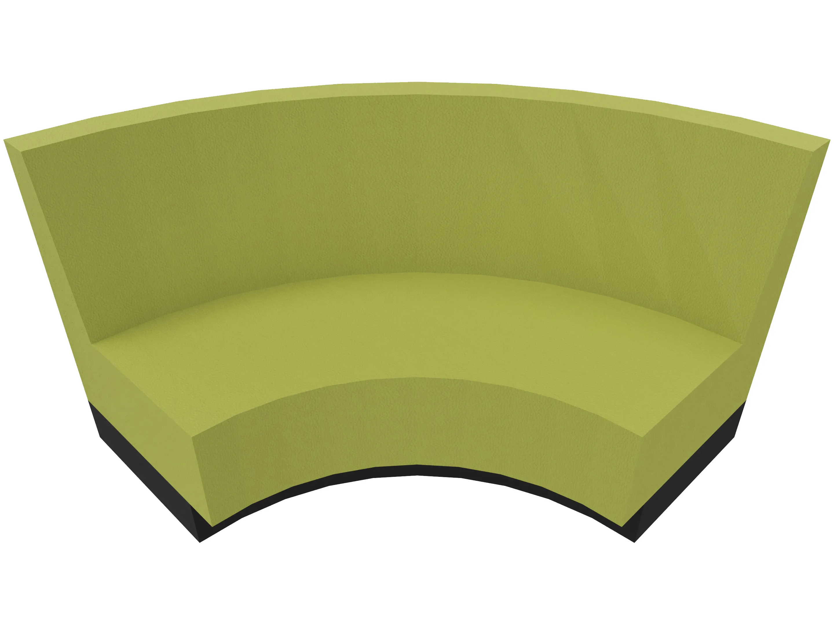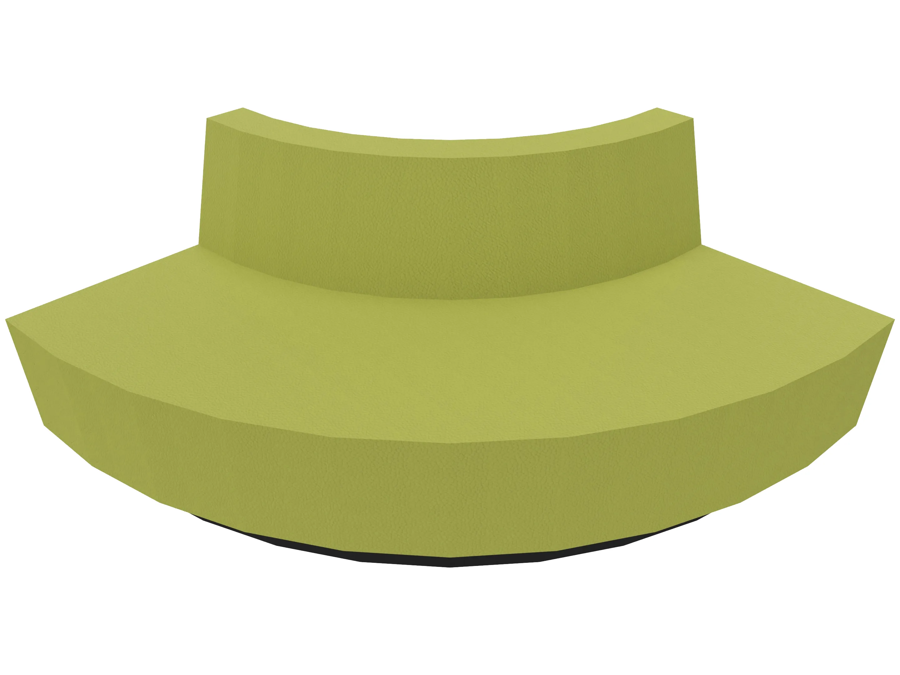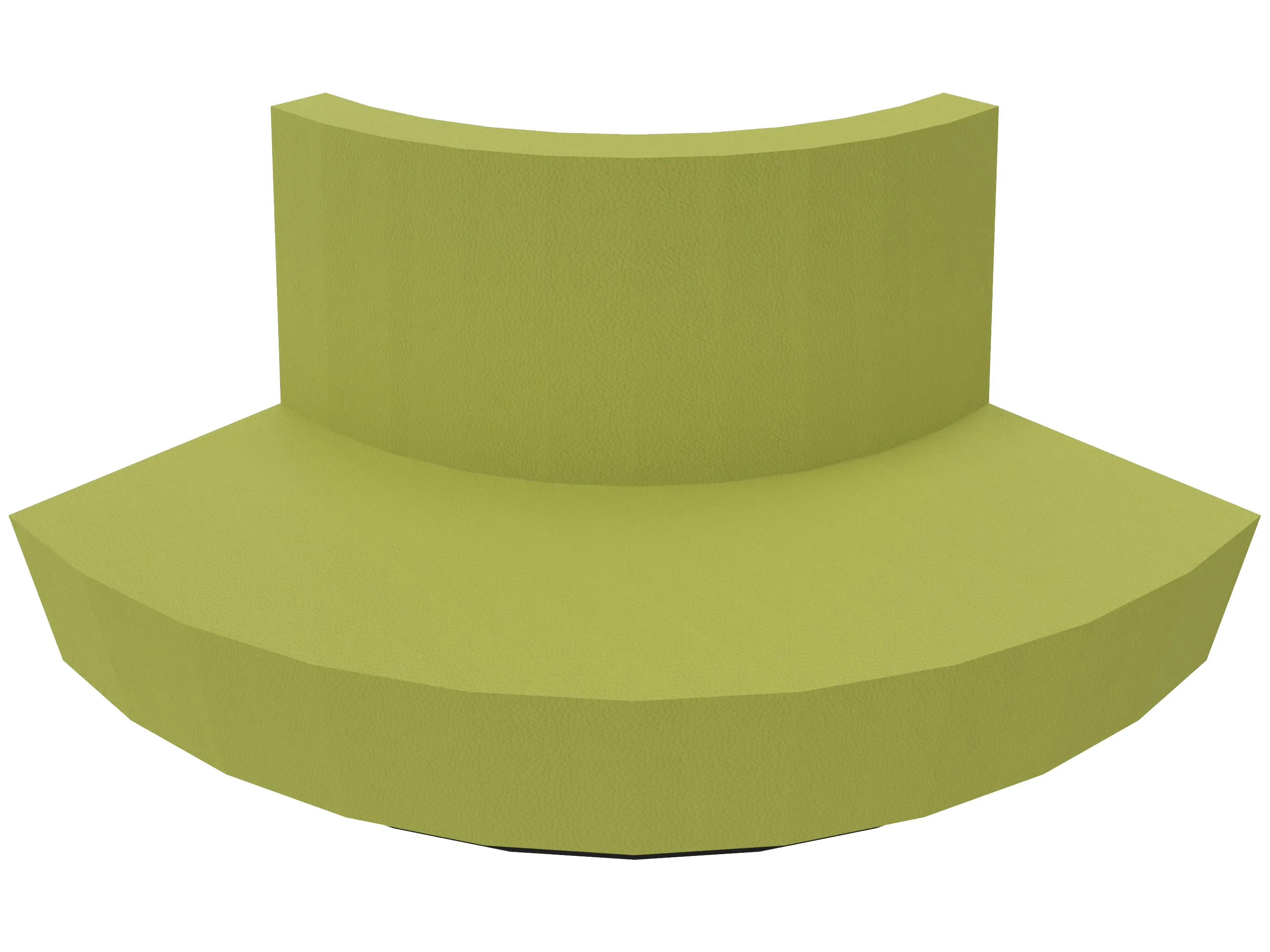 Treinbank met sokkel in een kwartronde vorm voor het maken van binnenbochten (rugleuning aan de lange zijde). Buitendiameter is 2700mm, binnendiameter is 1400mm. Rughoogte: 750mm, diepte: 650mm. Standaard zithoogte is 460mm.