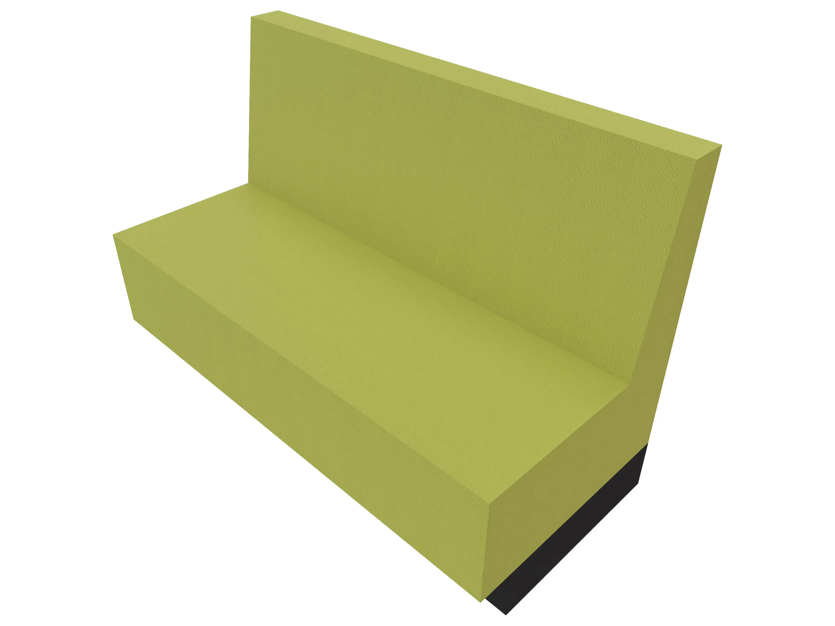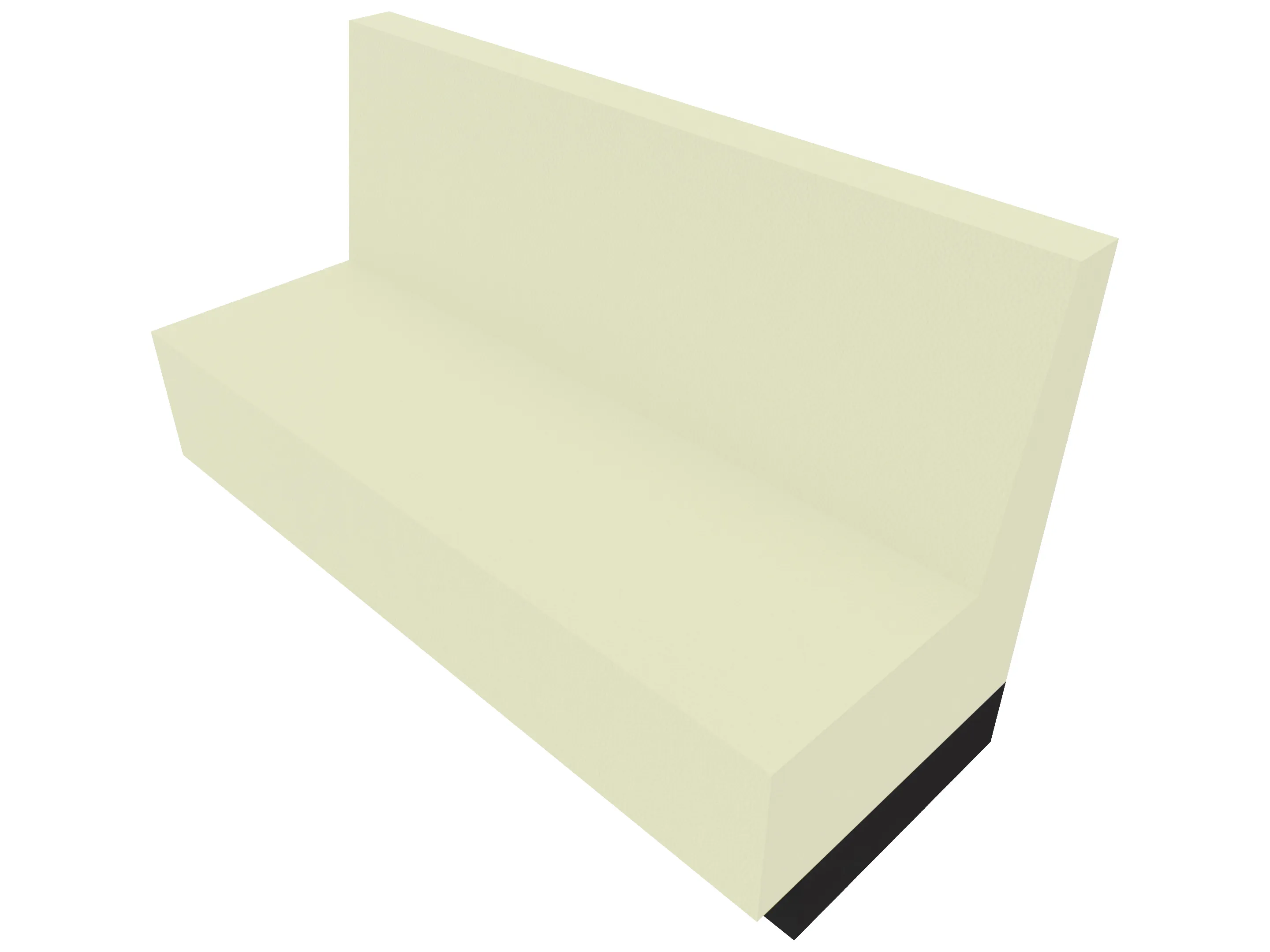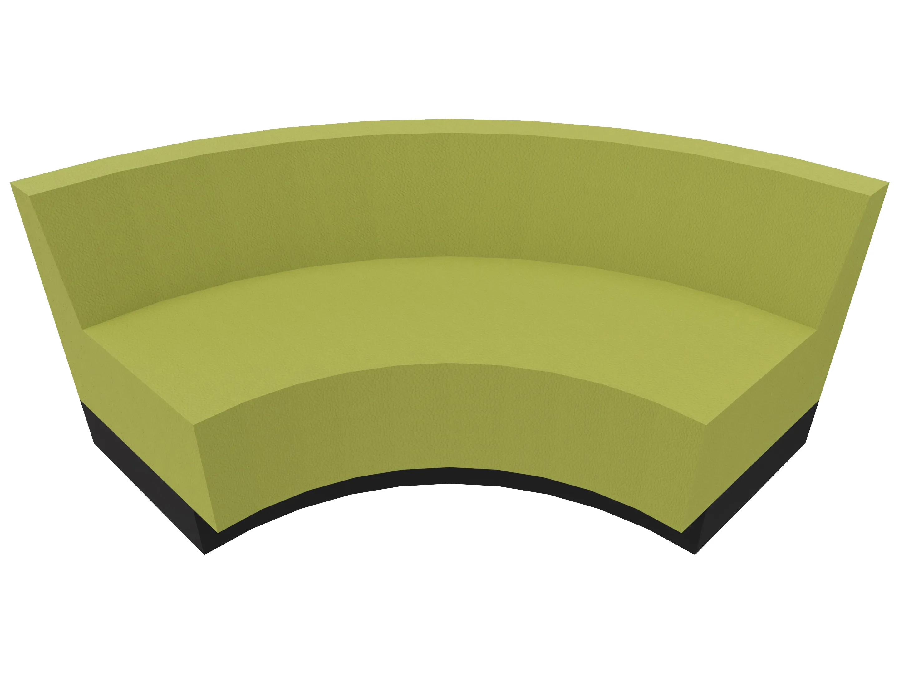 Treinbank met sokkel in een kwartronde vorm voor het maken van binnenbochten (rugleuning aan de lange zijde). Buitendiameter is 2700mm, binnendiameter is 1400mm. Rughoogte: 750mm, diepte: 650mm. Standaard zithoogte is 460mm.