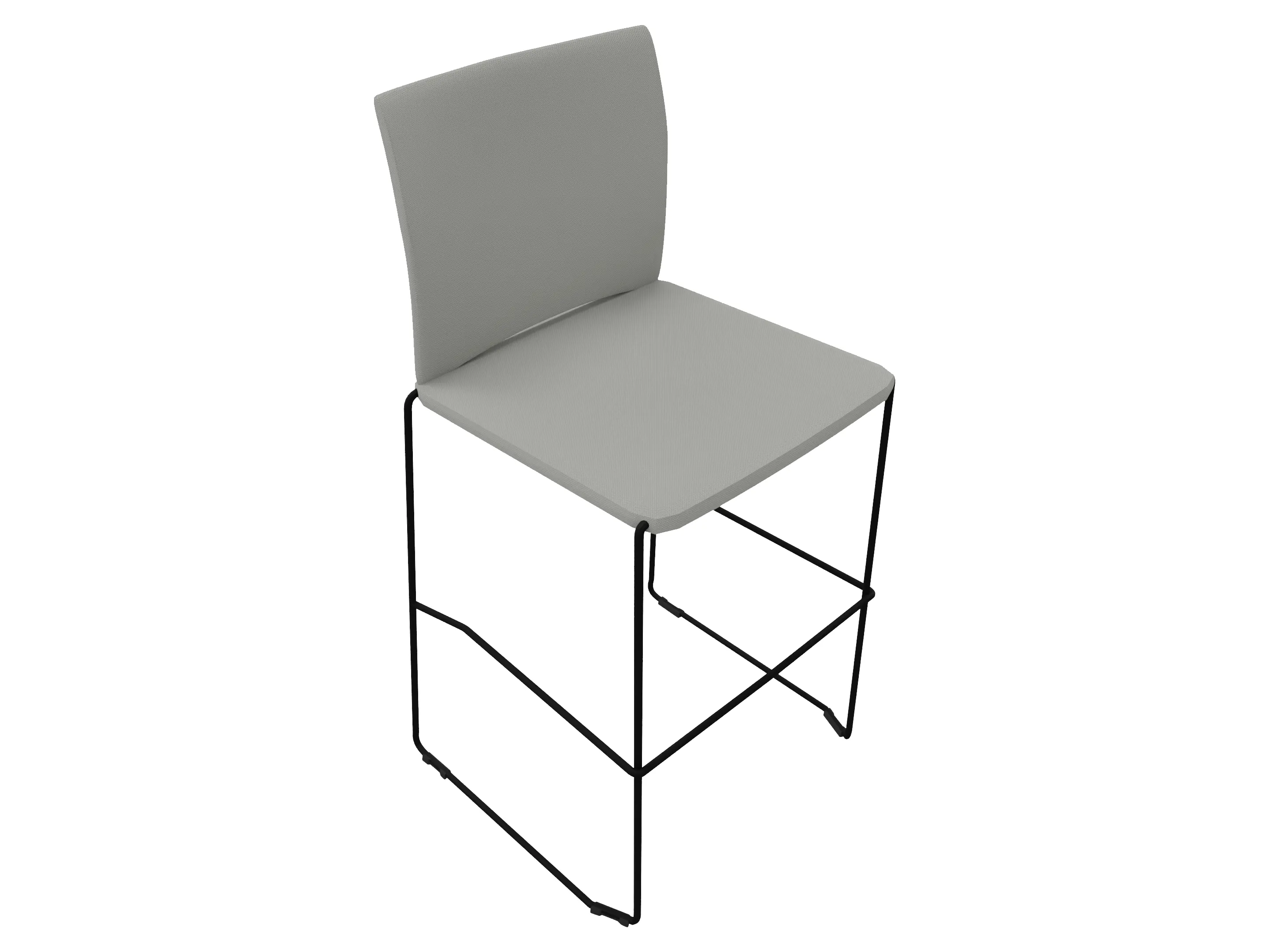 Barkruk met gestoffeerde zitting en rugleuning op een sledeframe. Standaard zonder armleggers.