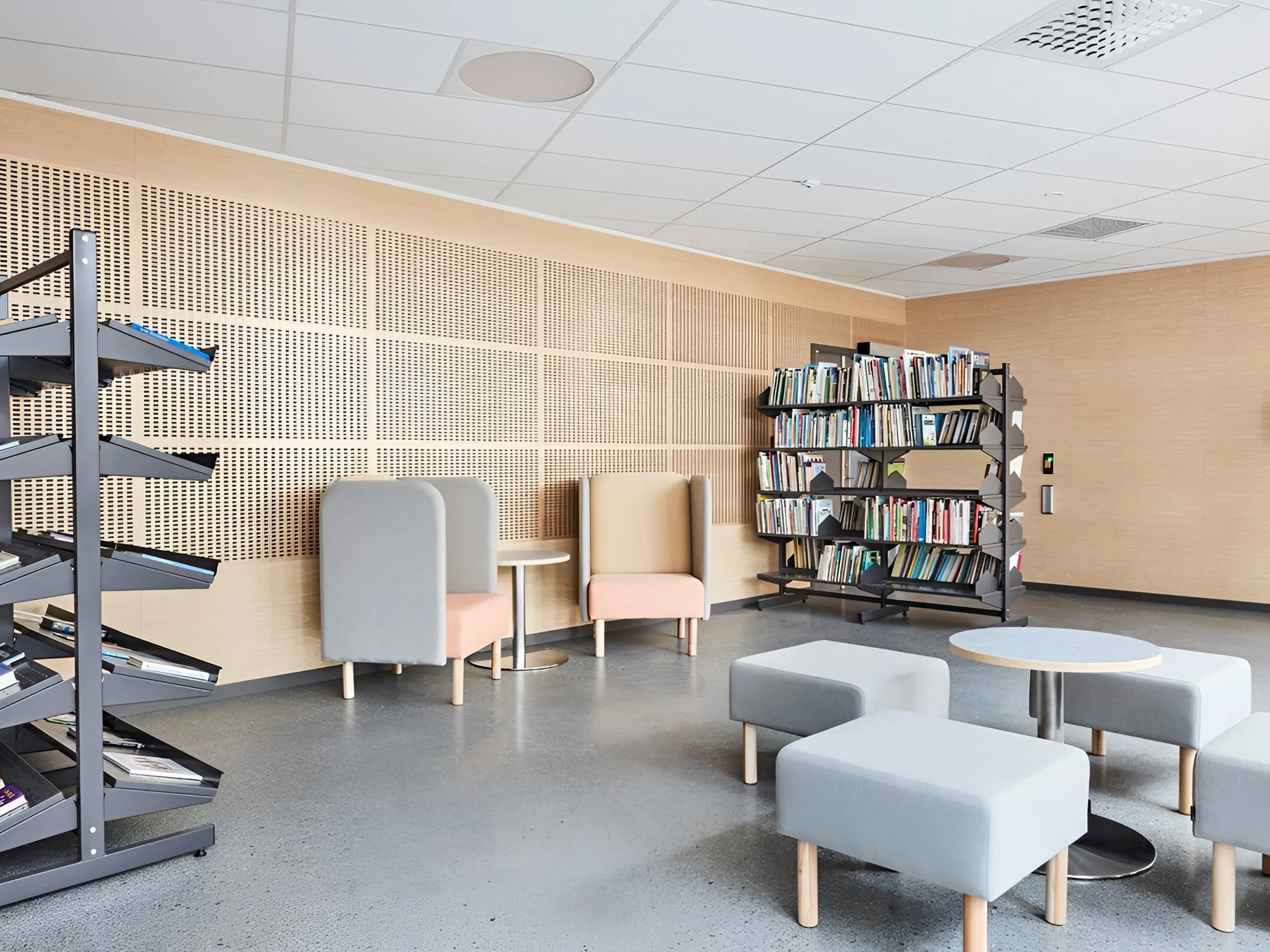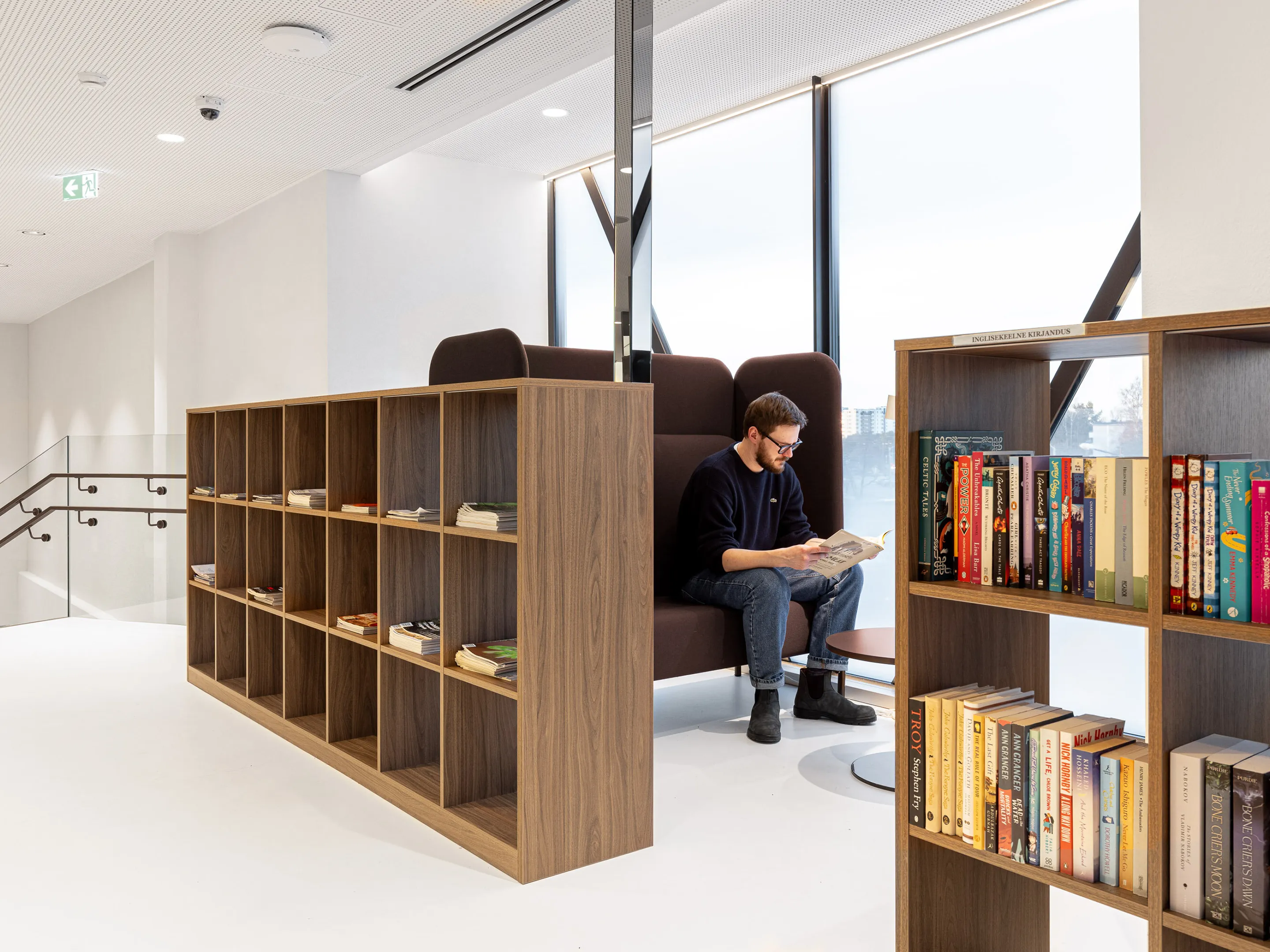 Volledig gestoffeerde 1-zits bank met extra hoge akoestische ombouw aan de zijkanten en achterkant op een 360° draaibaar onderstel. 780 x 750 x 1450mm (B x D x H).