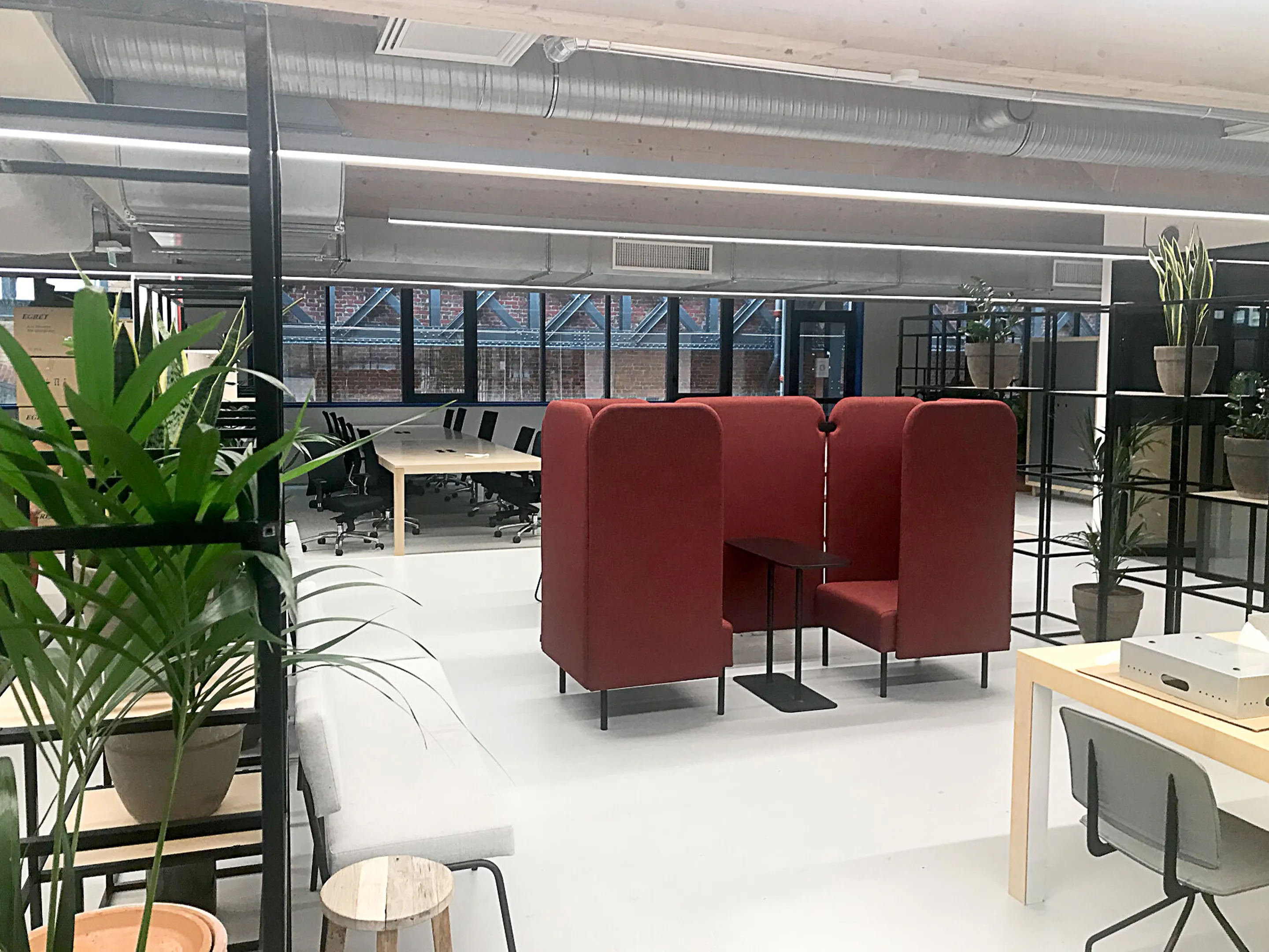 Volledig gestoffeerde workbay met 2x 1-zits bank tegenover elkaar met extra hoge akoestische ombouw aan de zijkanten en achterkant op een 8-poots onderstel. 2300 x 780 x 1450mm (B x D x H). Excl. tafel. Deze moet los worden bijbesteld.