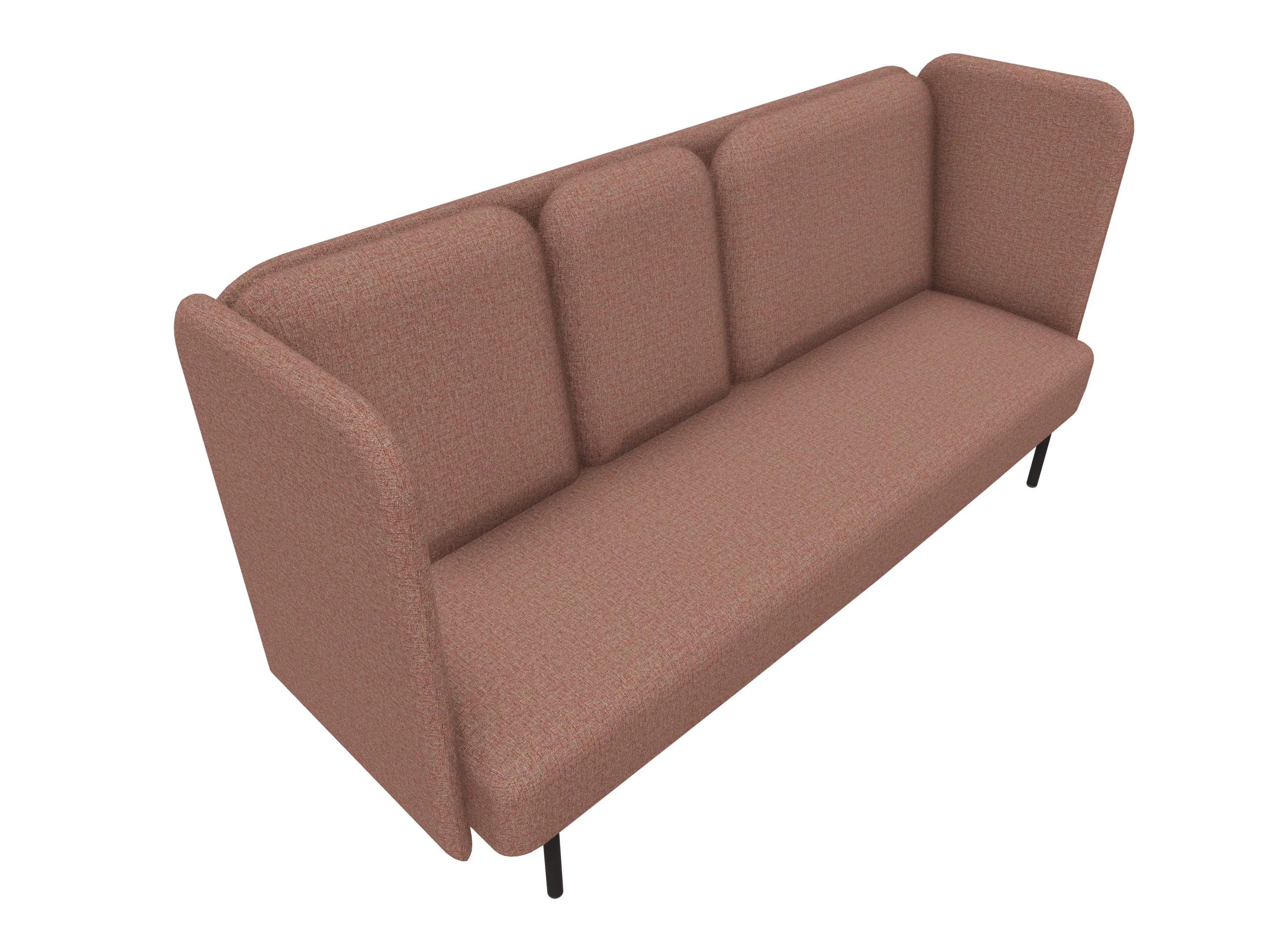 Volledig gestoffeerde 3-zits bank met hoge akoestische ombouw aan de zijkanten en achterkant op een 4-poots onderstel. 2200 x 750 x 1080mm (B x D x H).
