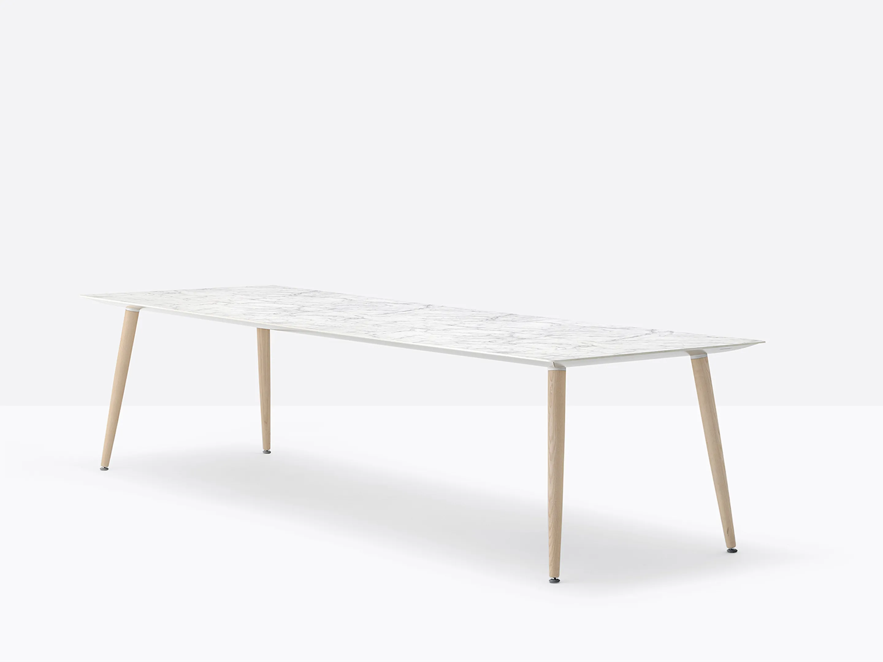 Babila vergadertafel - 1590 x 900mm, houten poten, volkern blad