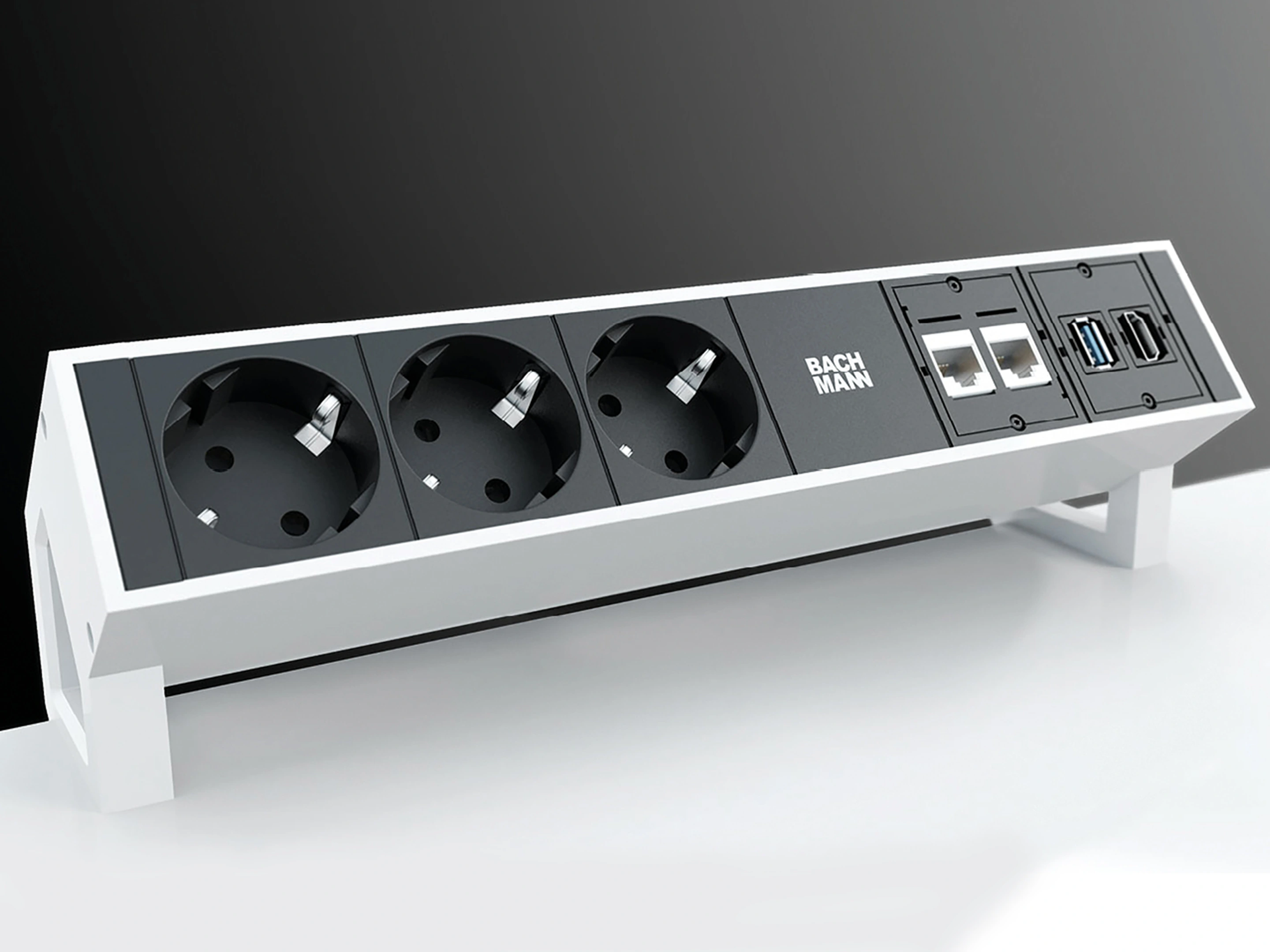 Opbouwunit met 2x 230V (CEE7, voor Nederlands en Duits gebruik), 1x USB-C 60 Watt Charger (1 uitgang), 1x custom module. Incl. 0,2m GST18 doorverbindkabel. De USB Charger is geschikt voor het opladen van kleine en middel grote laptops.