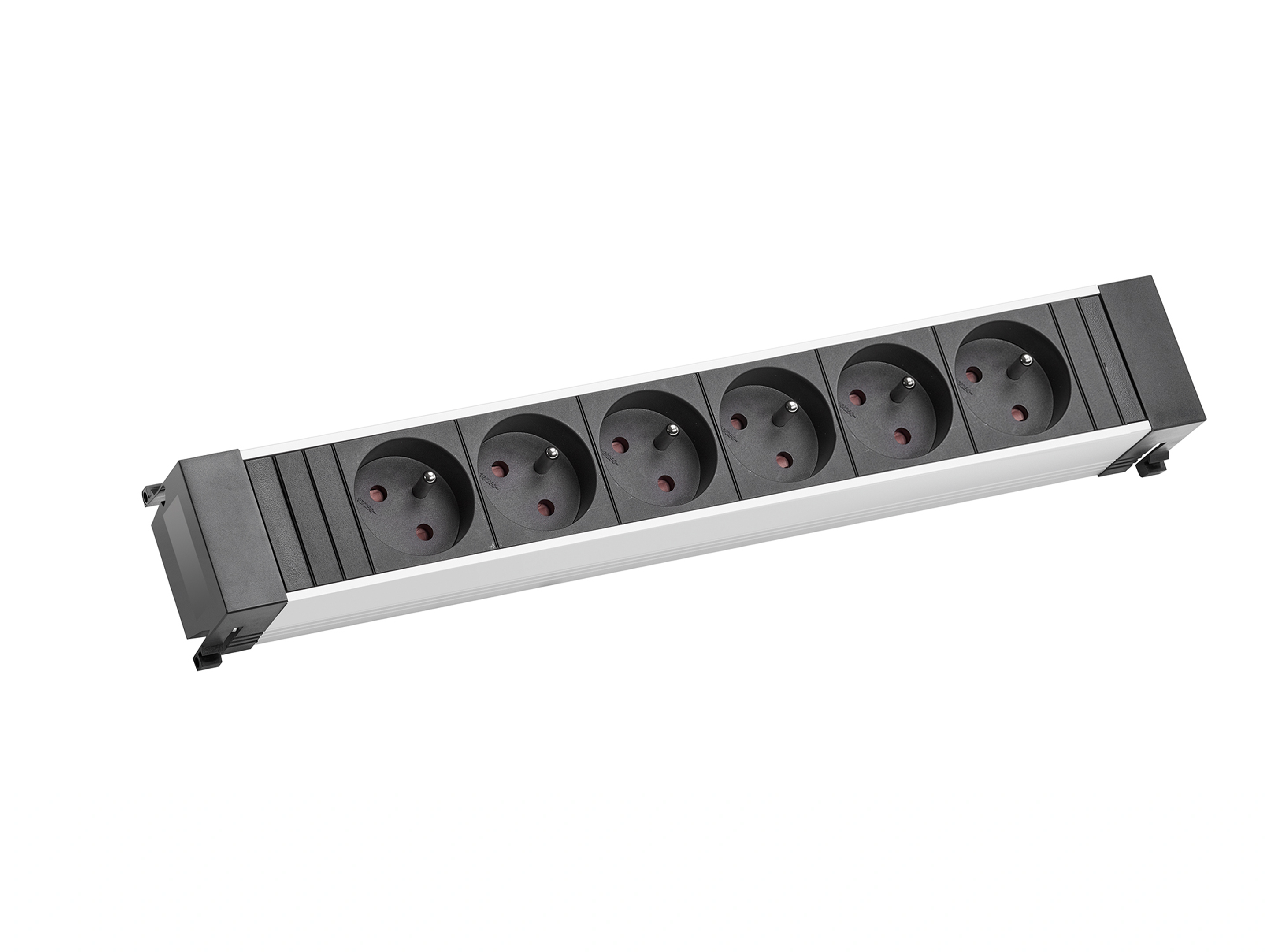 Stekkerdoos voor Powerframe en Powerframe Cover, 6x 230V (CEE7, voor Nederlands en Duits gebruik). . Incl. 0,2m GST18 stekker