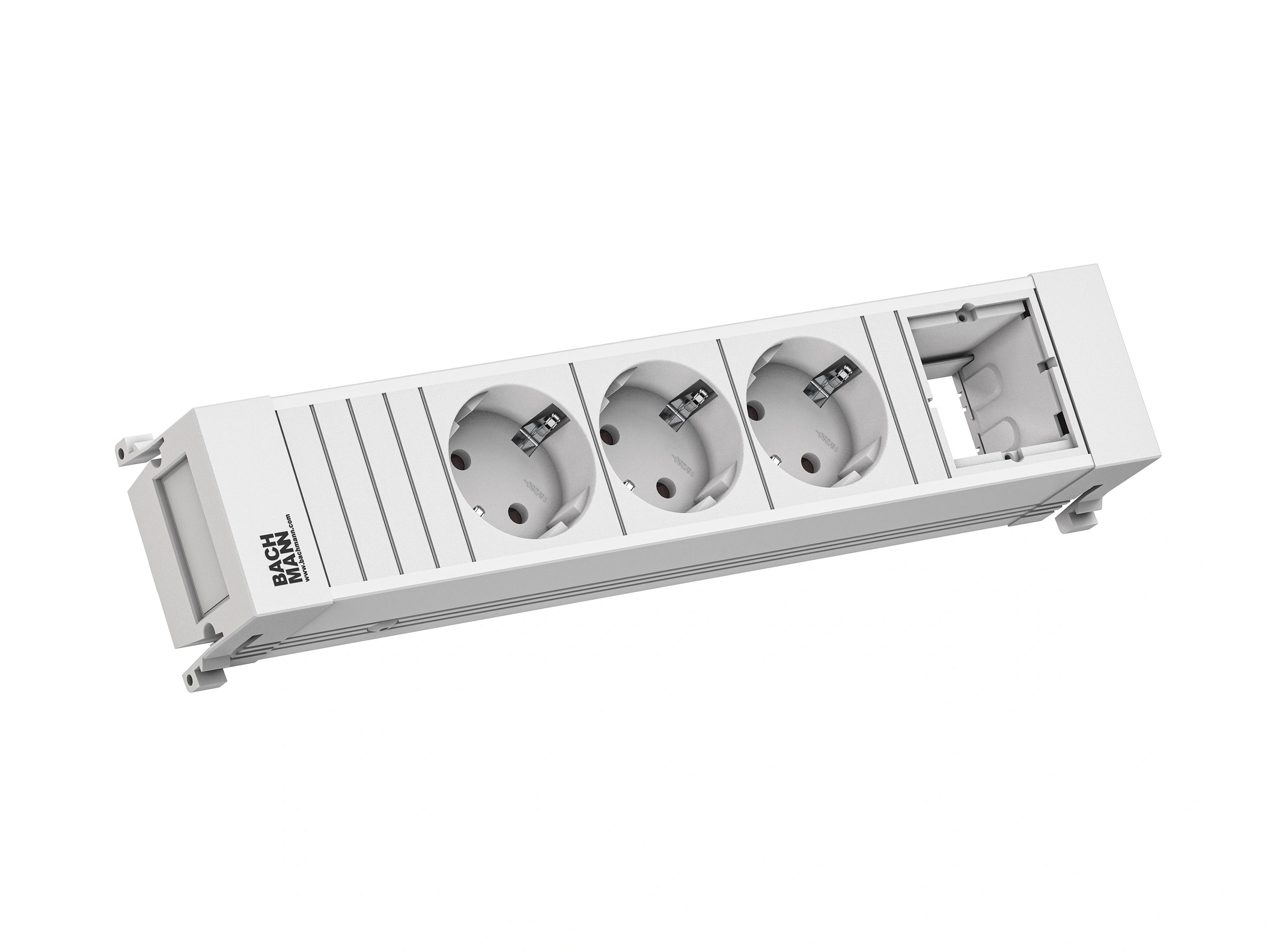 Stekkerdoos voor Powerframe en Powerframe Cover, 3x 230V (CEE7, voor Nederlands en Duits gebruik). 1x Custom Module. Incl. 0,2m GST18 stekker