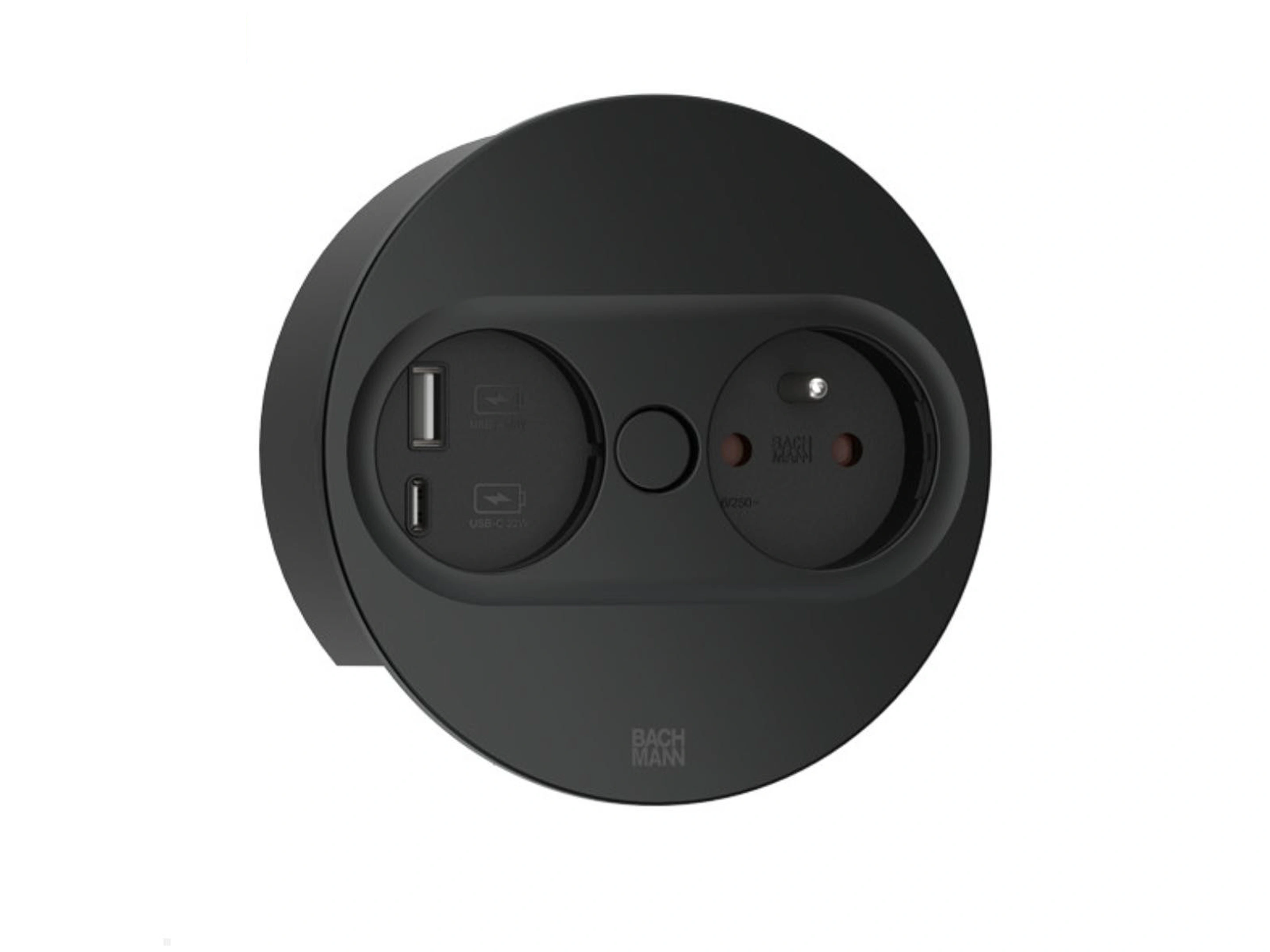 Inbouwunit met 1x 230V (UTE, voor Belgisch en Frans gebruik), 1x USB-A/C (22W) Charger (2 uitgangen), Incl. 2m aansluitkabel.
