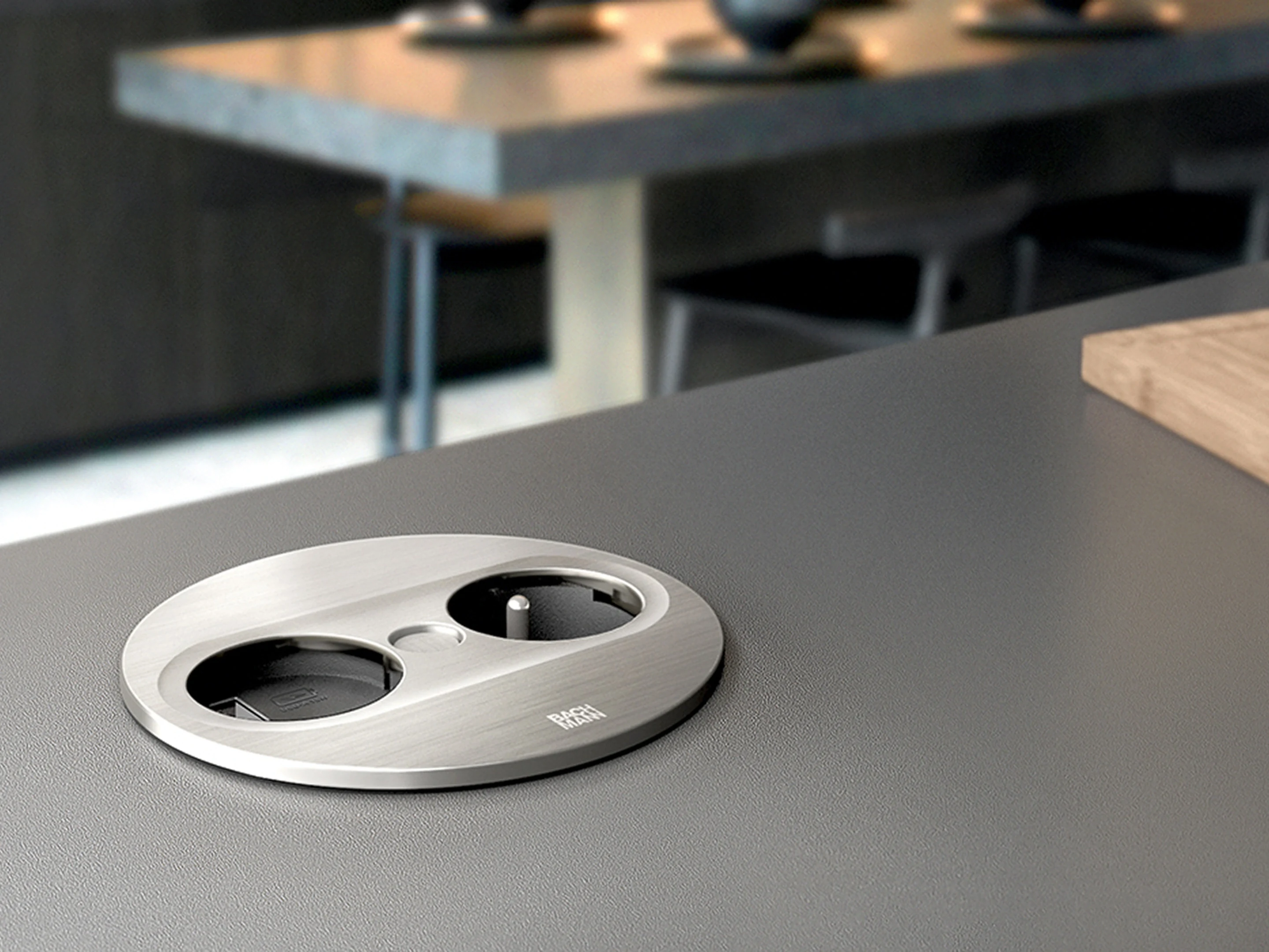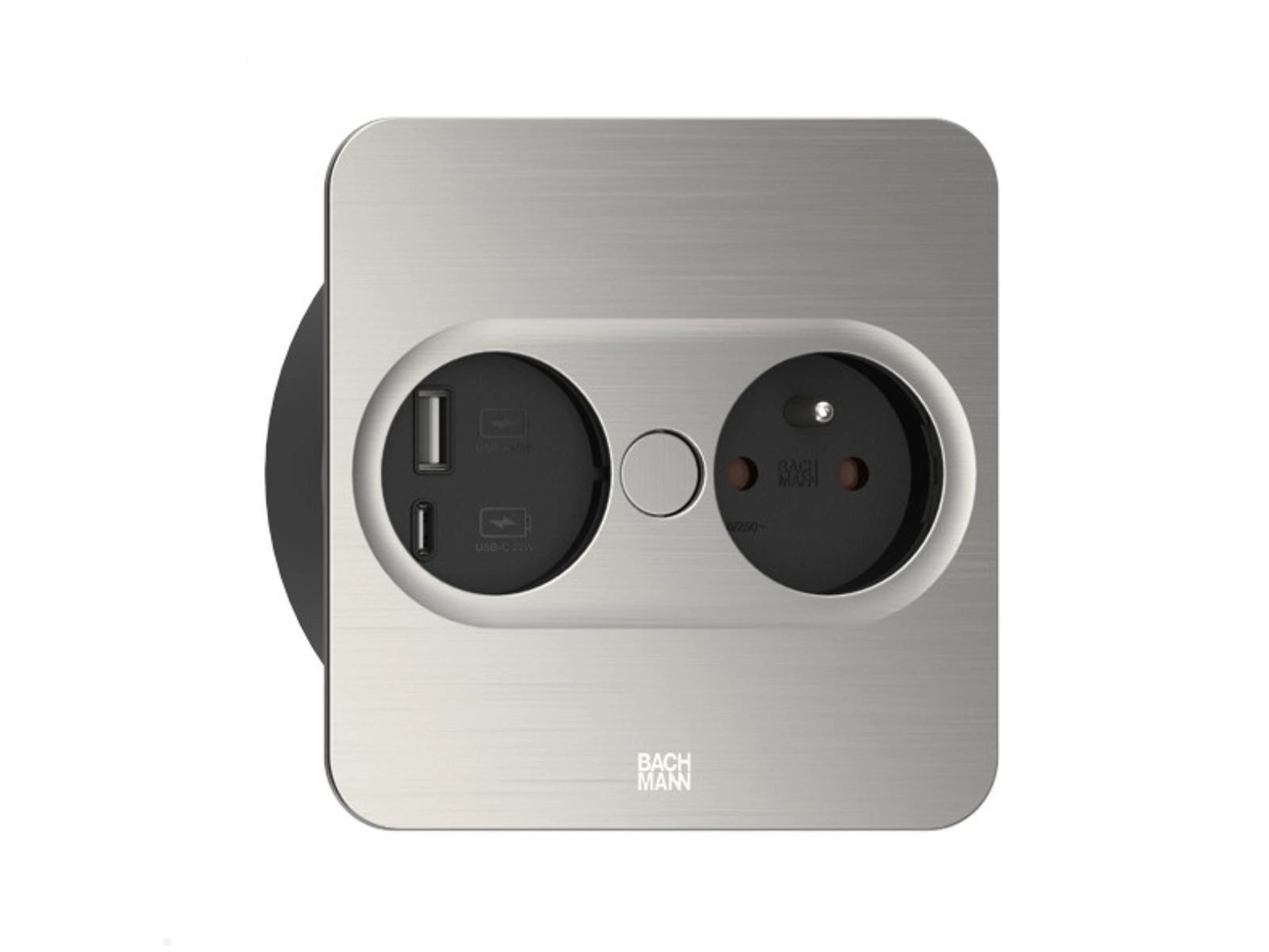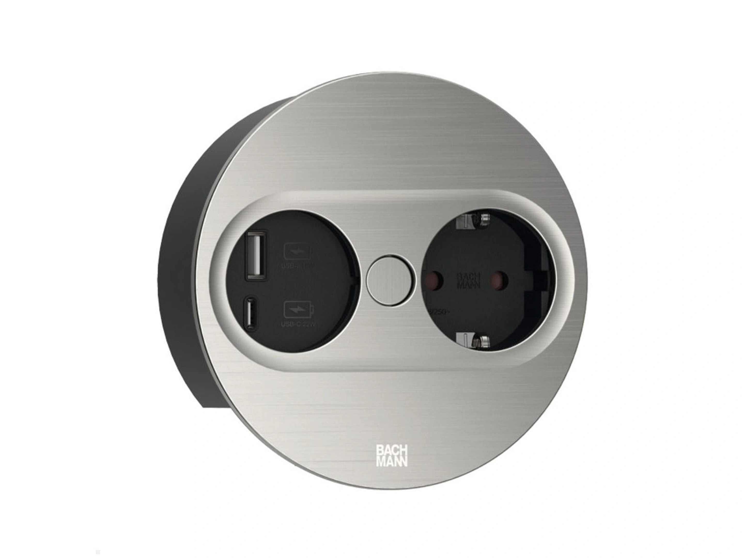 Bachmann Twist 2 - Rond, 1x 230V /CEE7, 1x USB-A/C (22W), RVS