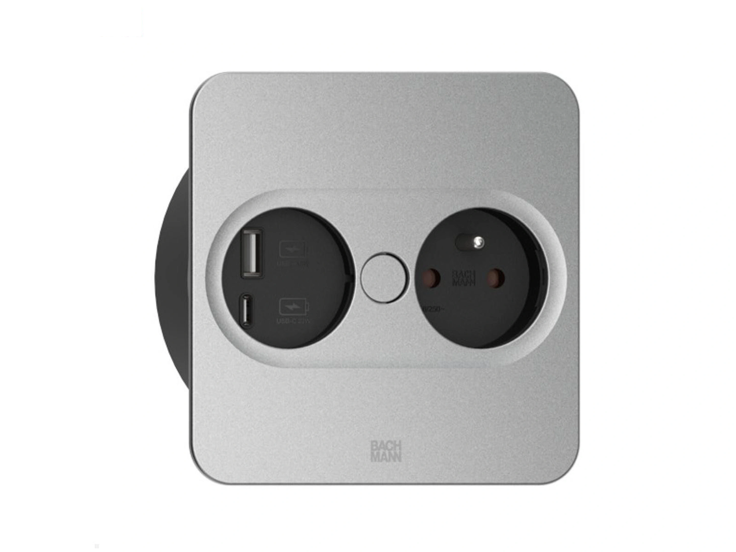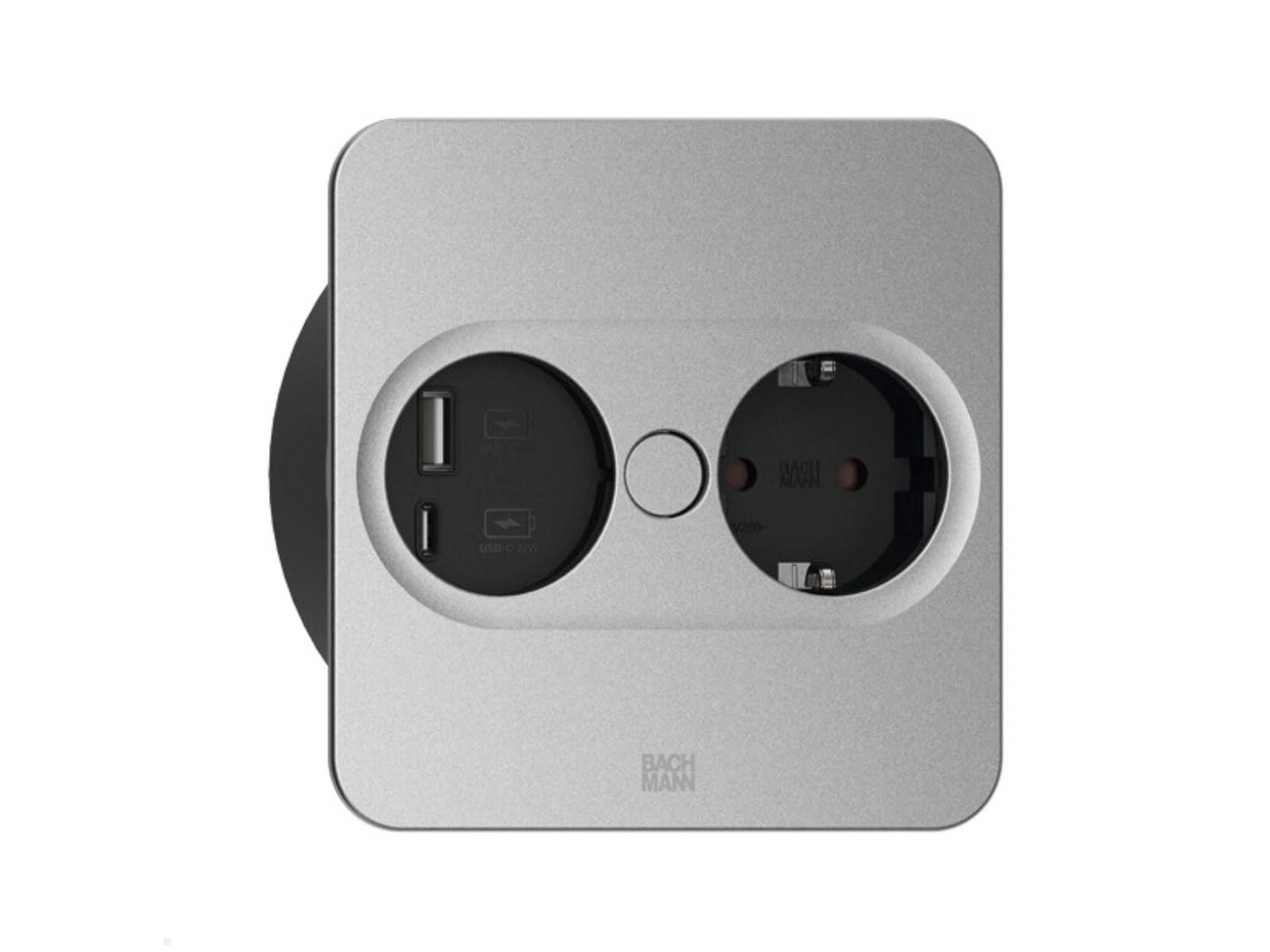 Bachmann Twist 2 - Vierkant, 1x 230V /CEE7, 1x USB-A/C (22W), Zilver