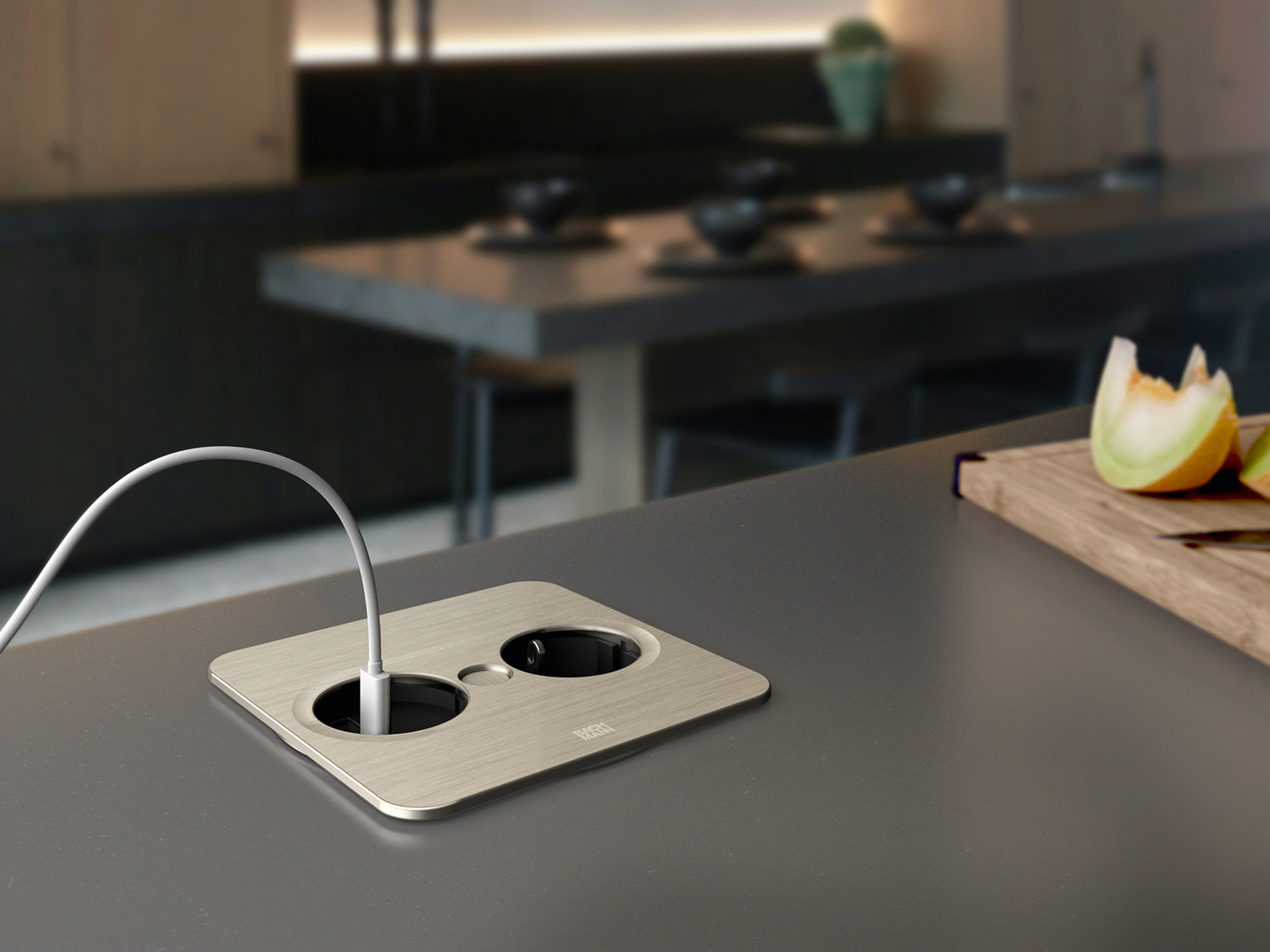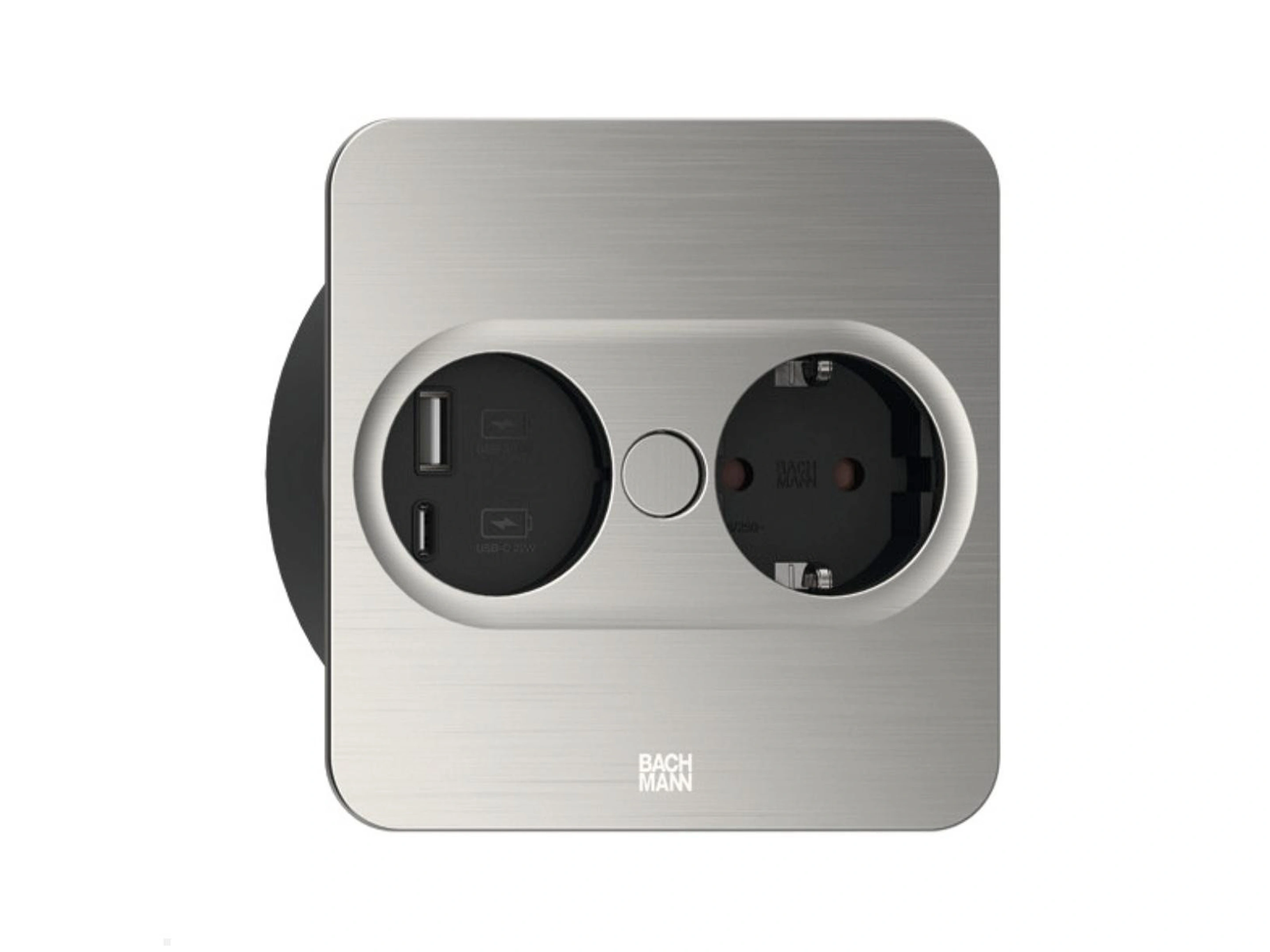 Bachmann Twist 2 - Vierkant, 1x 230V /CEE7, 1x USB-A/C (22W), RVS