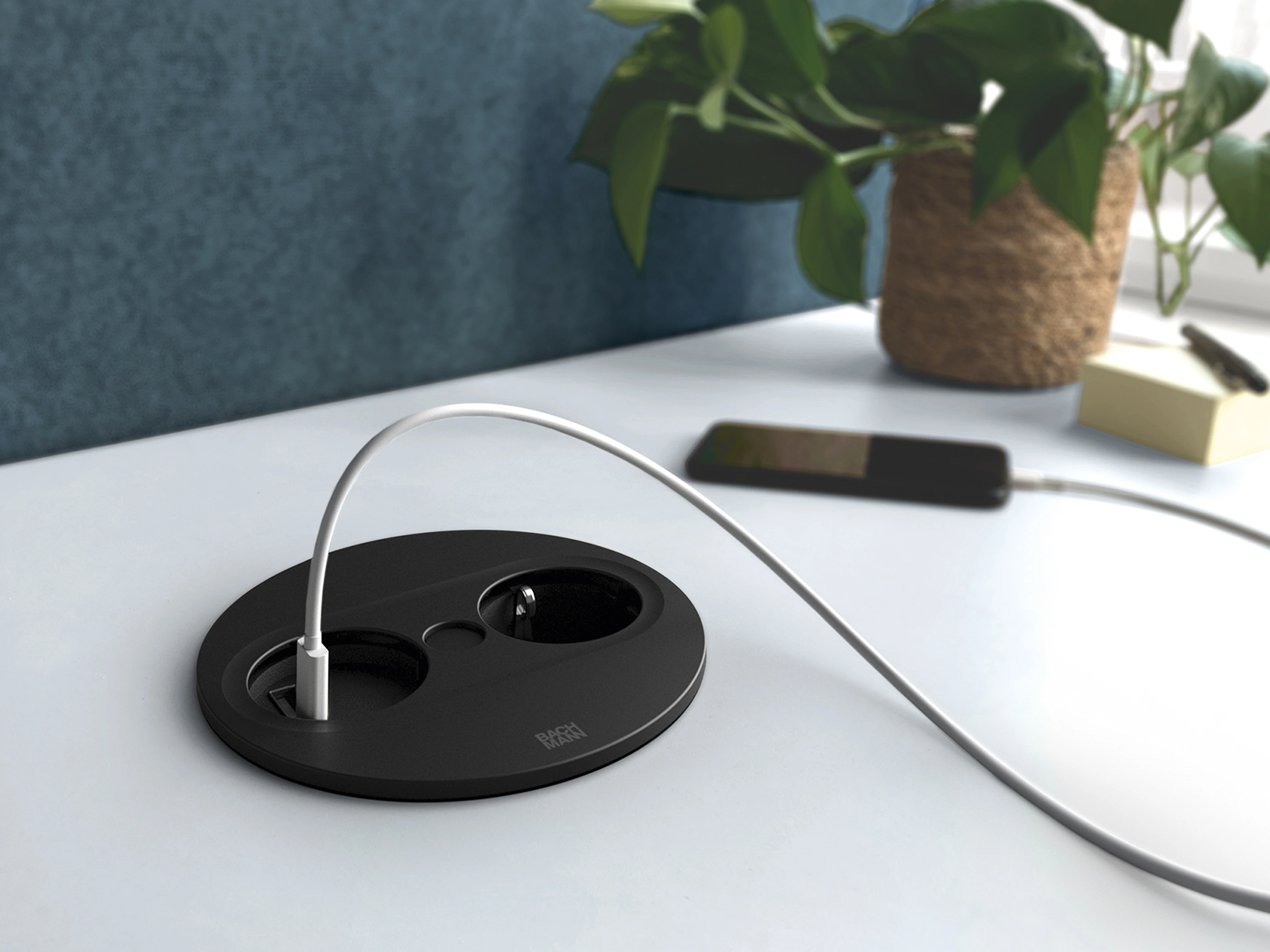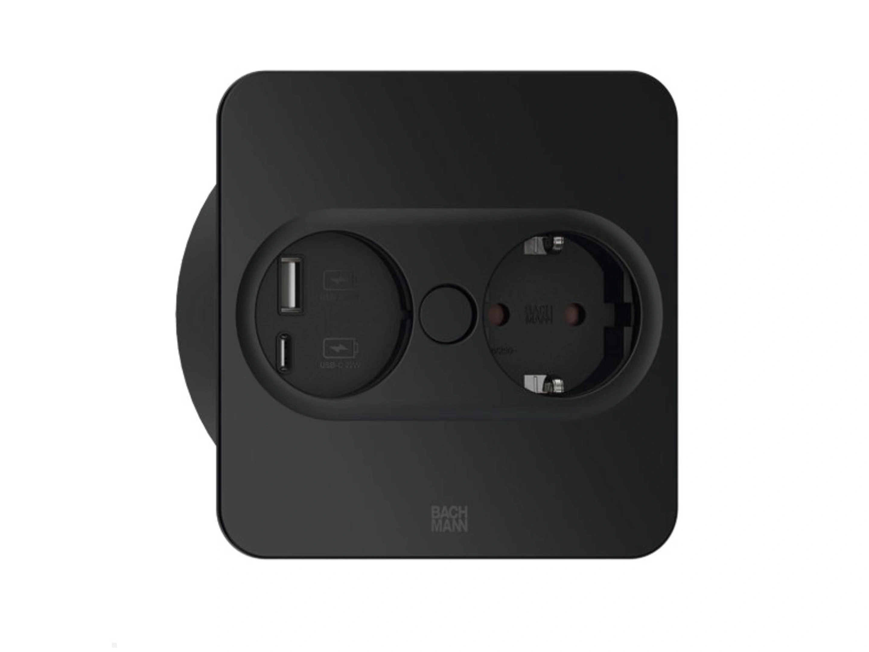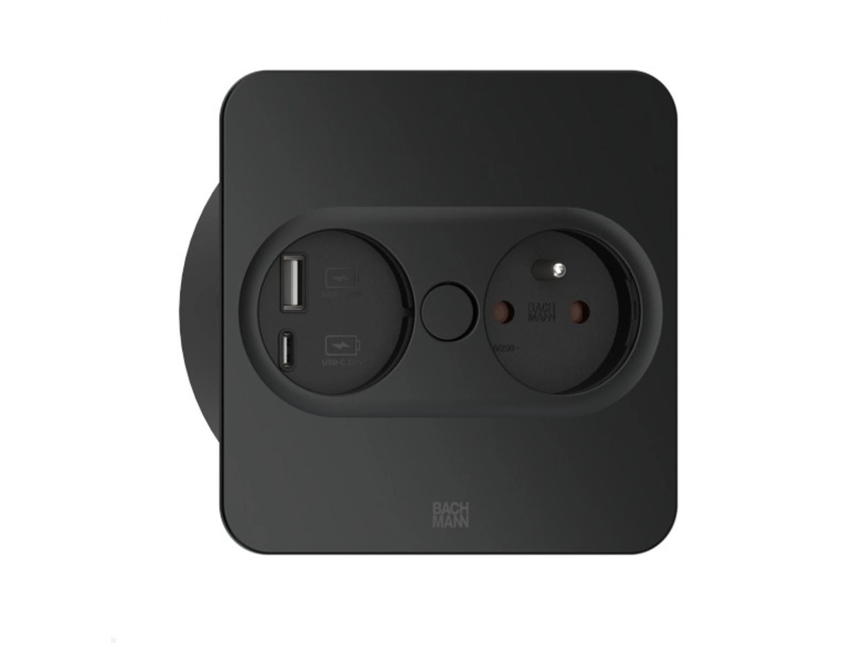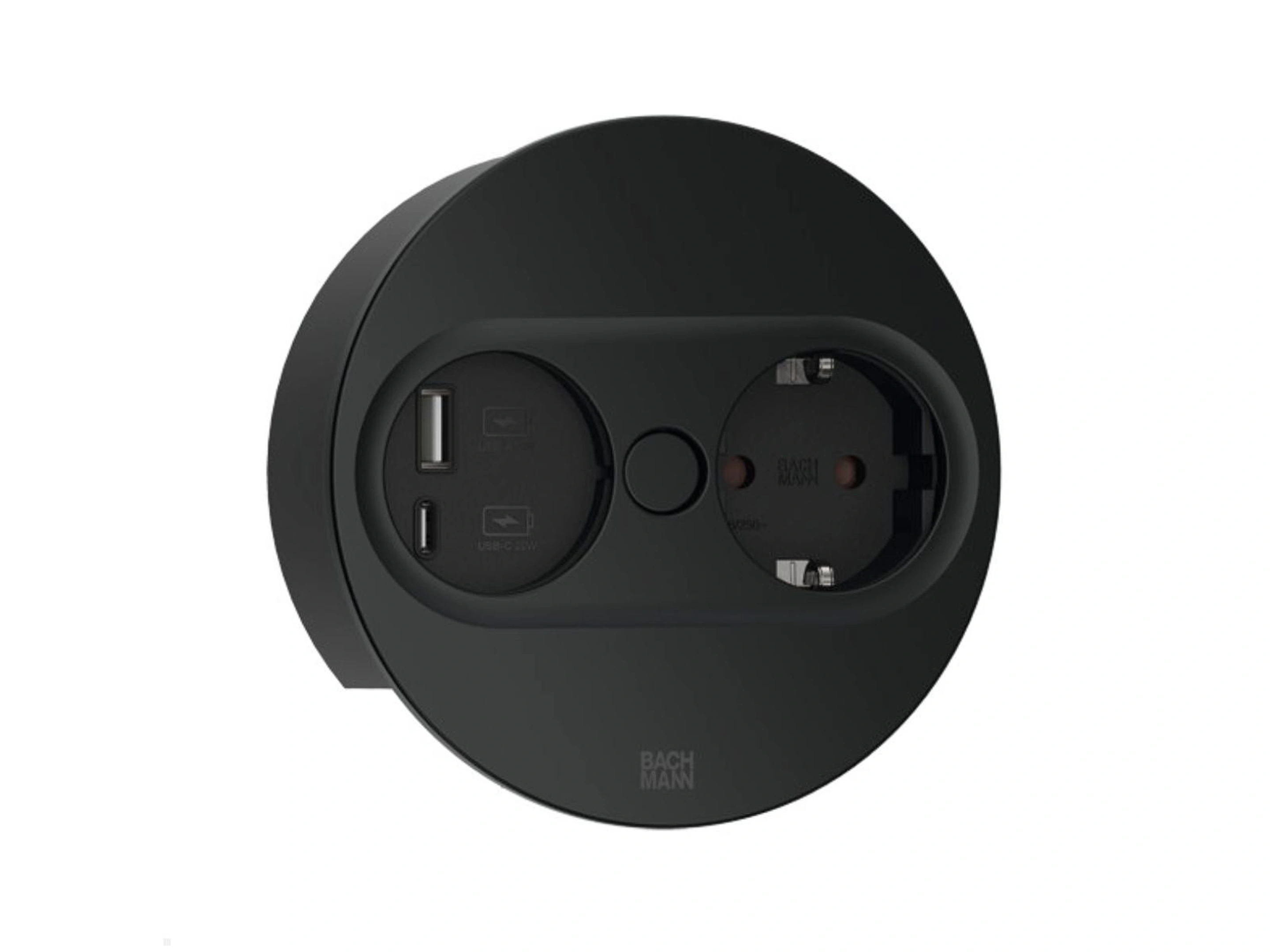 Bachmann Twist 2 - Rond, 1x 230V /CEE7, 1x USB-A/C (22W), Zwart