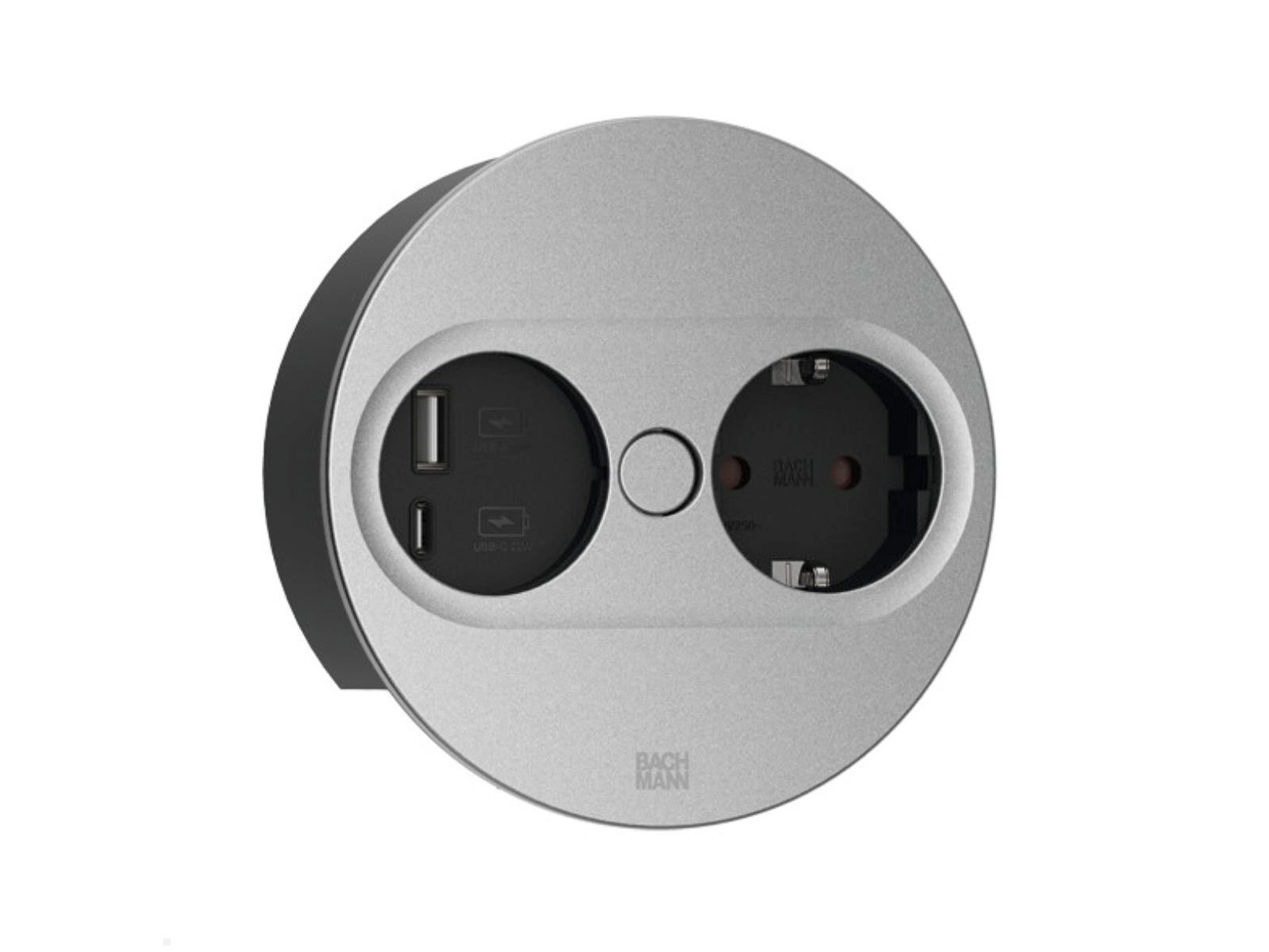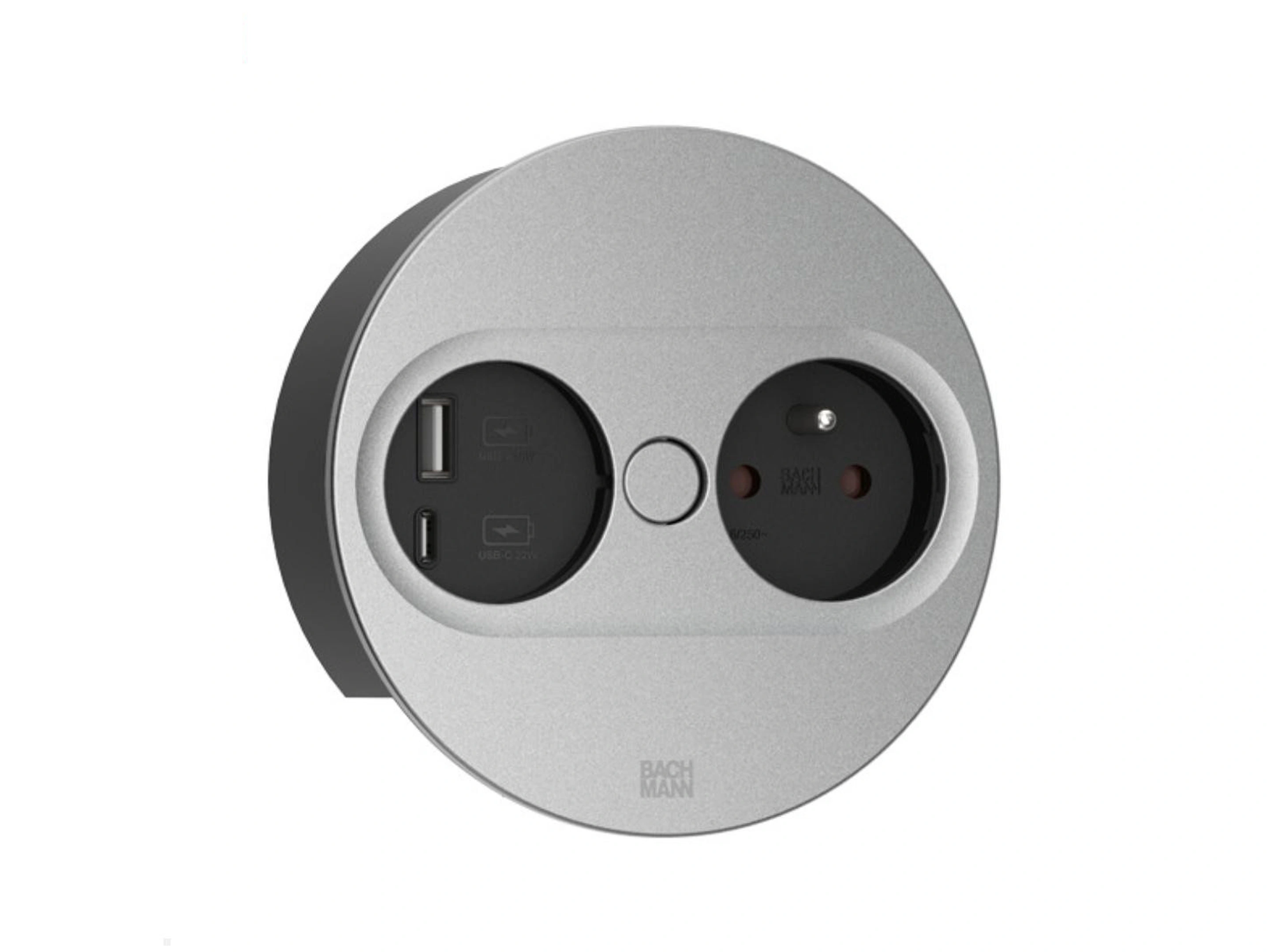 Bachmann Twist 2 - Rond, 1x 230V /CEE7, 1x USB-A/C (22W), Zilver