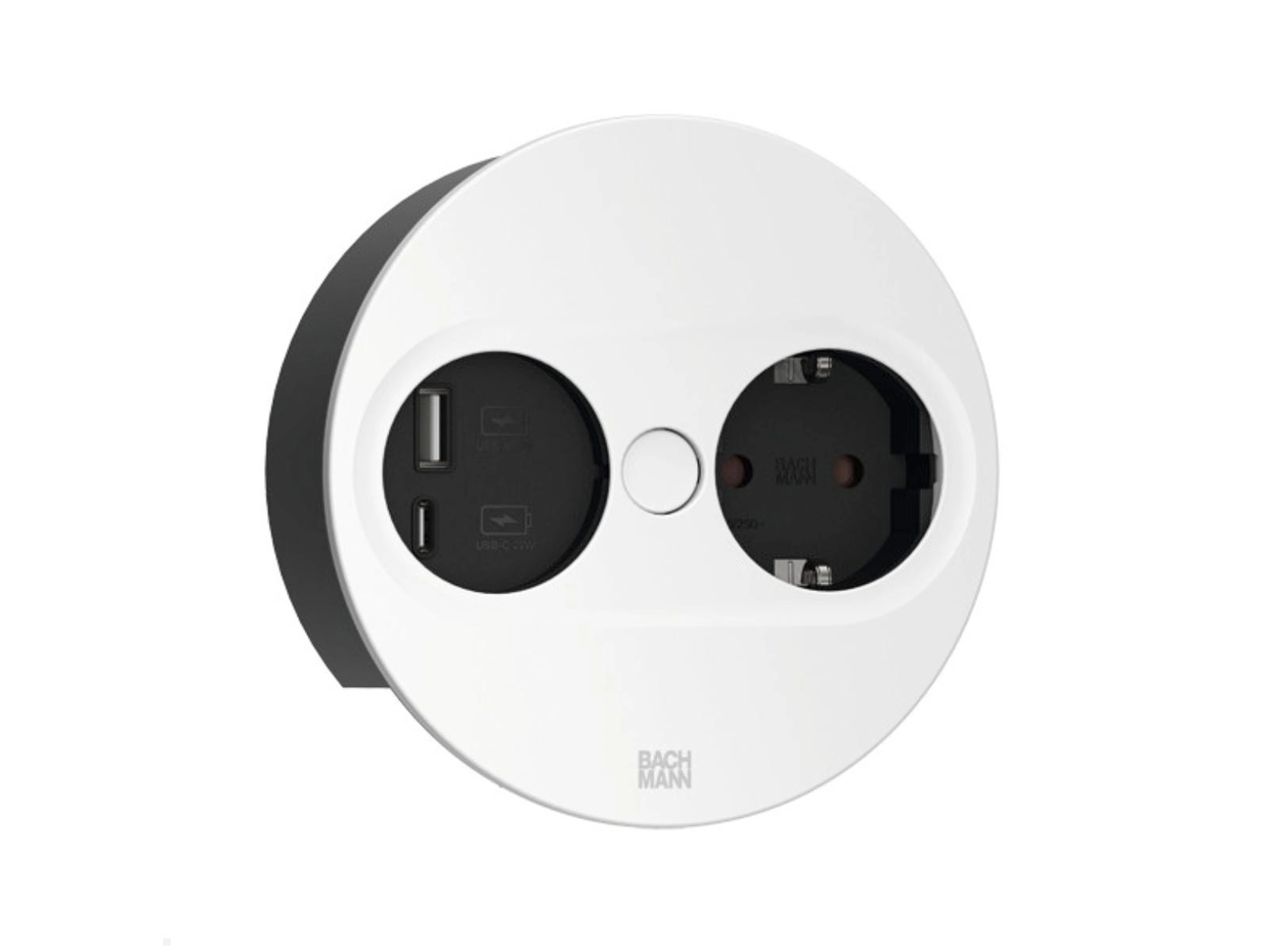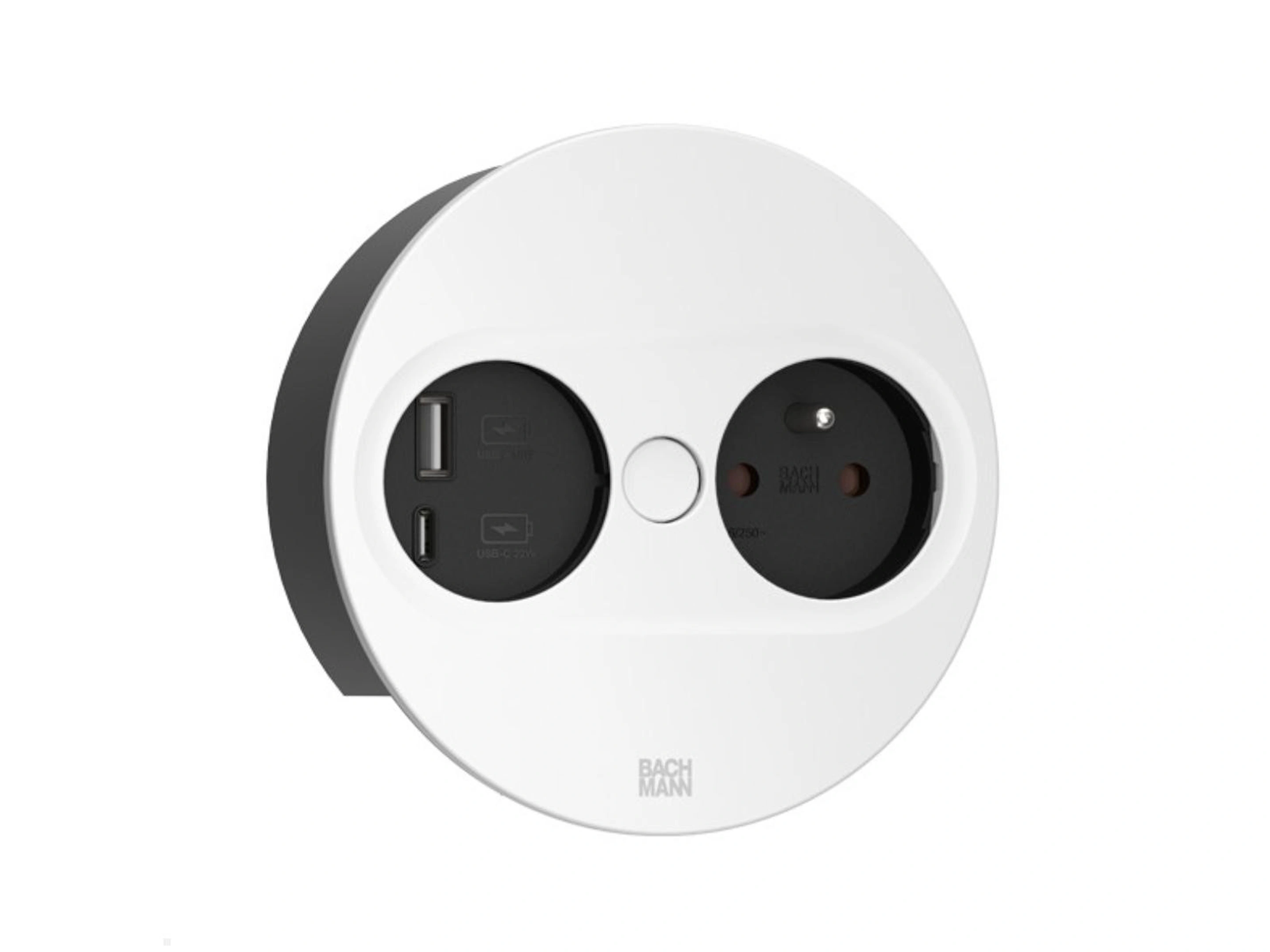 Bachmann Twist 2 - Rond, 1x 230V /CEE7, 1x USB-A/C (22W), Wit