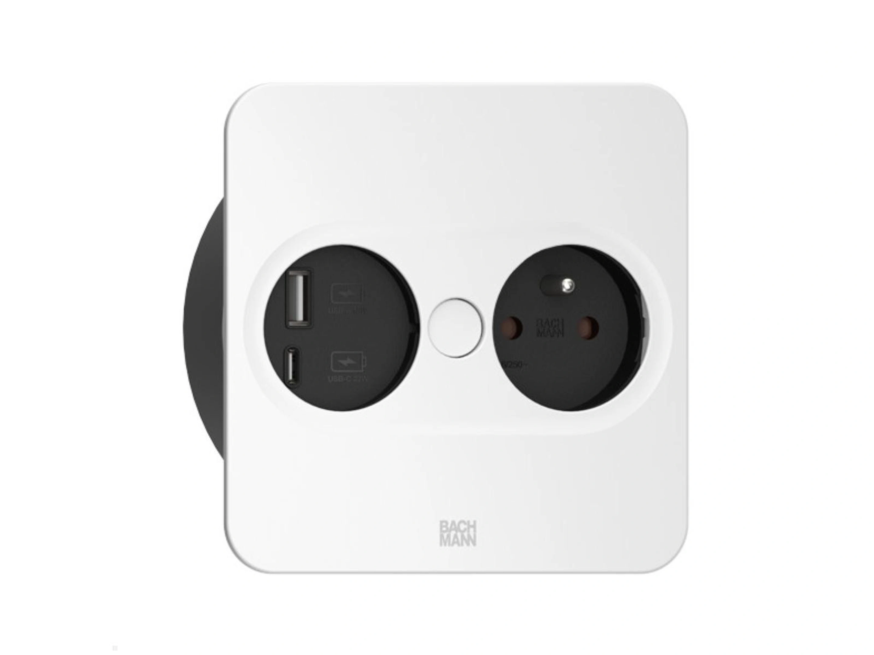 Bachmann Twist 2 - Vierkant, 1x 230V /CEE7, 1x USB-A/C (22W), Wit
