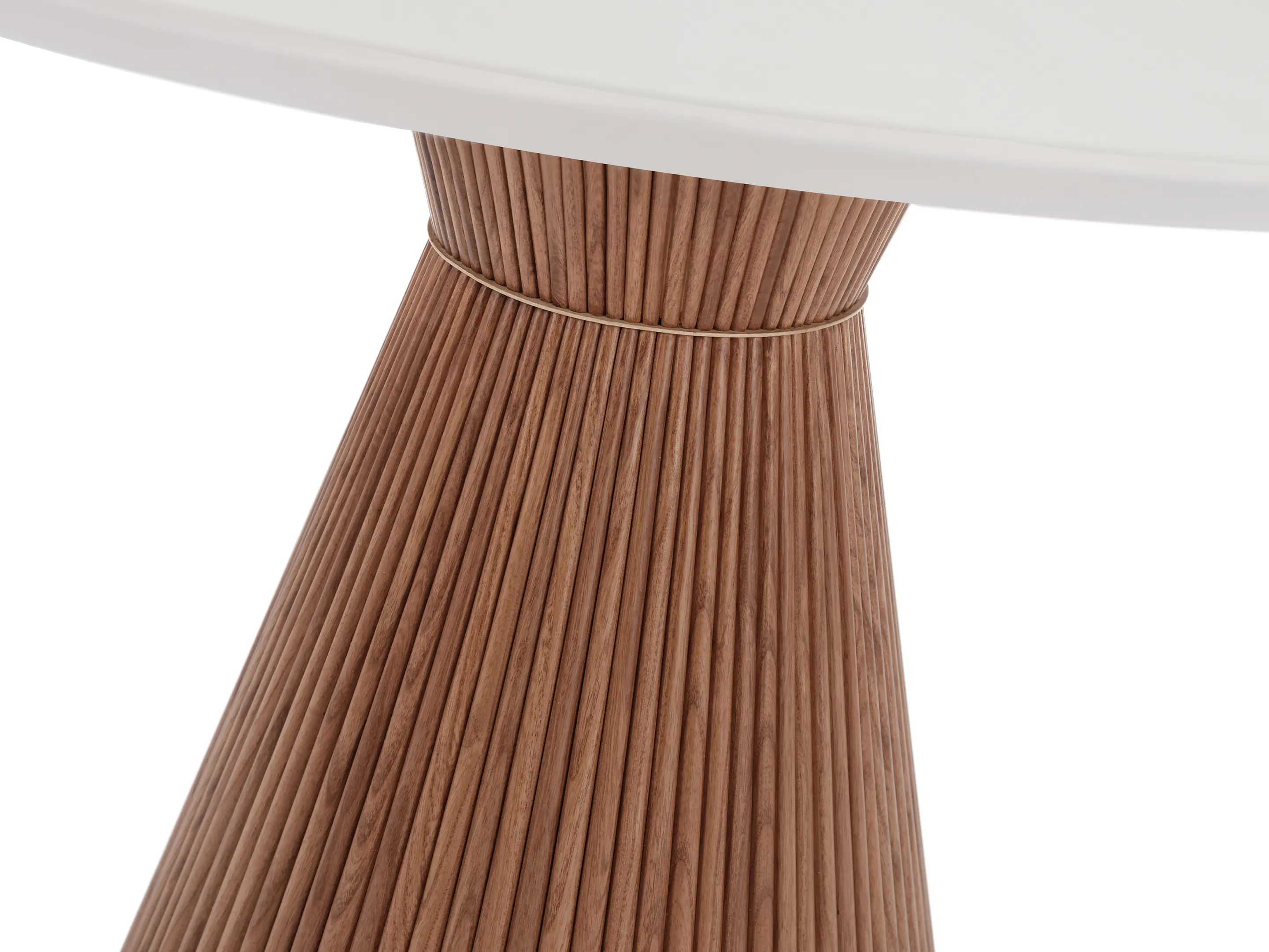 Ronde vergadertafel met houten conus vormige voet, diameter blad: ø120cm, hoogte: 72cm.