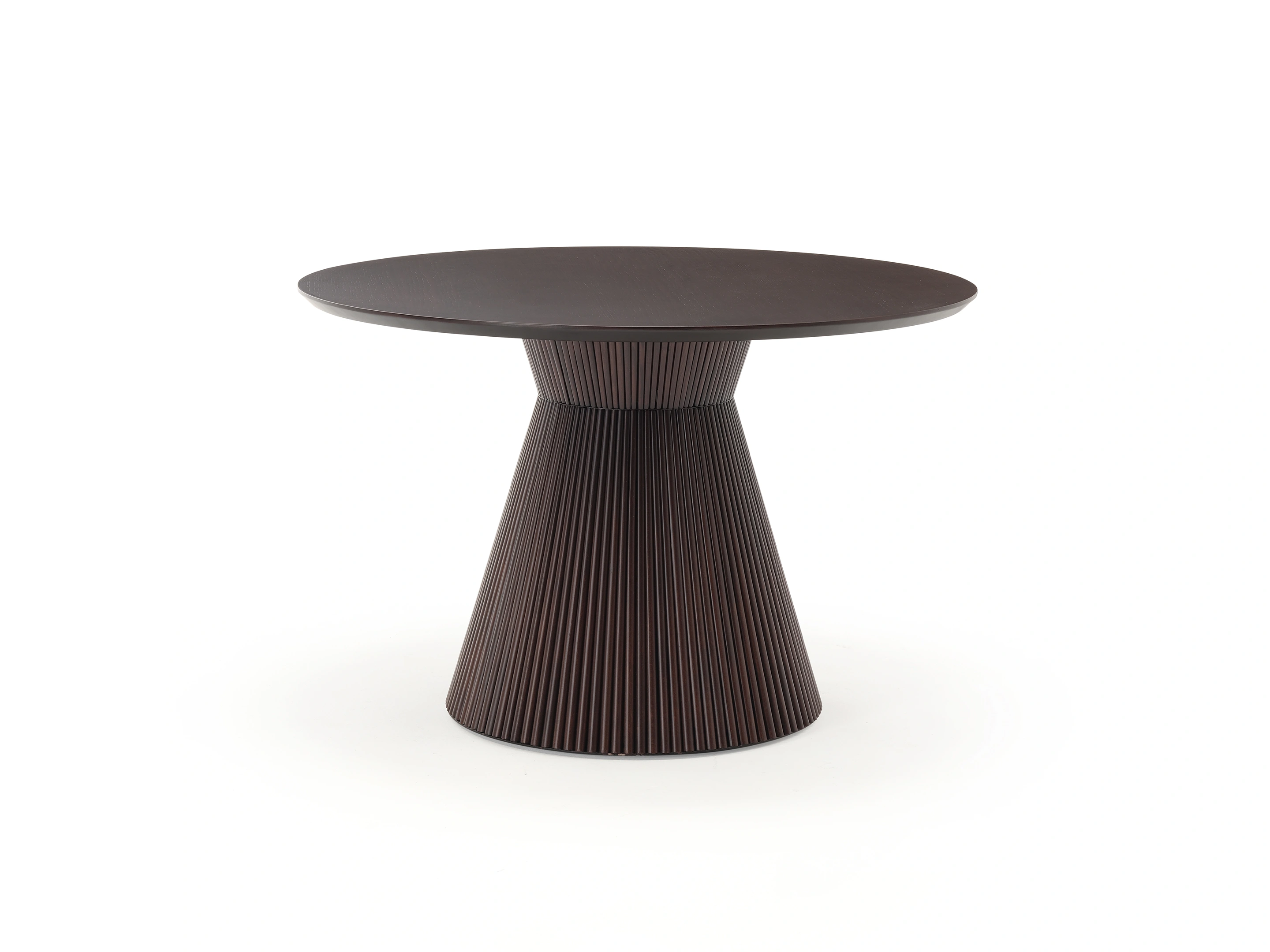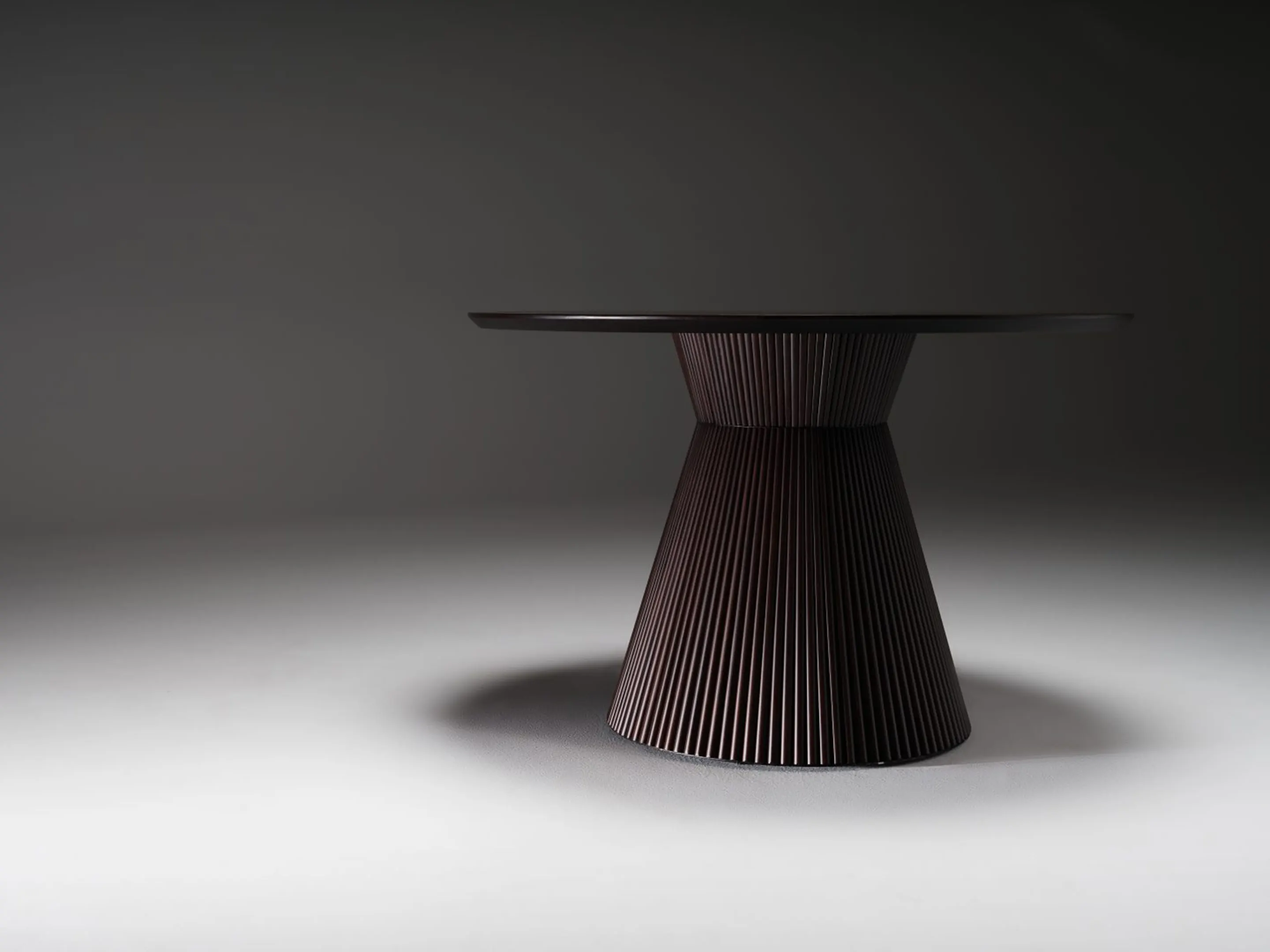 Ronde vergadertafel met houten conus vormige voet, diameter blad: ø110cm, hoogte: 72cm.