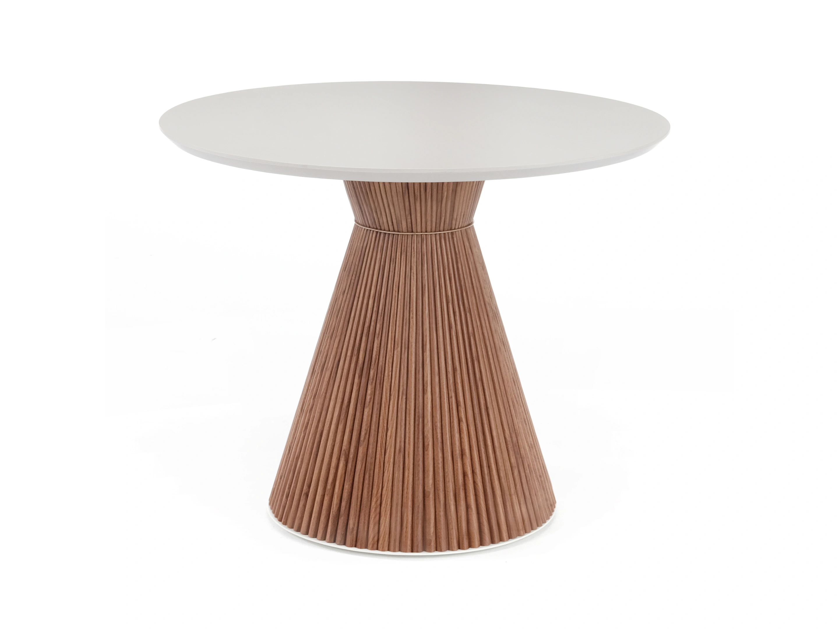 Ronde vergadertafel met houten conus vormige voet, diameter blad: ø90cm, hoogte: 72cm.