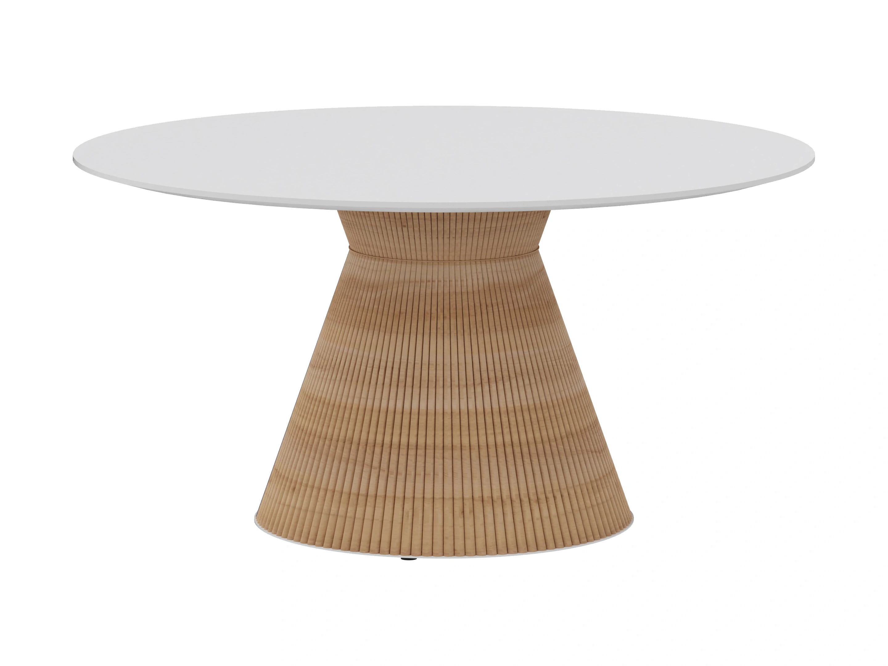 Ronde vergadertafel met houten conus vormige voet, diameter blad: ø140cm, hoogte: 72cm.