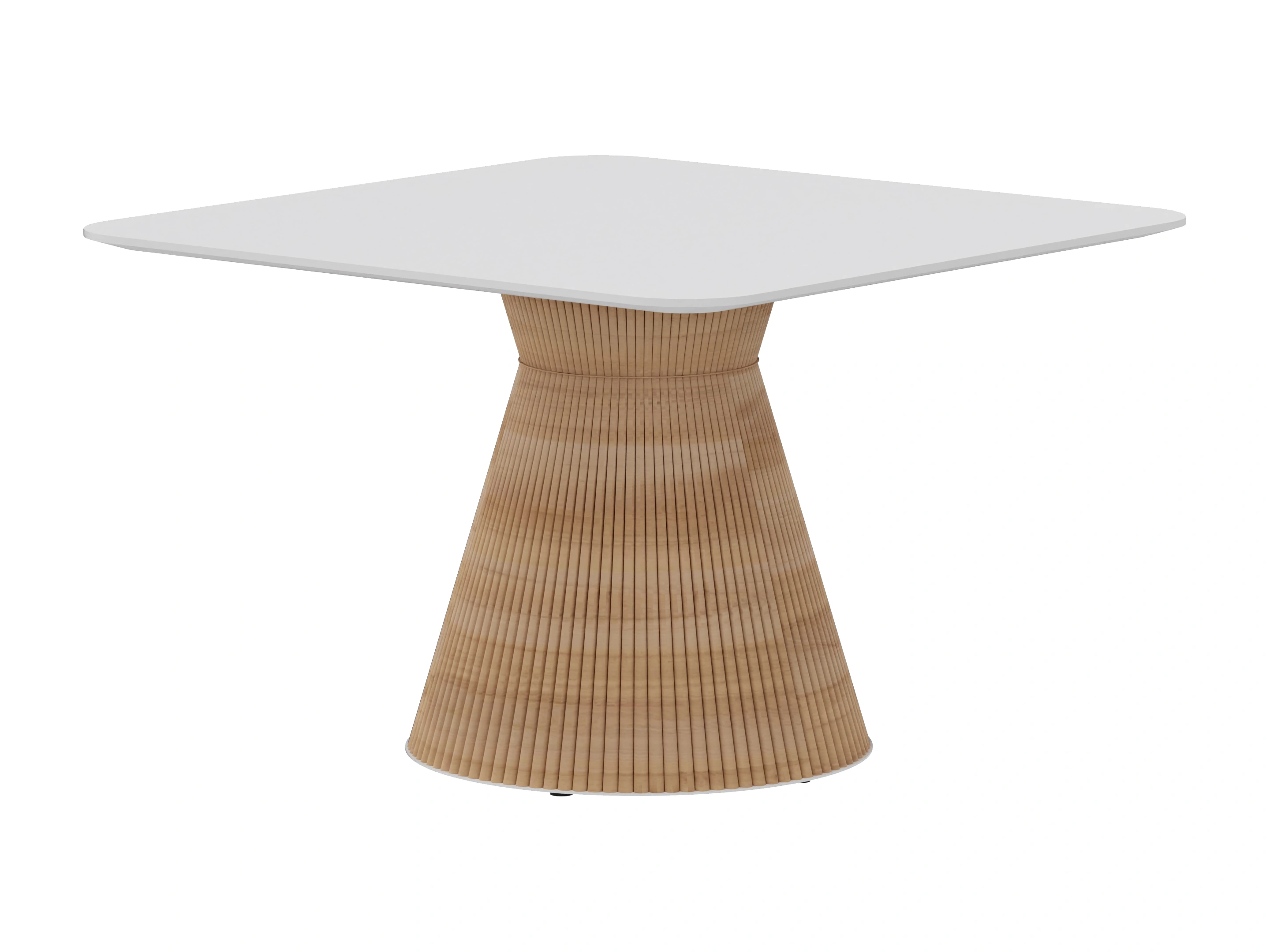 Vierkante vergadertafel met houten conus vormige voet, afmeting: 120 x 120 x 72cm (BxDxH)