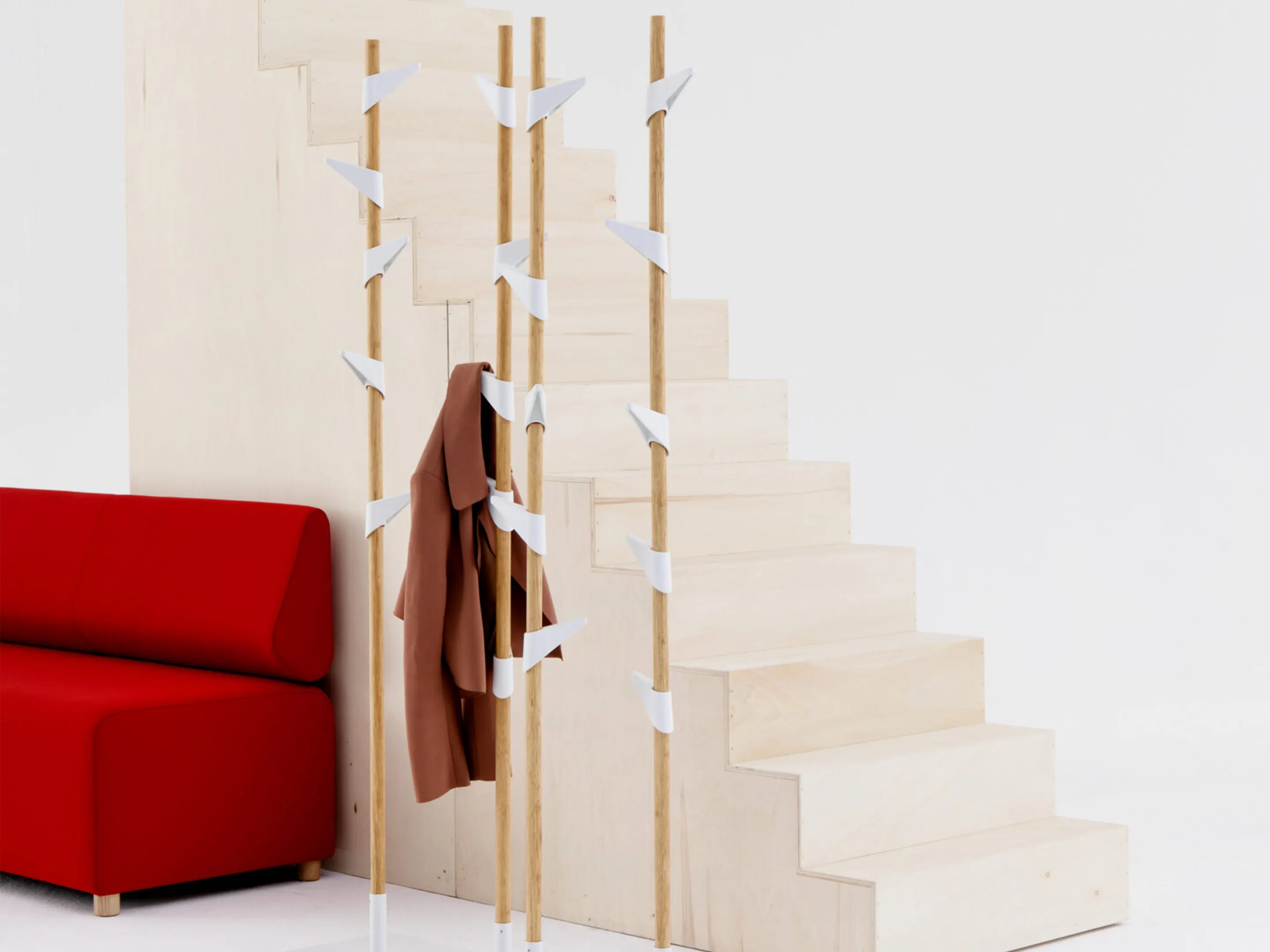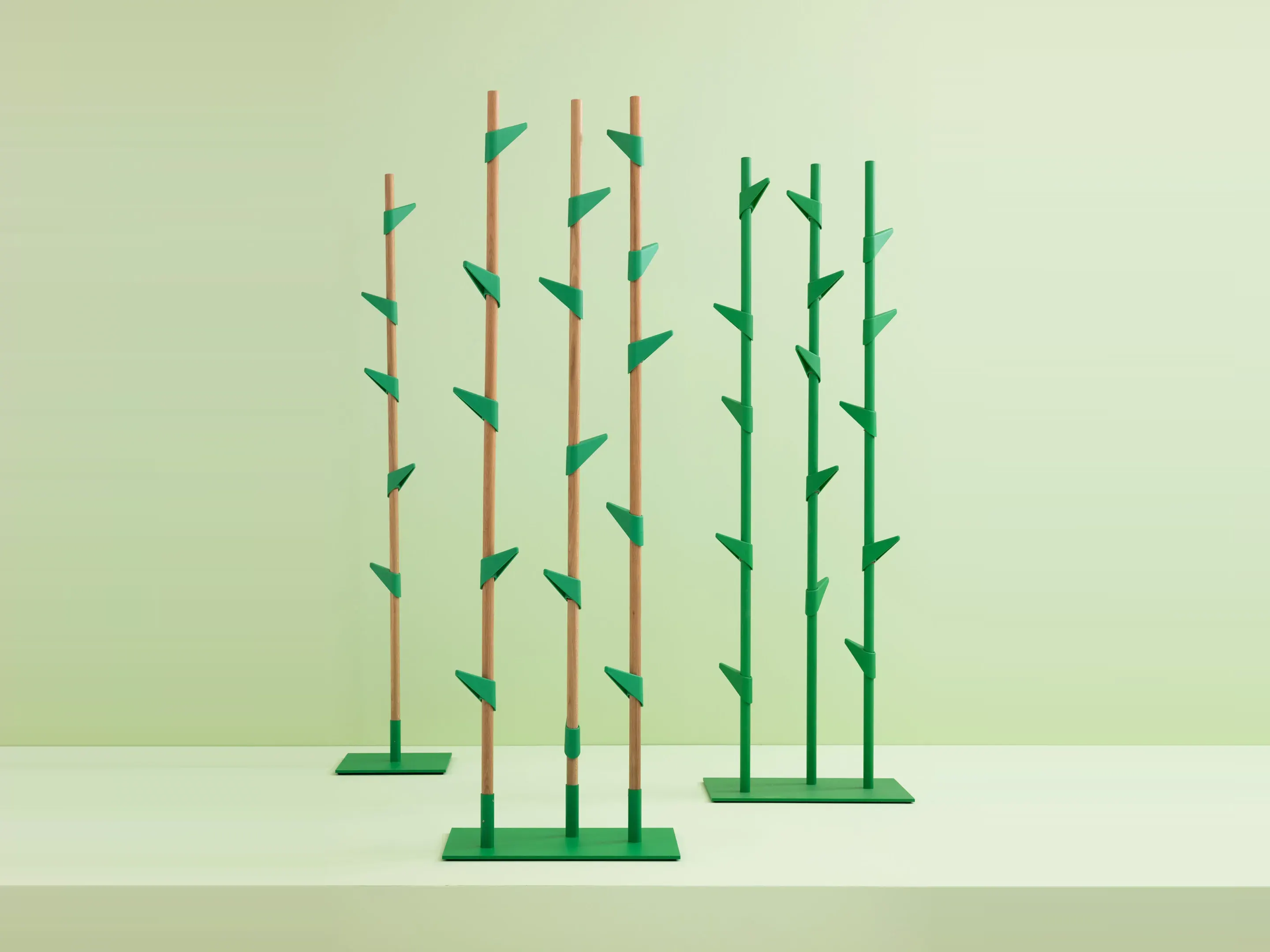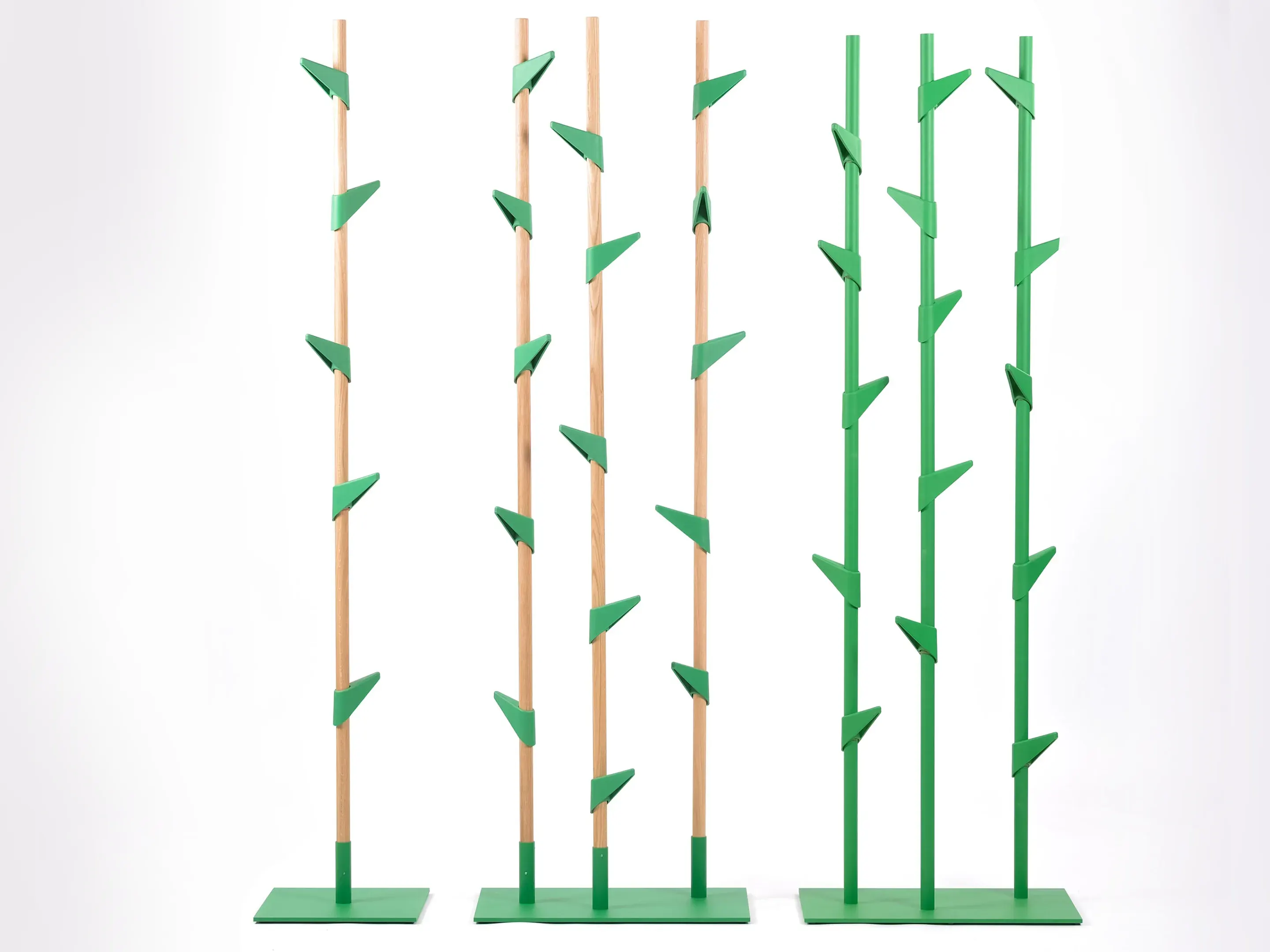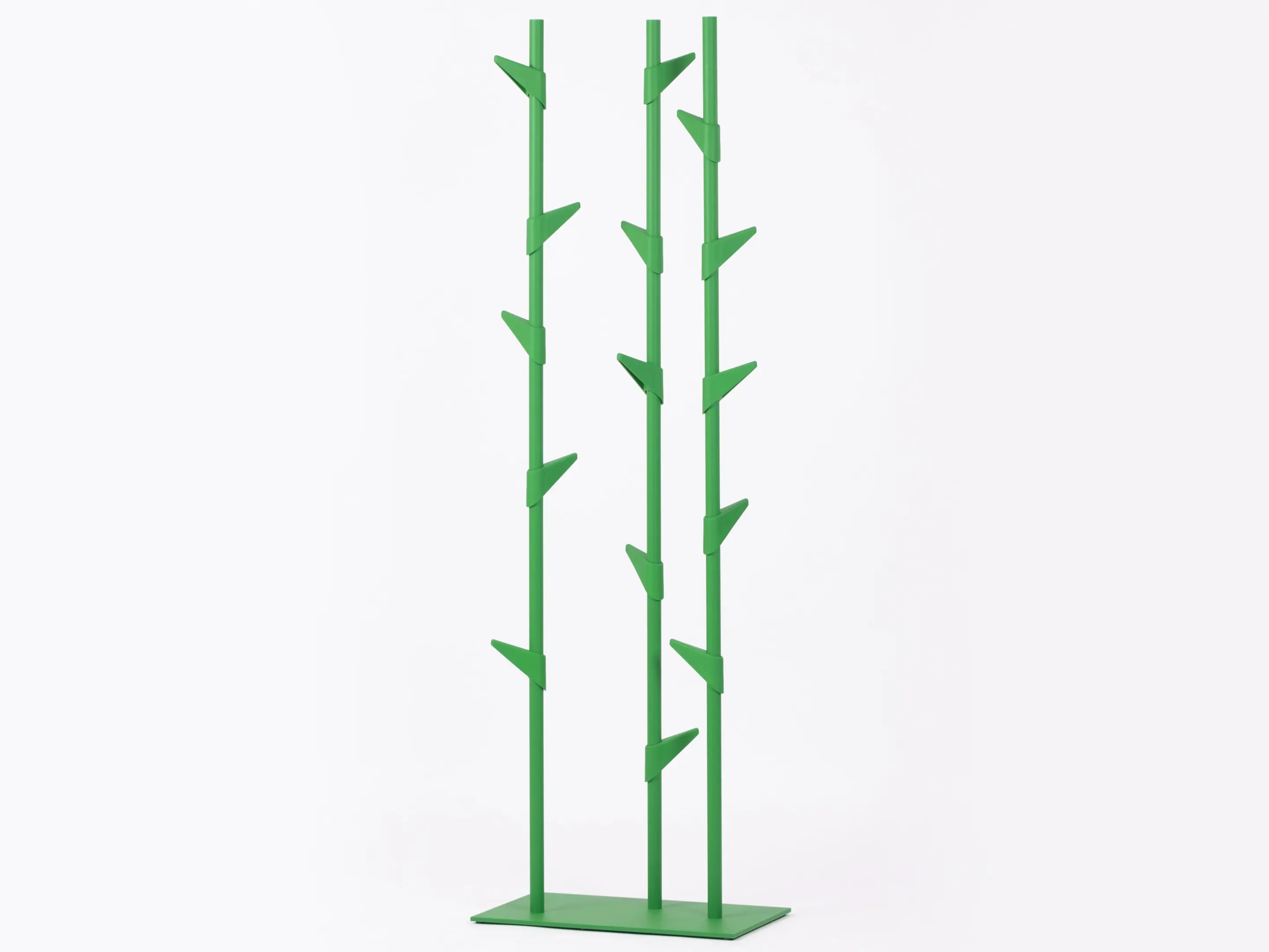 Bamboo Kapstok - Staand model, 3 stalen pilaren, 15 jashaken