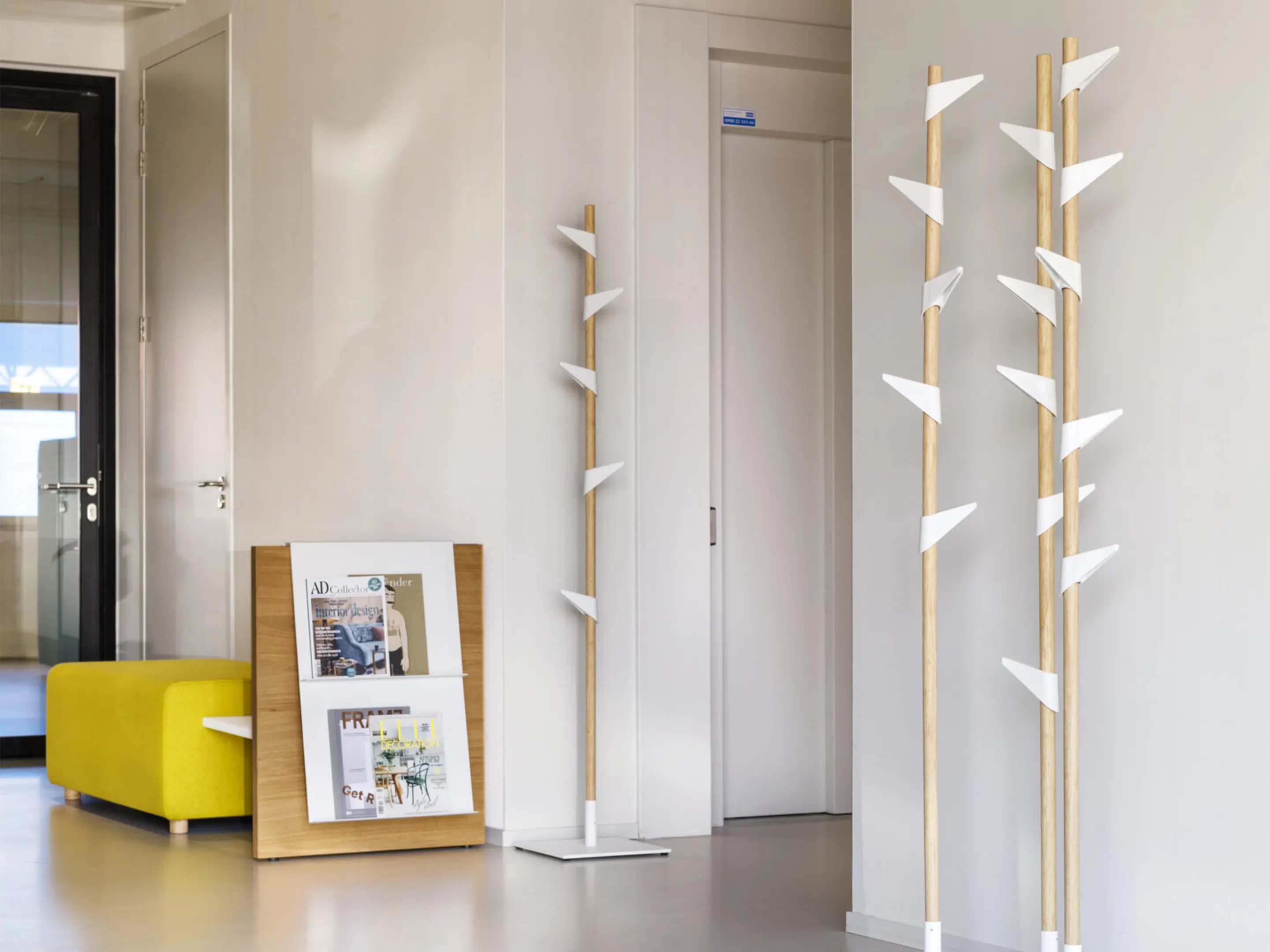 Bamboo Kapstok - Staand model, 1 stalen pilaar, 5 jashaken