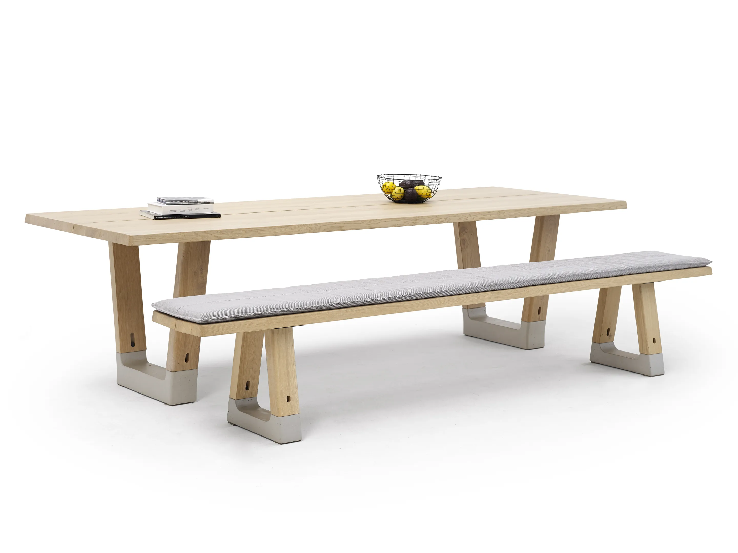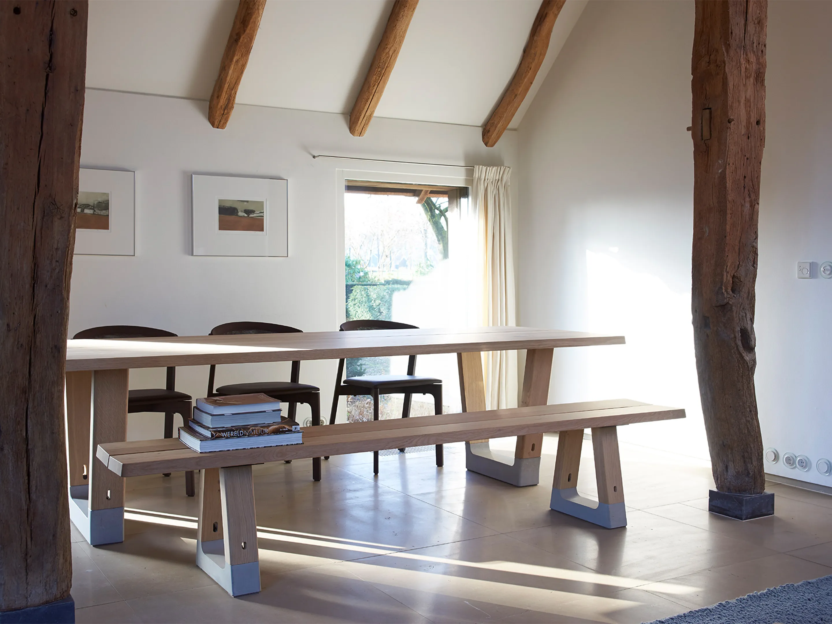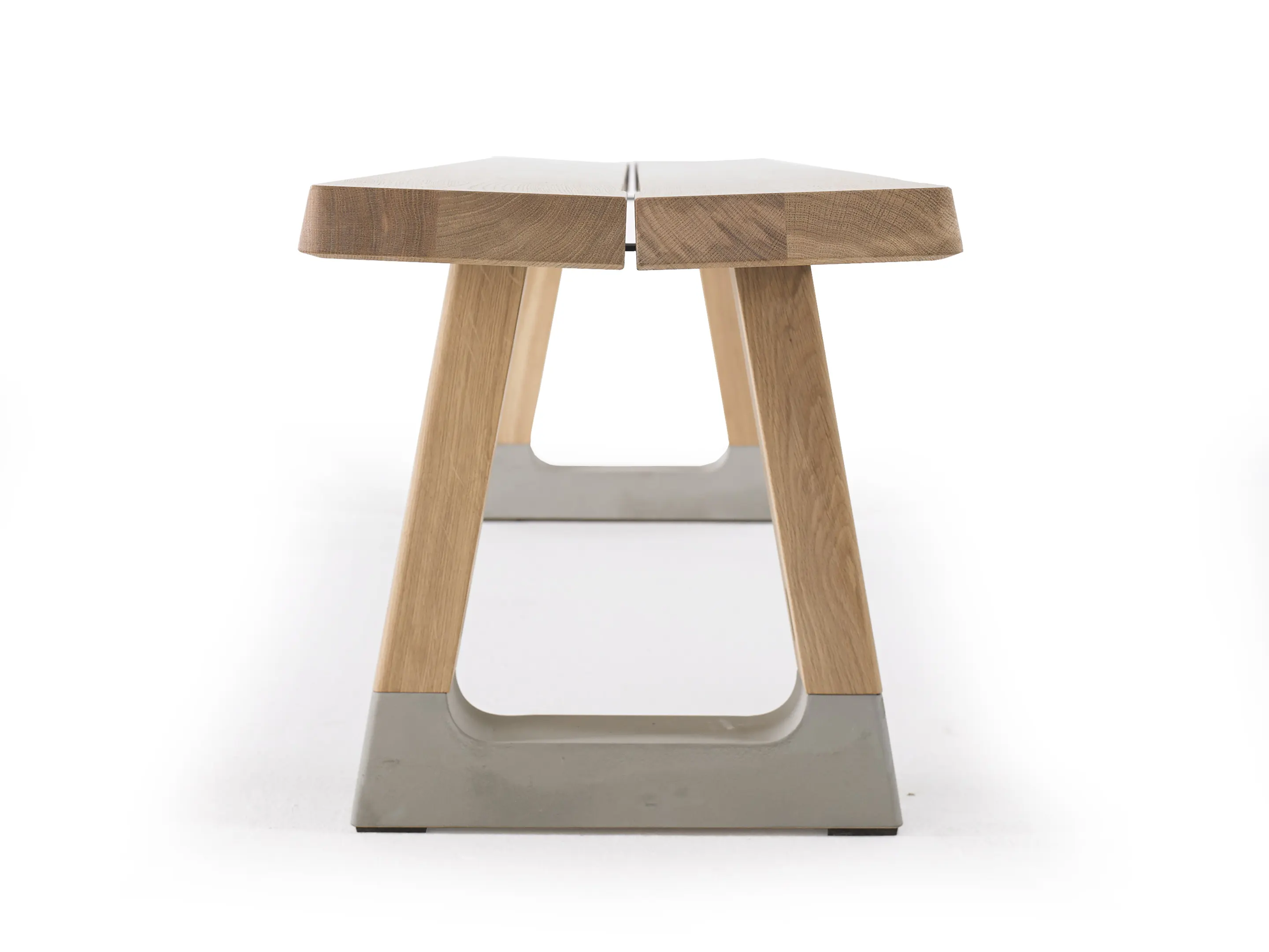 Bench in rechthoekige vorm, bestaande uit 2 bladen met 2 betonnen voeten. Afmeting: 2400 x 400 x 450mm (BxDxH).