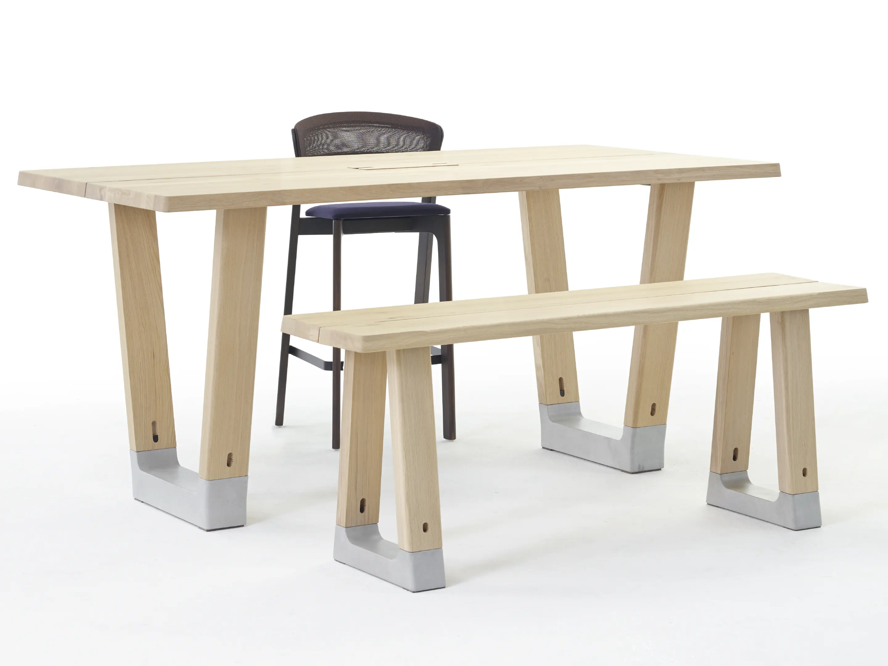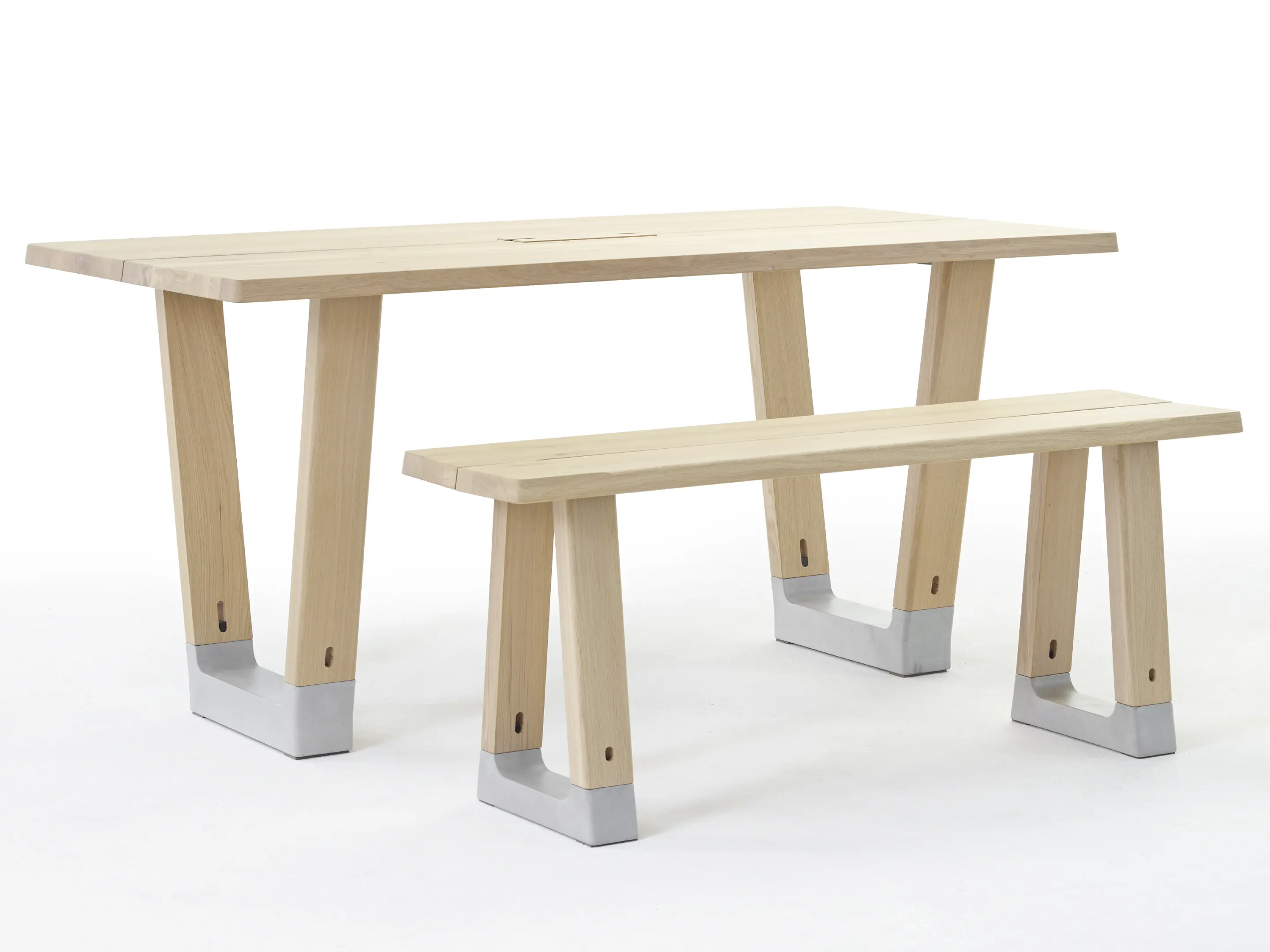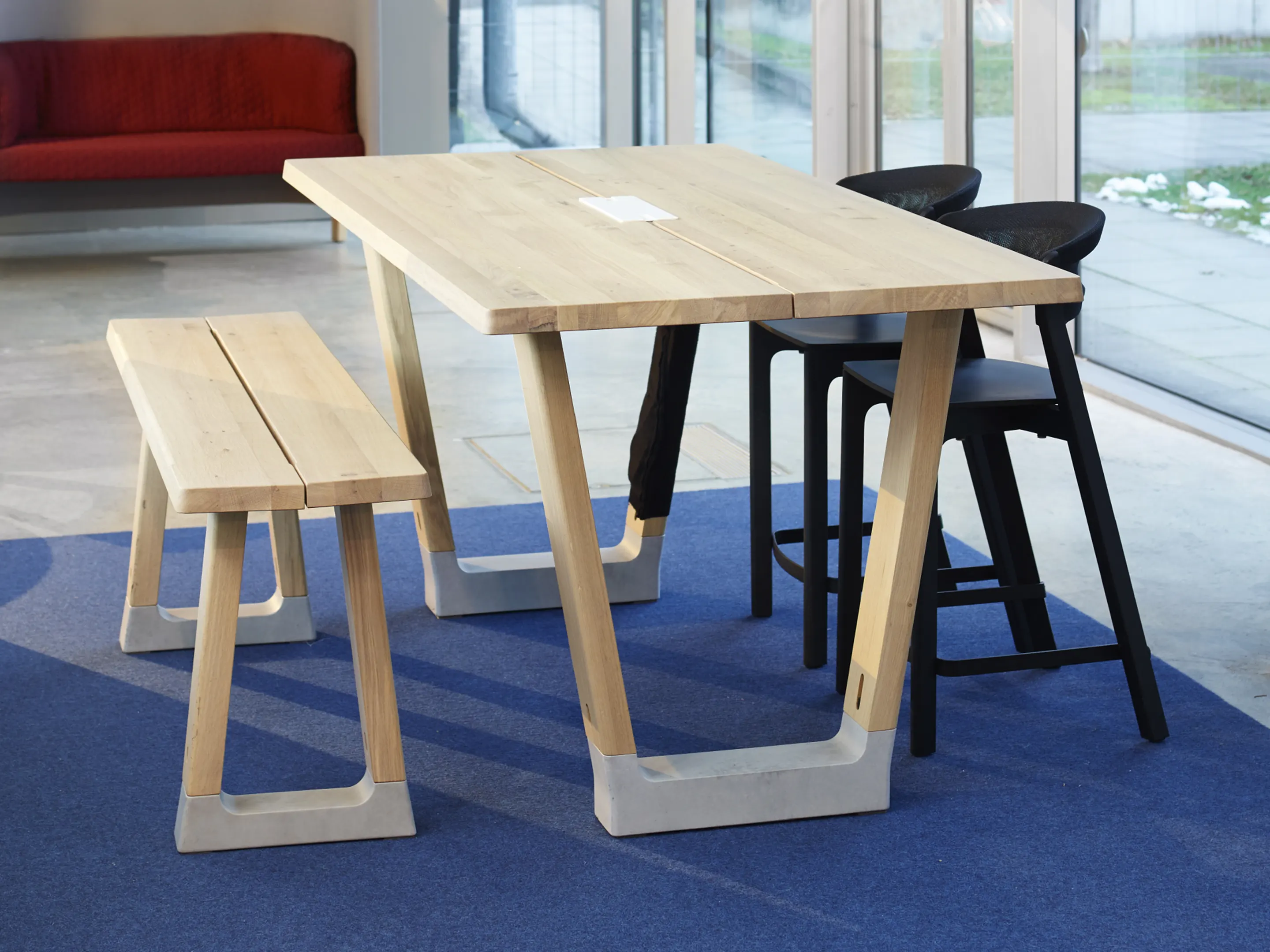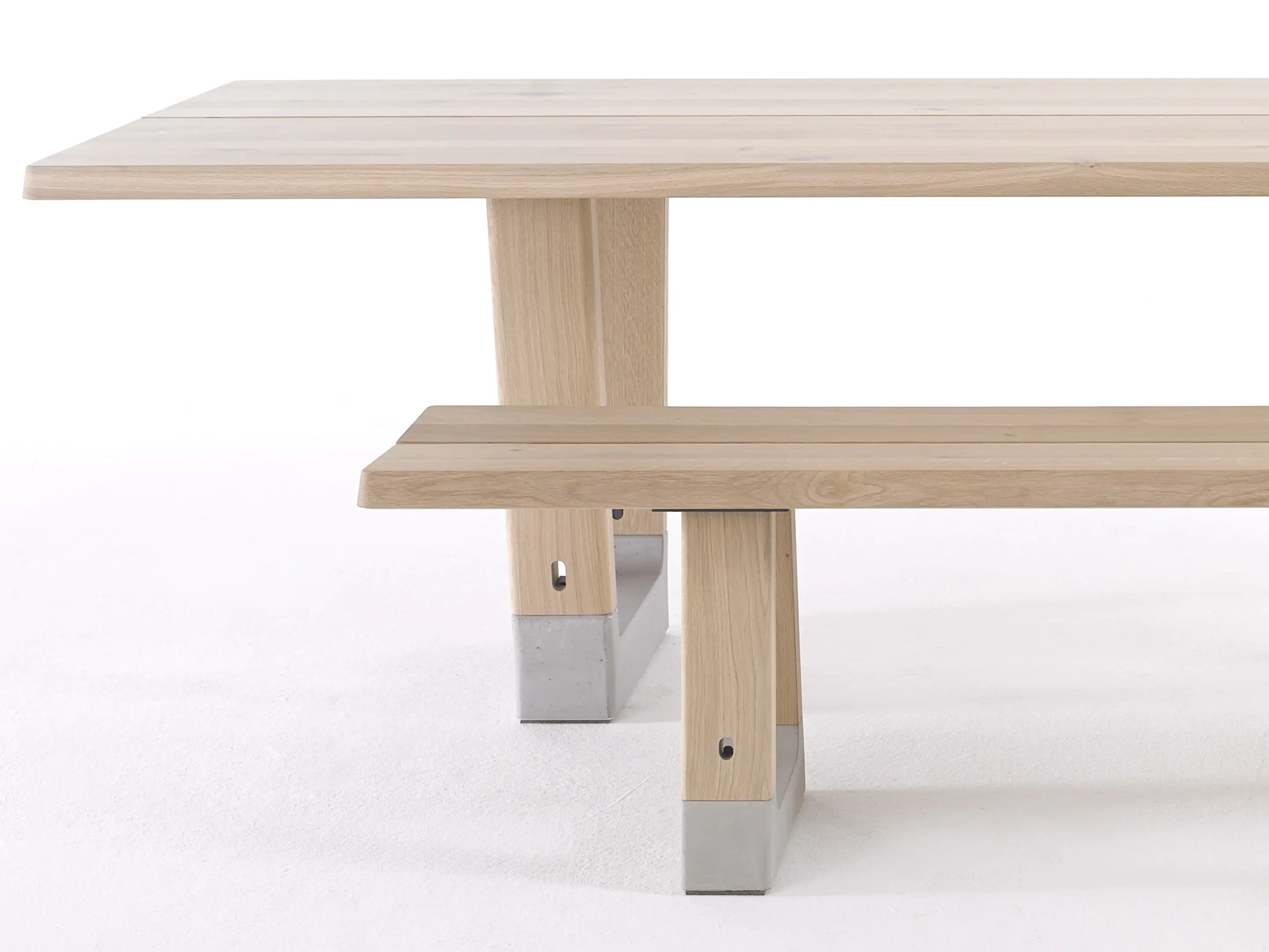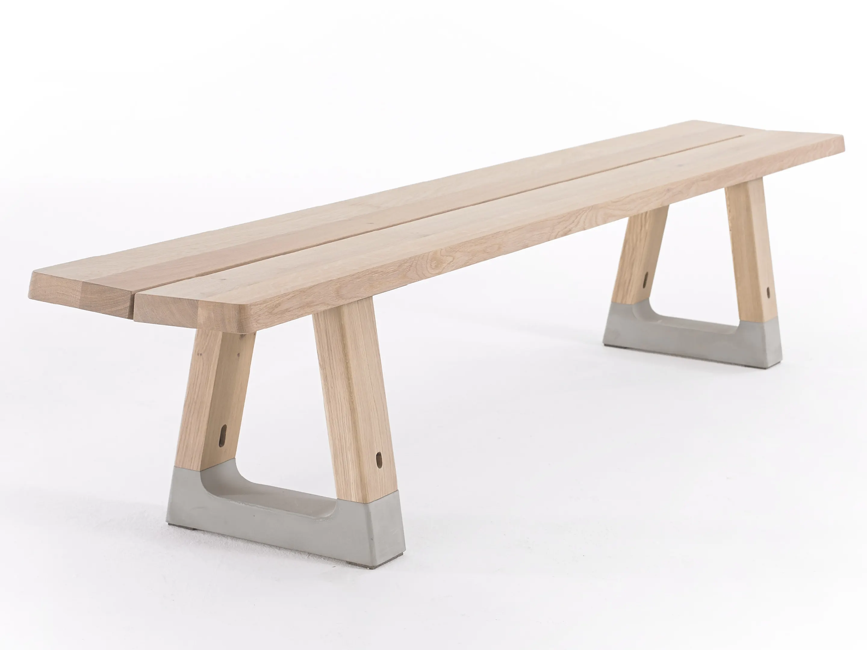 Bench in rechthoekige vorm, bestaande uit 2 bladen met 2 betonnen voeten. Afmeting: 2800 x 400 x 450mm (BxDxH).