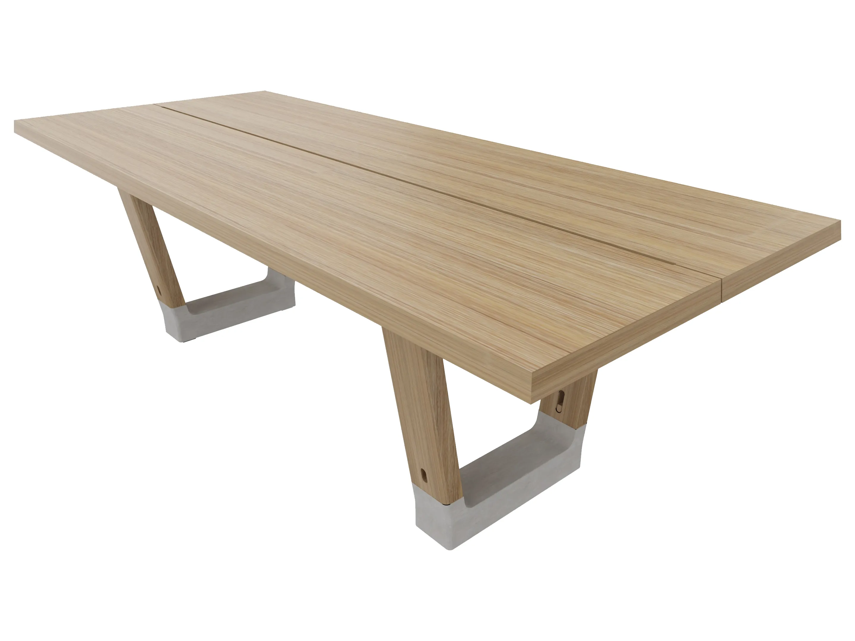 Vergadertafel in rechthoekige vorm, bestaande uit 2 bladen met 2 betonnen voeten. Afmeting: 2400 x 1000 x 750mm (BxDxH).