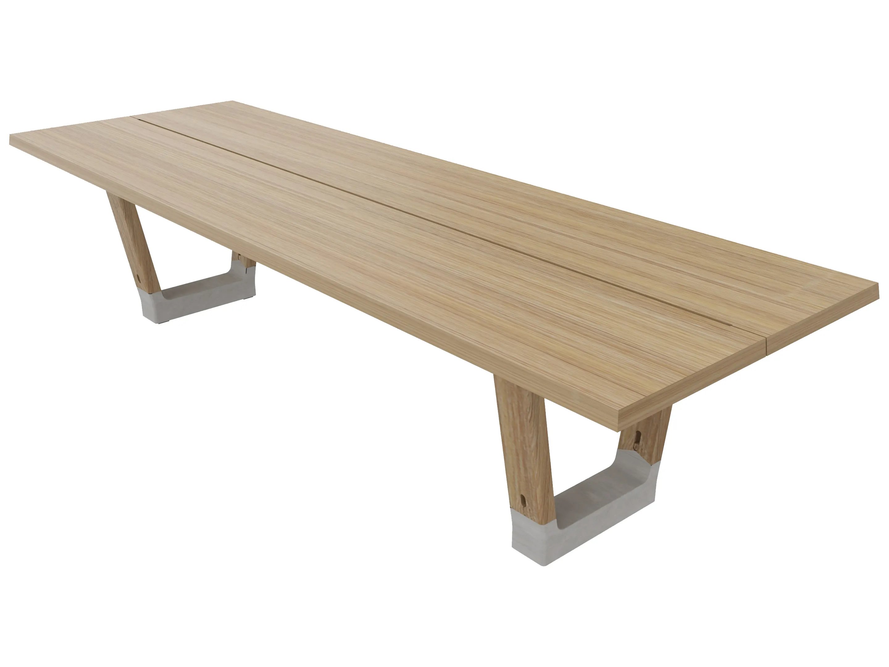 Vergadertafel in rechthoekige vorm, bestaande uit 2 bladen met 2 betonnen voeten. Afmeting: 3200 x 1050 x 750mm (BxDxH).