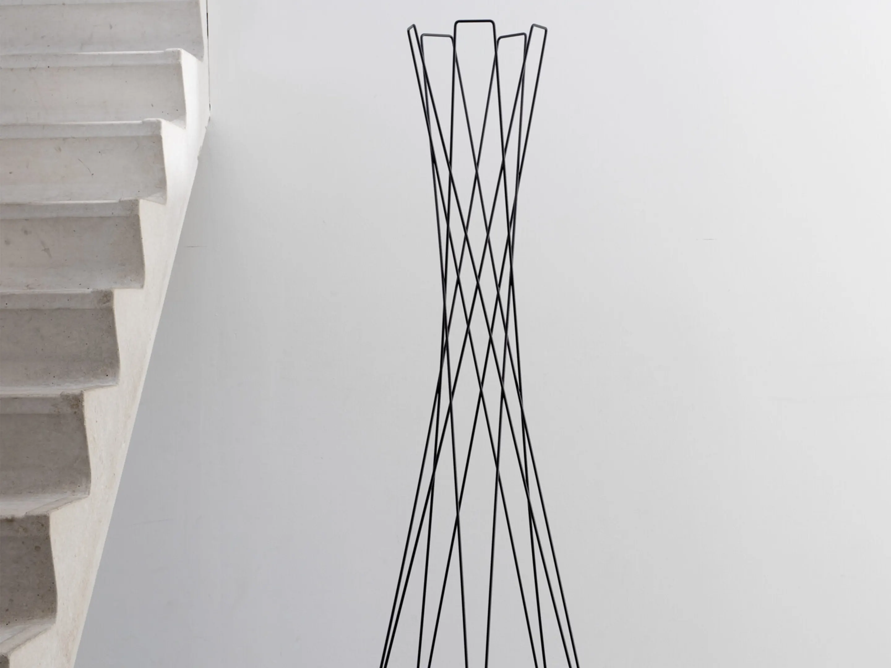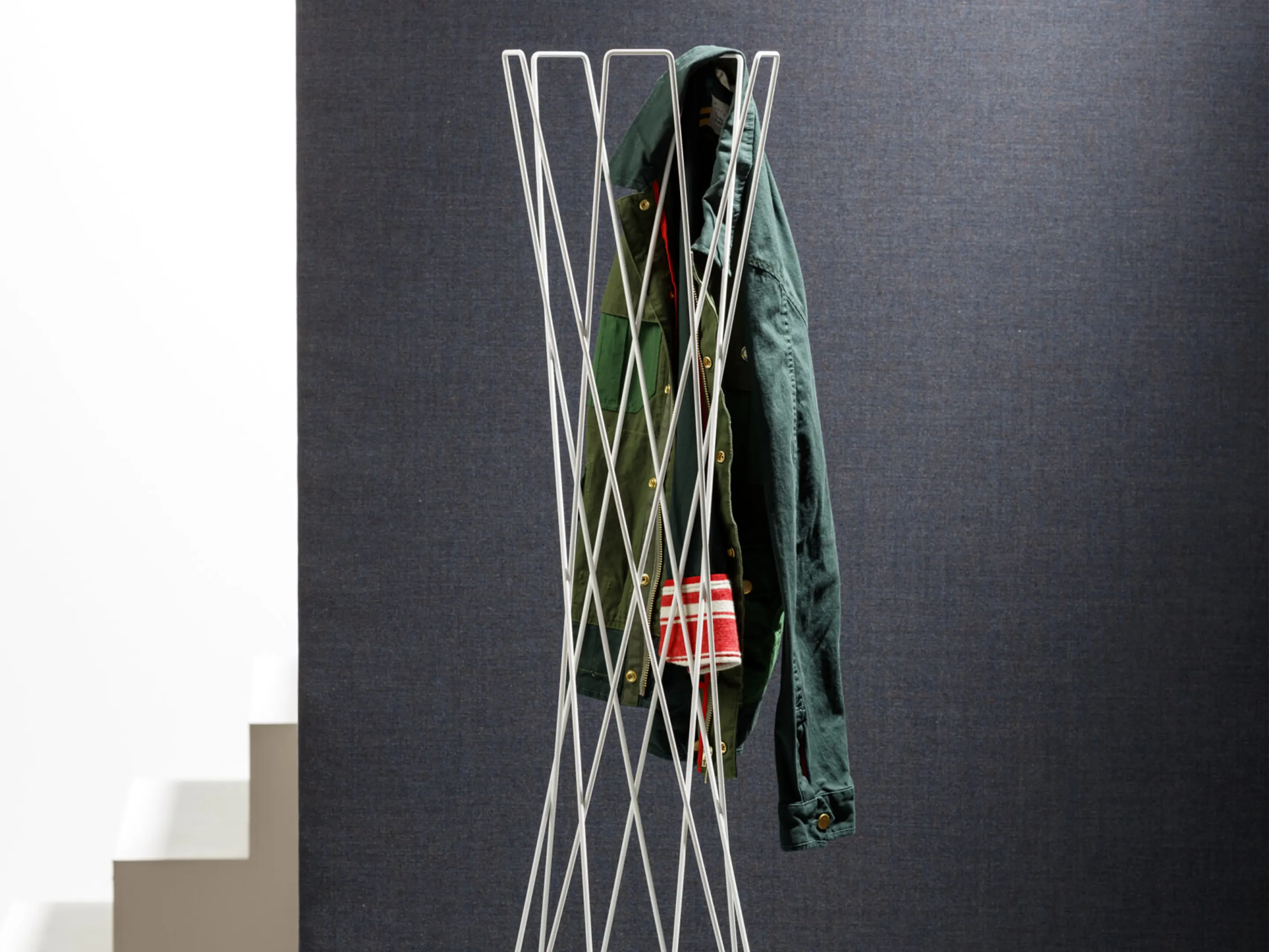 Staande kapstok uit draadstaal, met 5 jashaken. Afmeting: 540 x 540 x 1690mm (BxDxH)