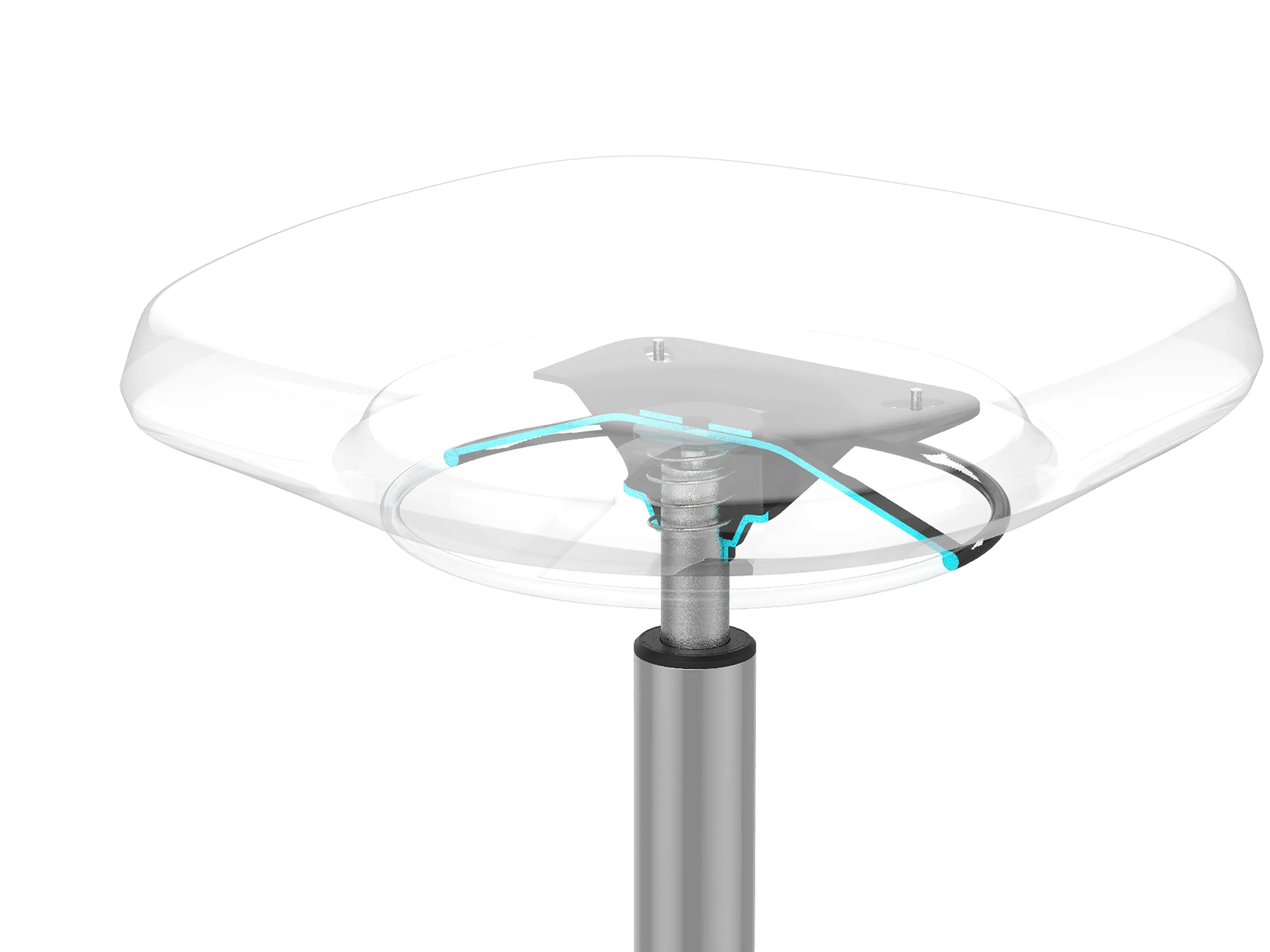 Hoogteinstelbaar tussen 520-770mm, met voetenring (hoogte instelbaar) en voetkruis met glijders