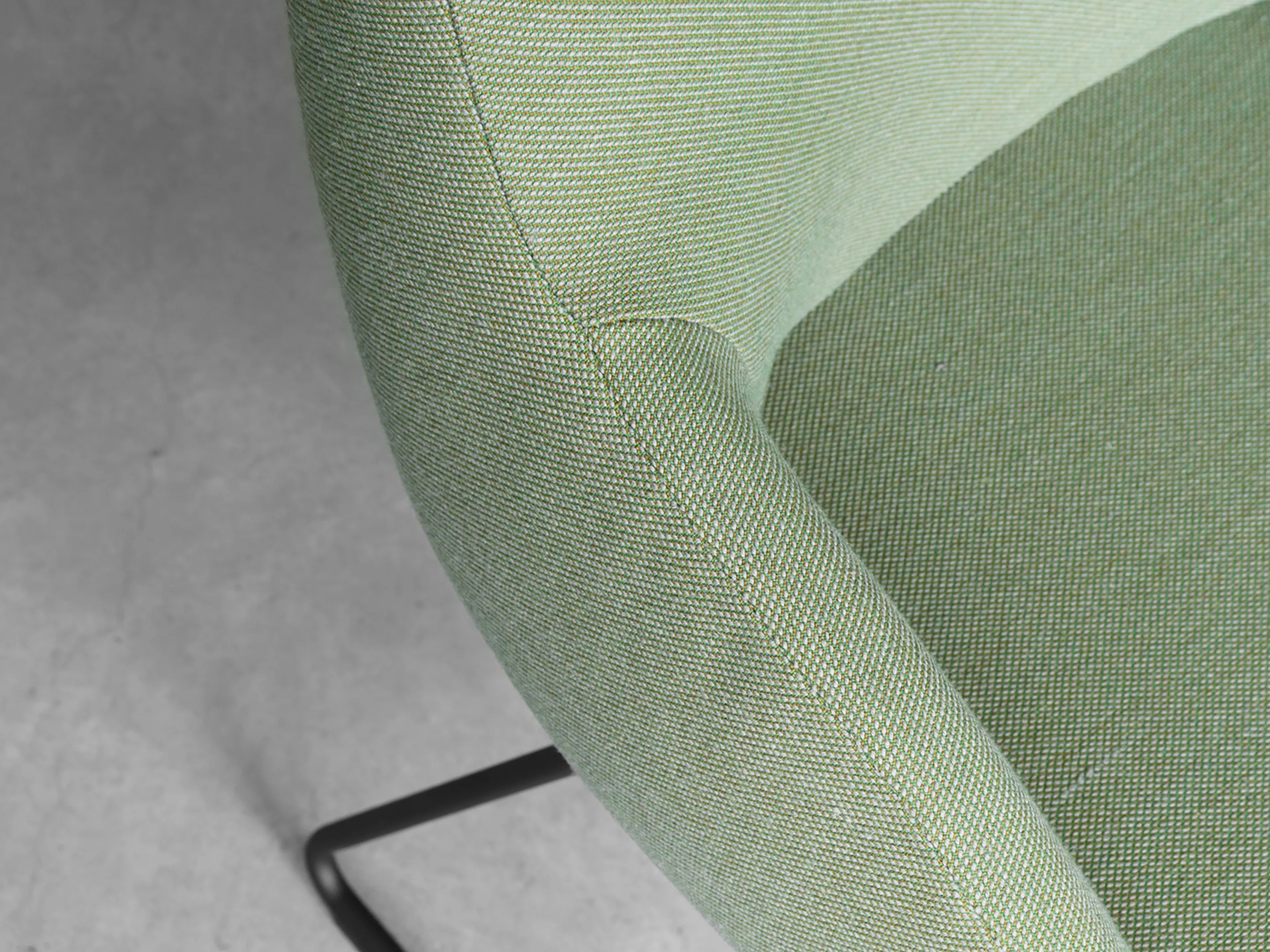 Vergaderstoel met volledig gestoffeerde kuip en op sledeframe.