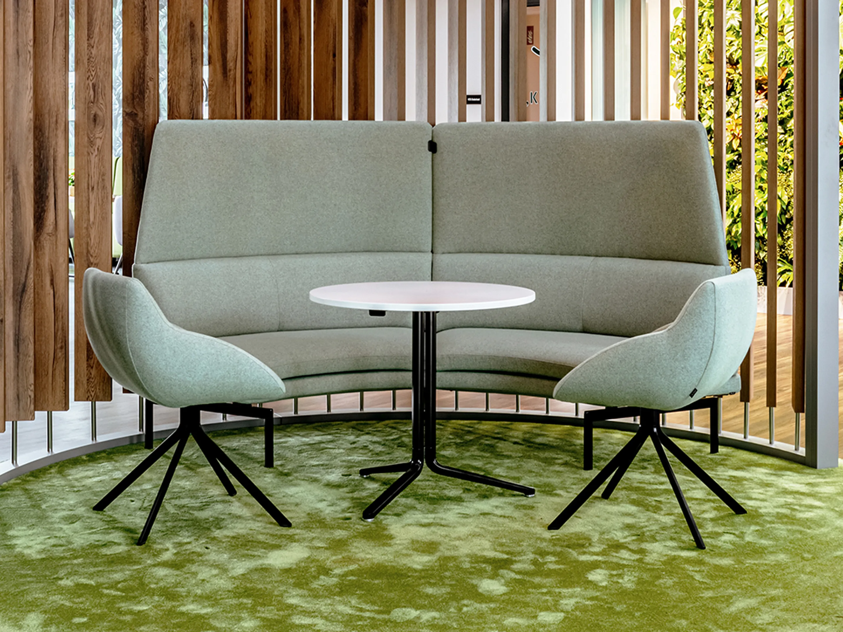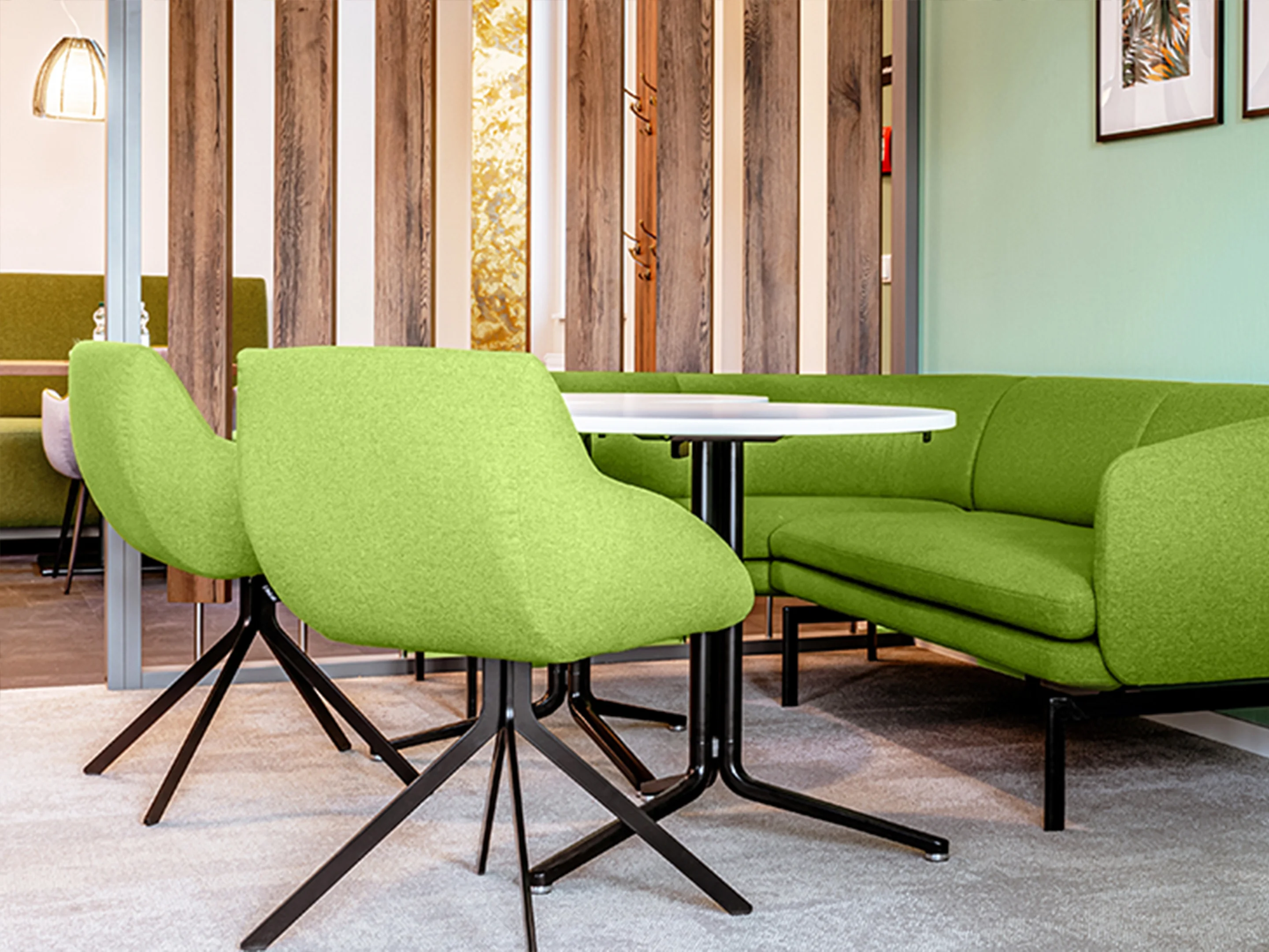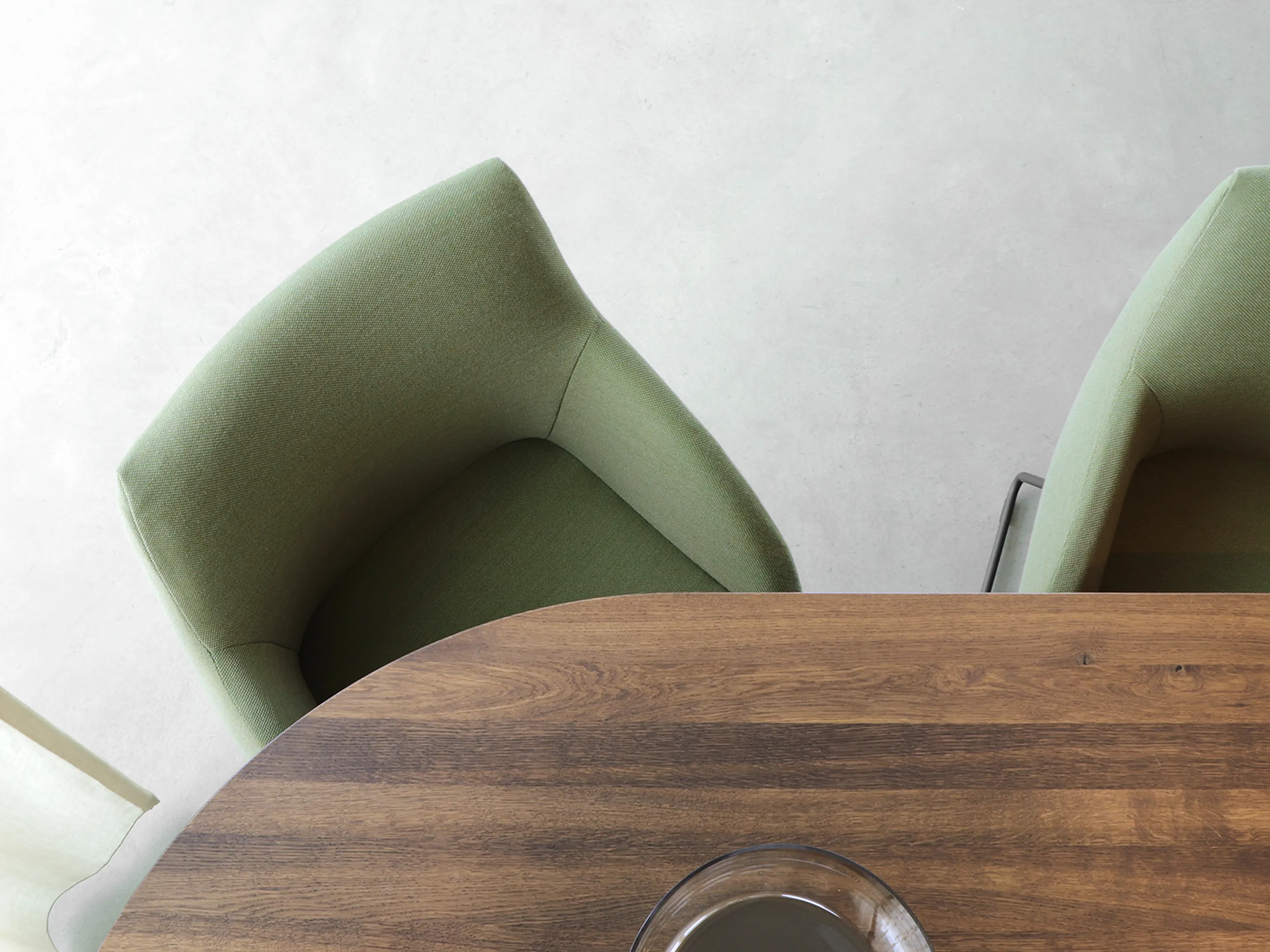 Vergaderstoel met volledig gestoffeerde kuip en op sledeframe.