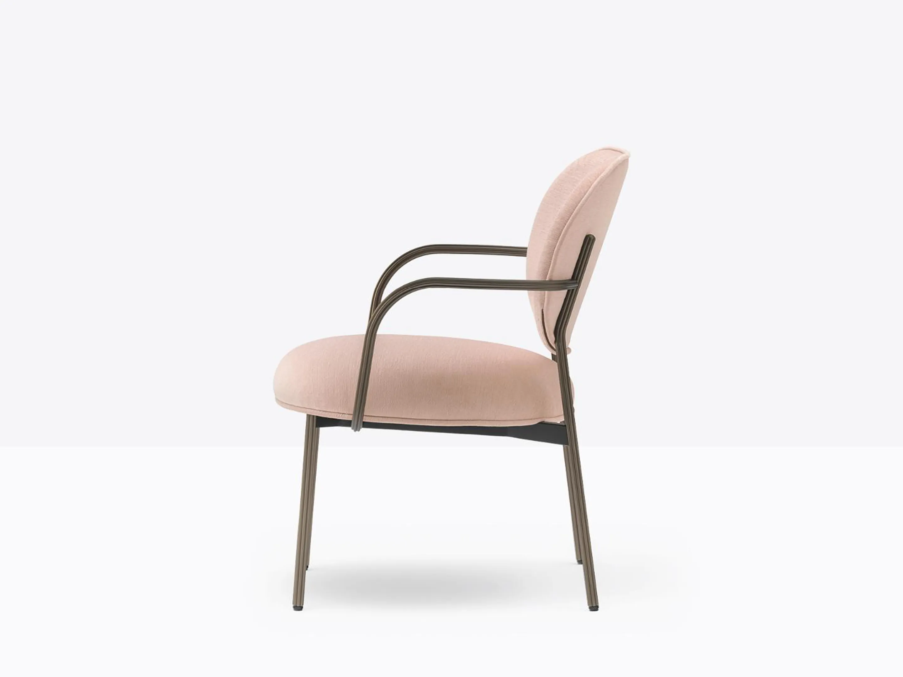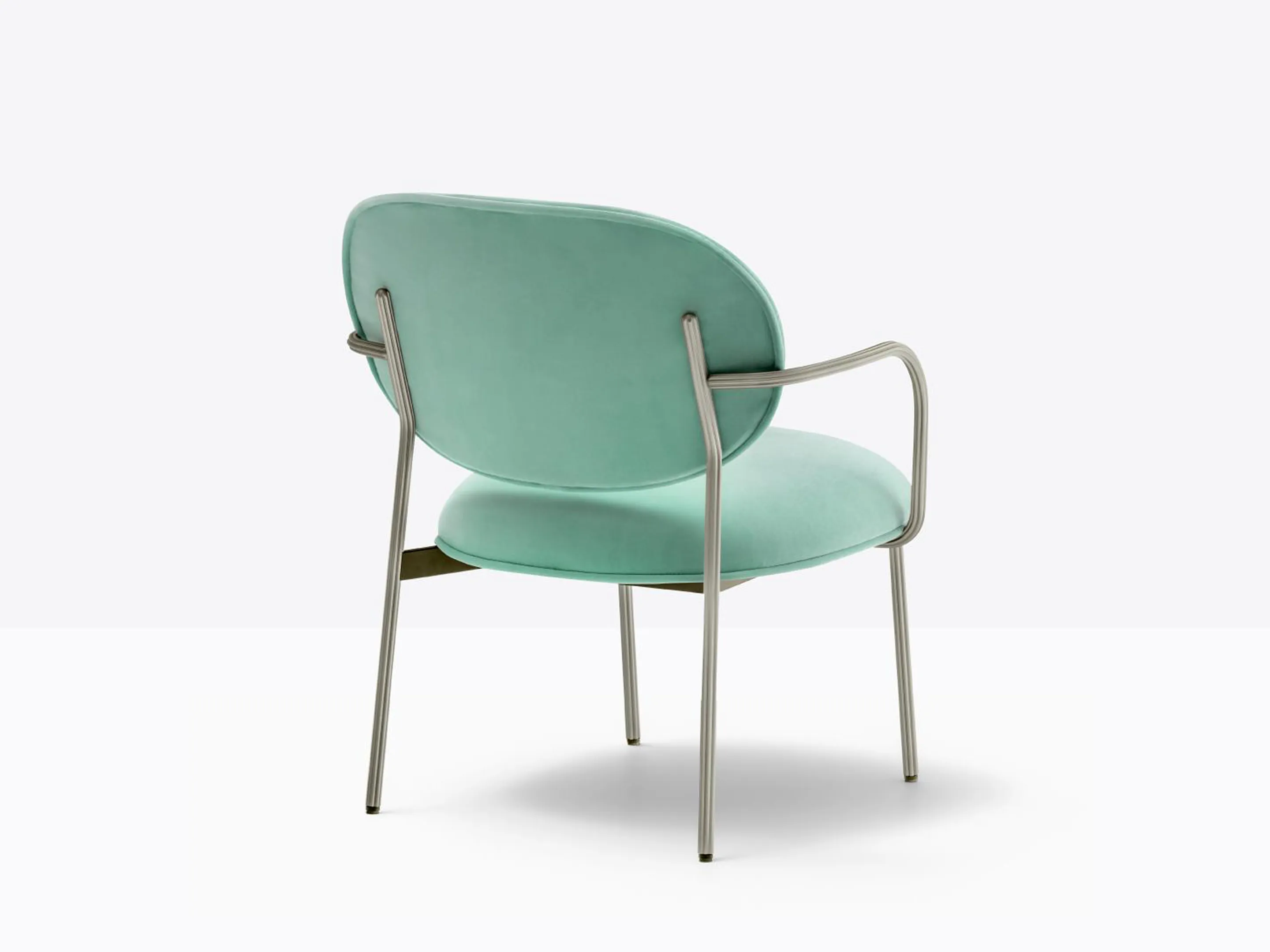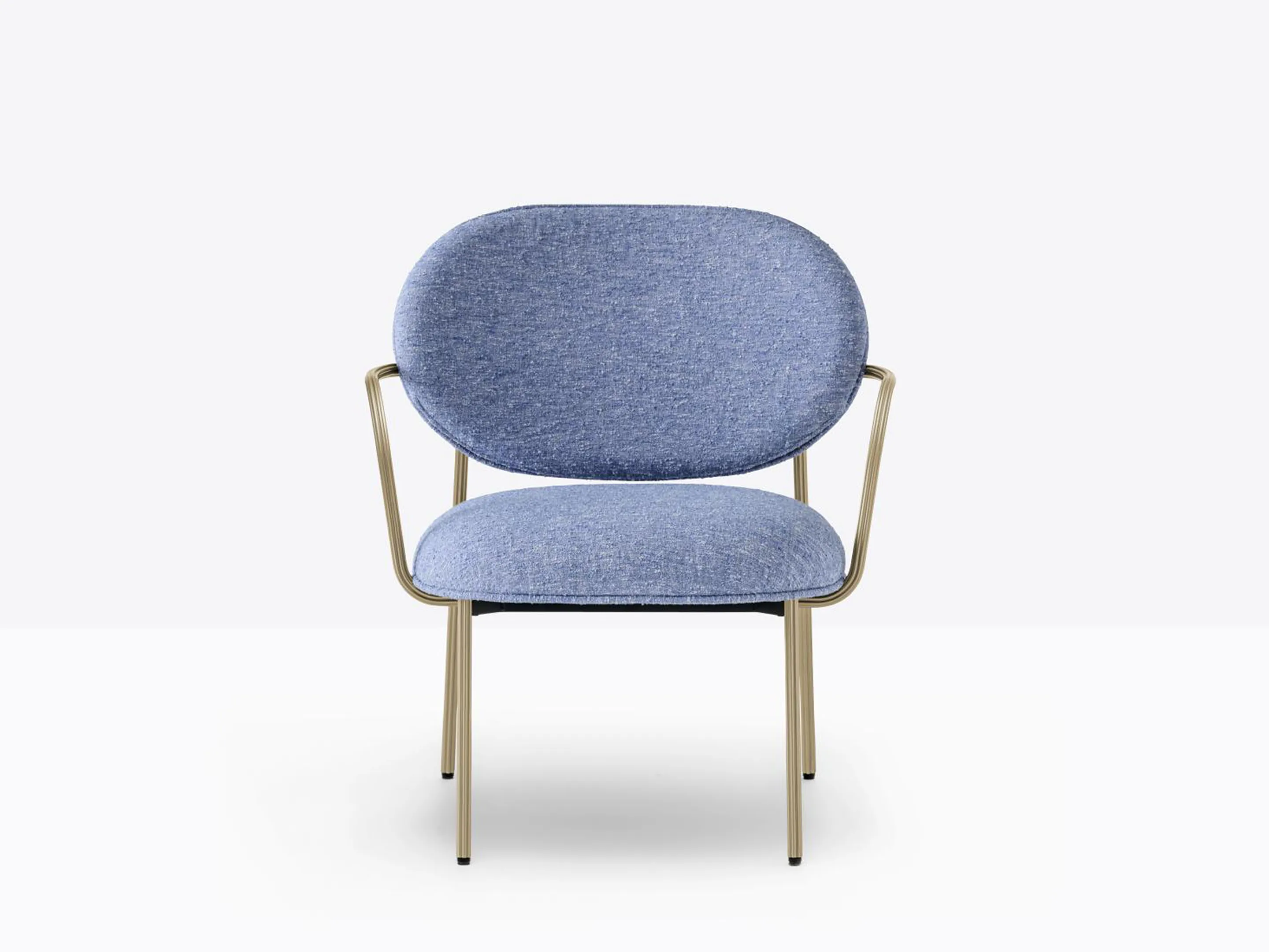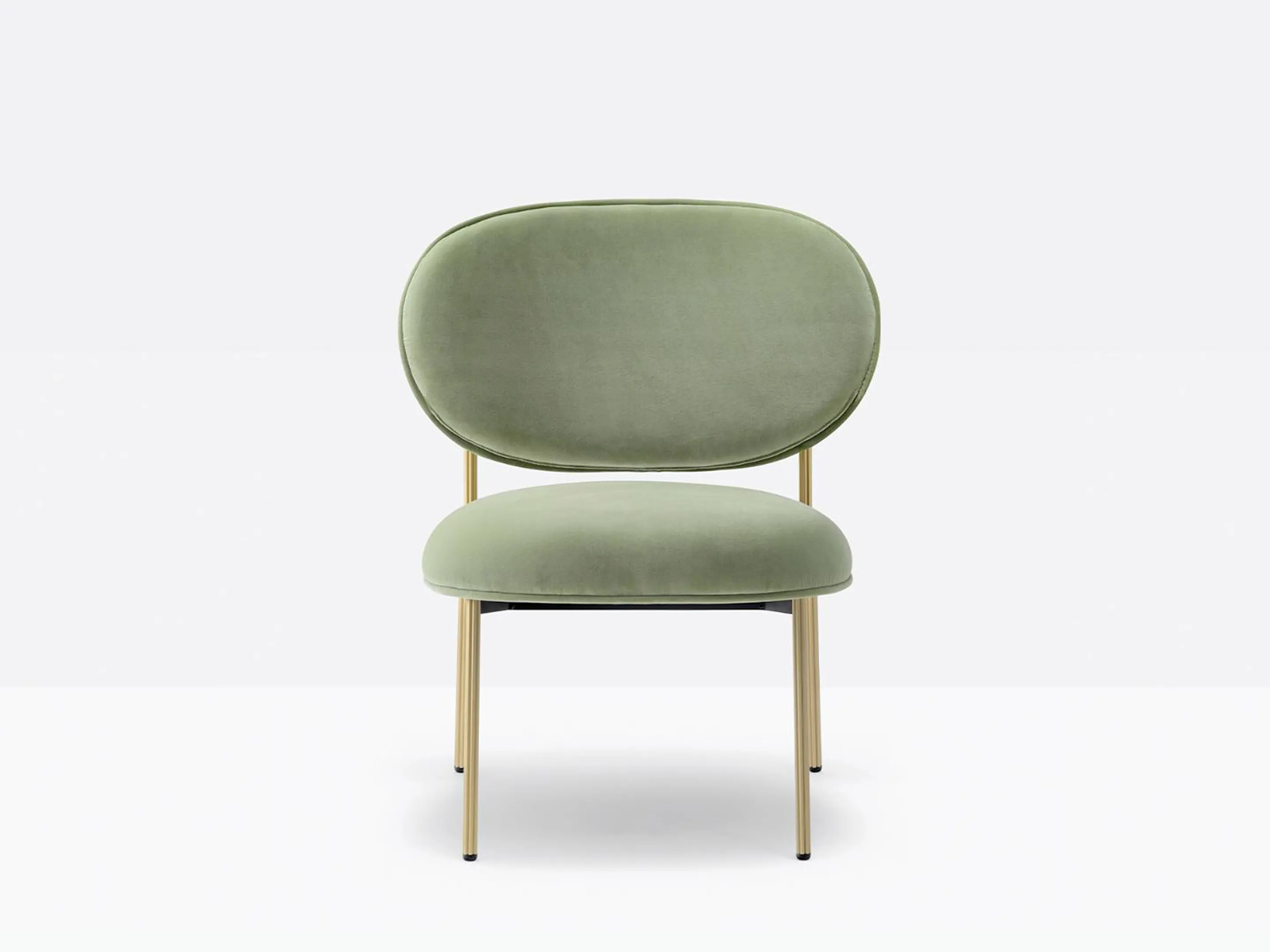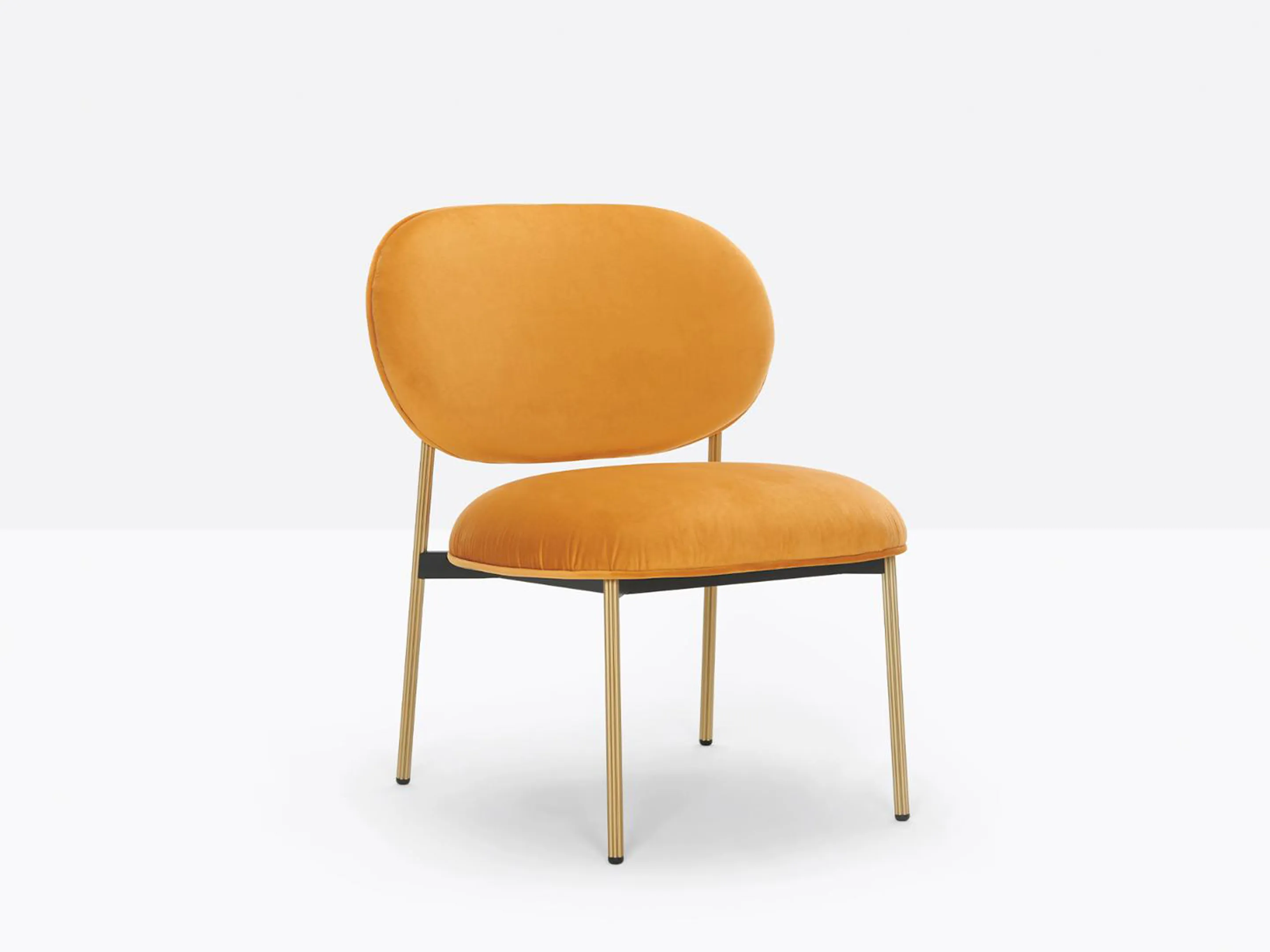Metalen 4-poots met lage zit frame met gestoffeerde zit- en rug stoffering.