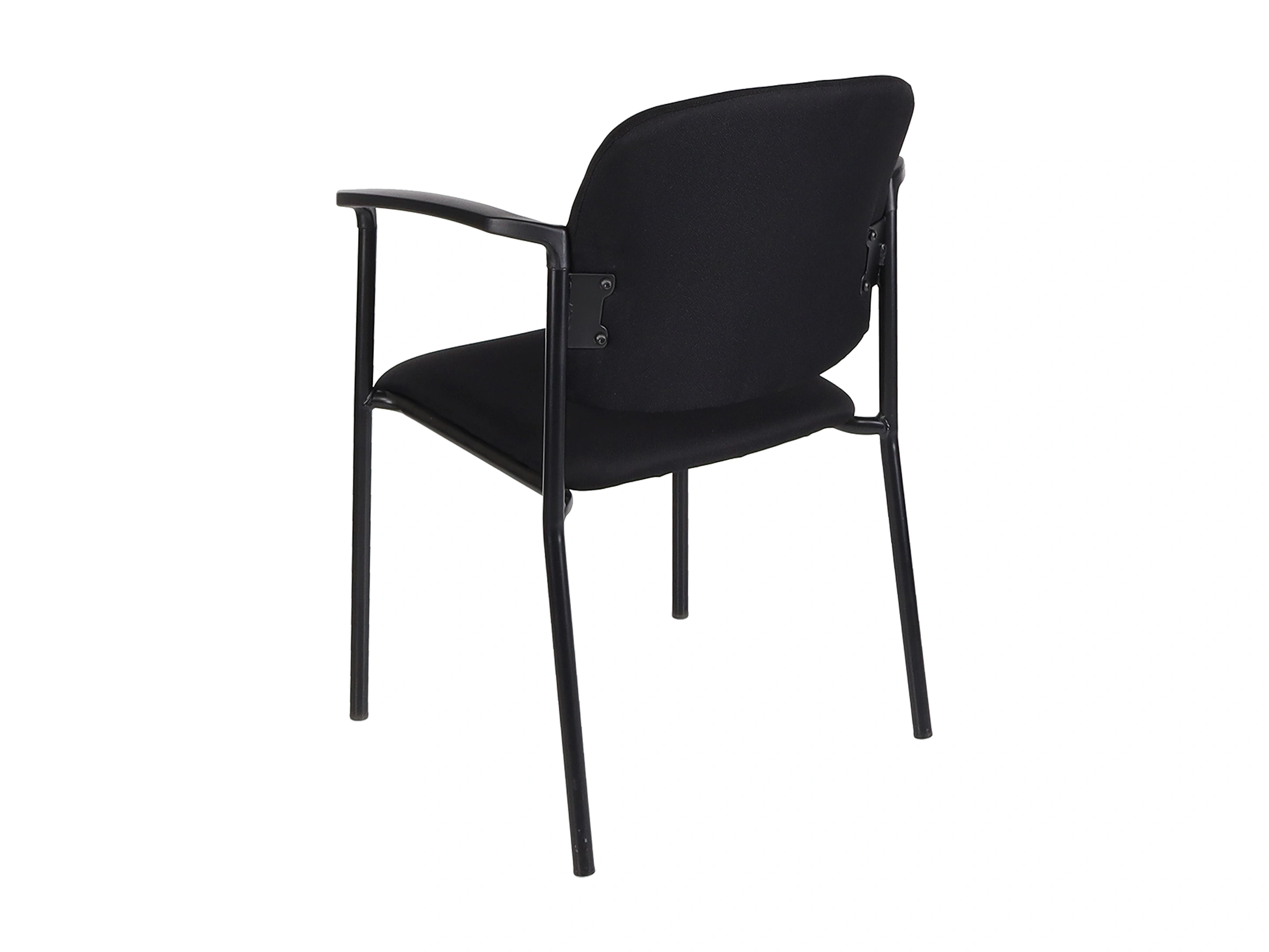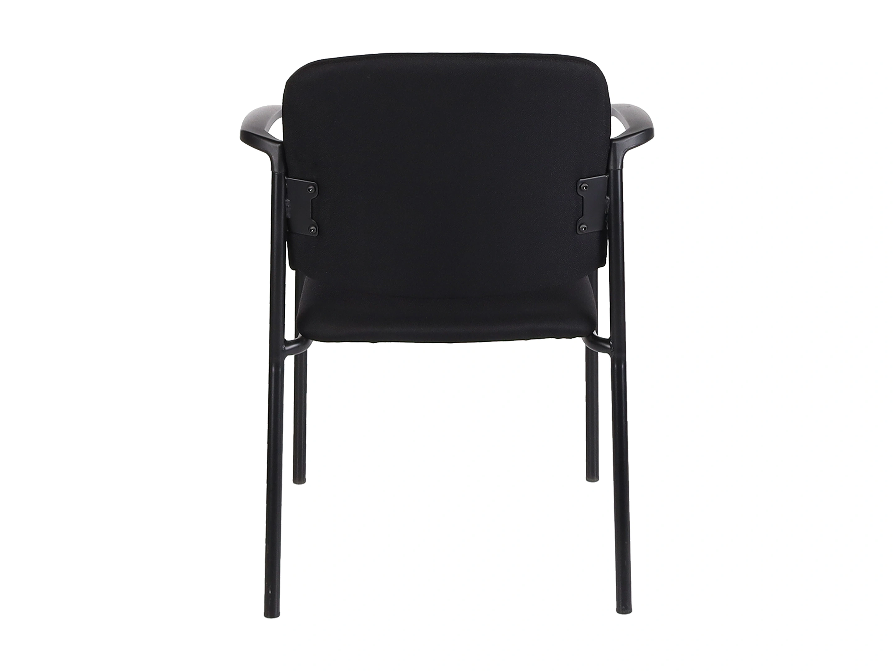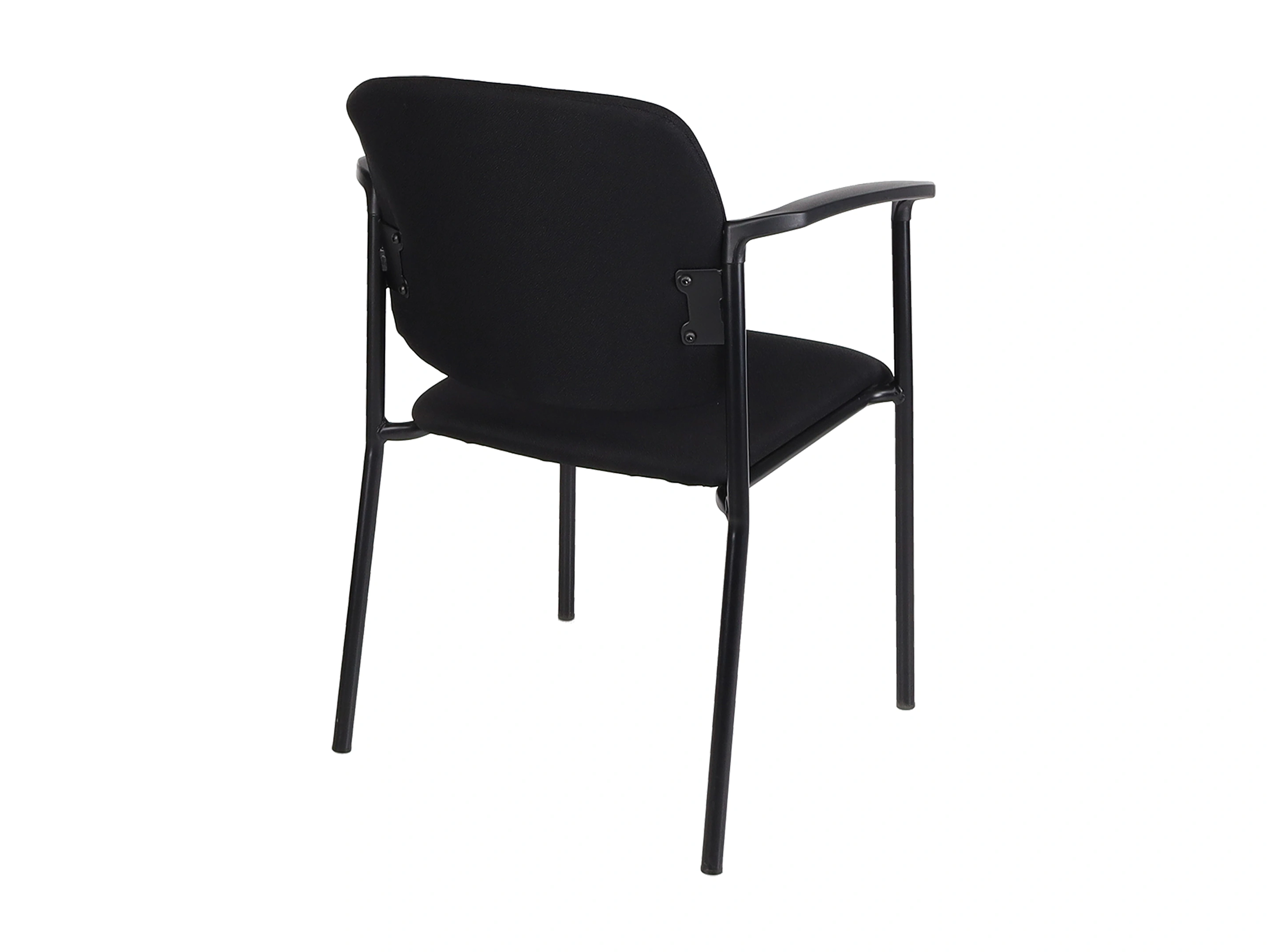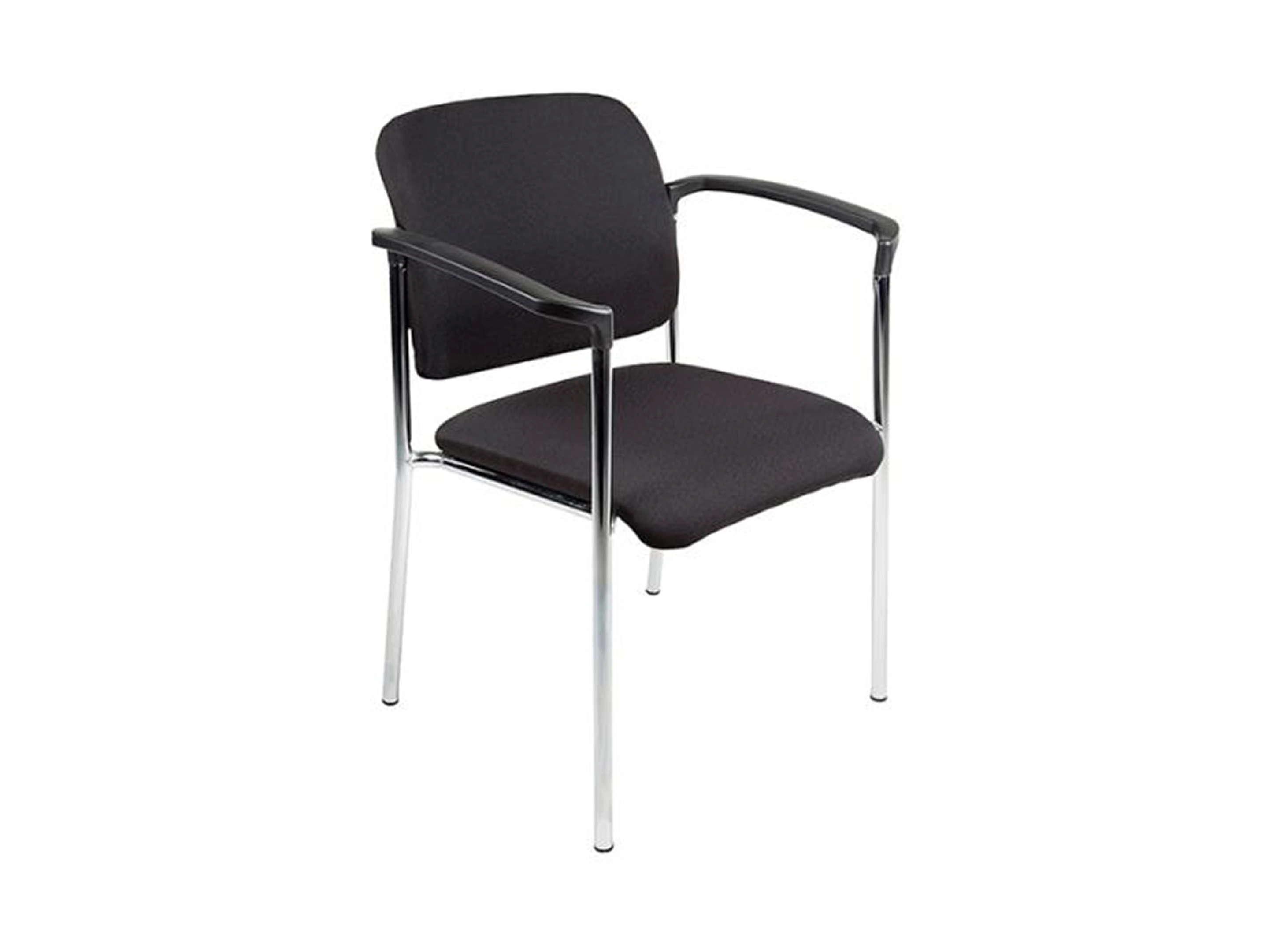 Vergaderstoel met gestoffeerde rug en zitting, polyester bekleding zwart, voorzien van kunststof voetdoppen, stapelbaar, kunststof armleuningen