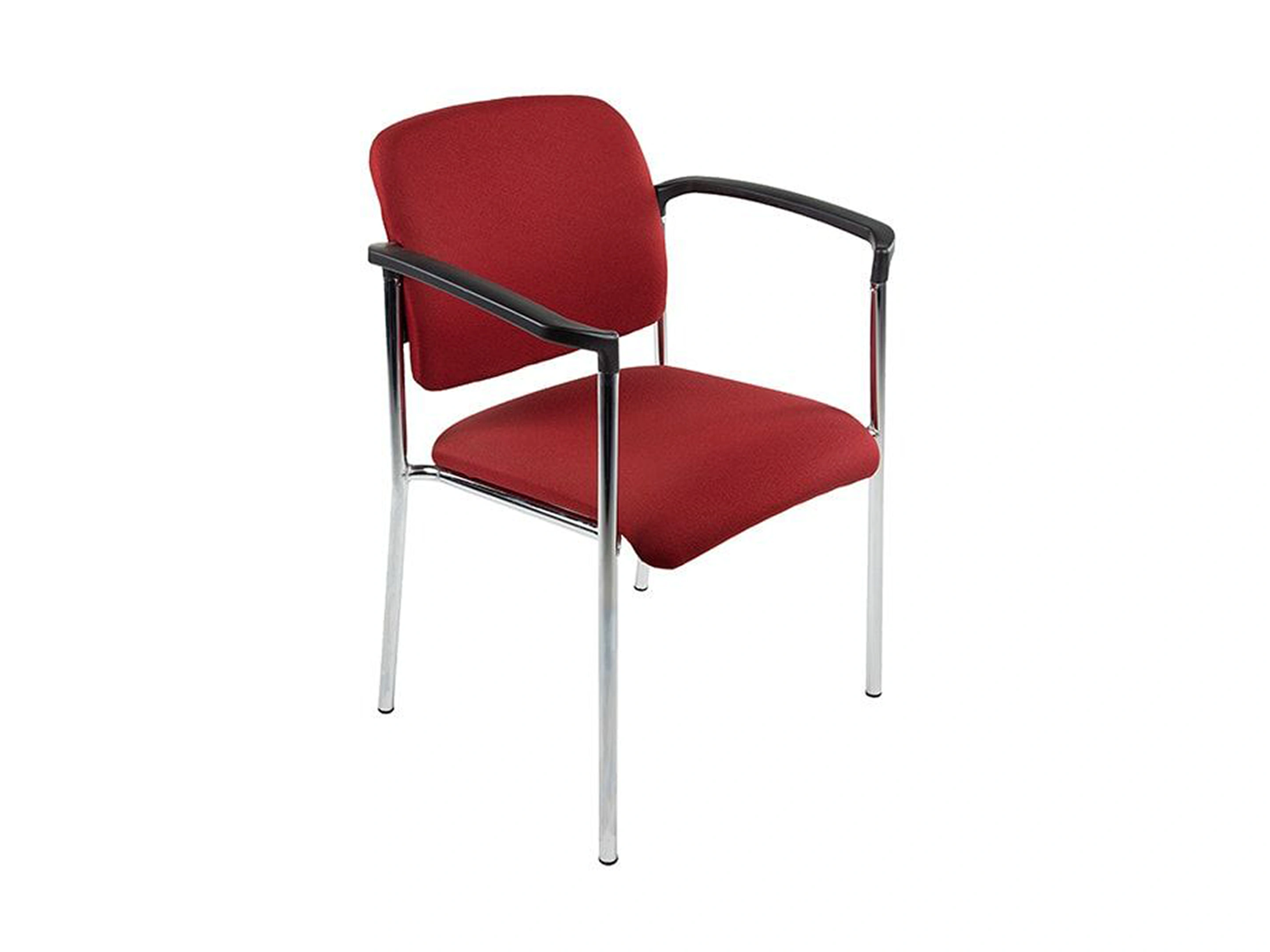 Vergaderstoel met gestoffeerde rug en zitting, polyester bekleding bordeaux rood, voorzien van kunststof voetdoppen, stapelbaar, kunststof armleuningen