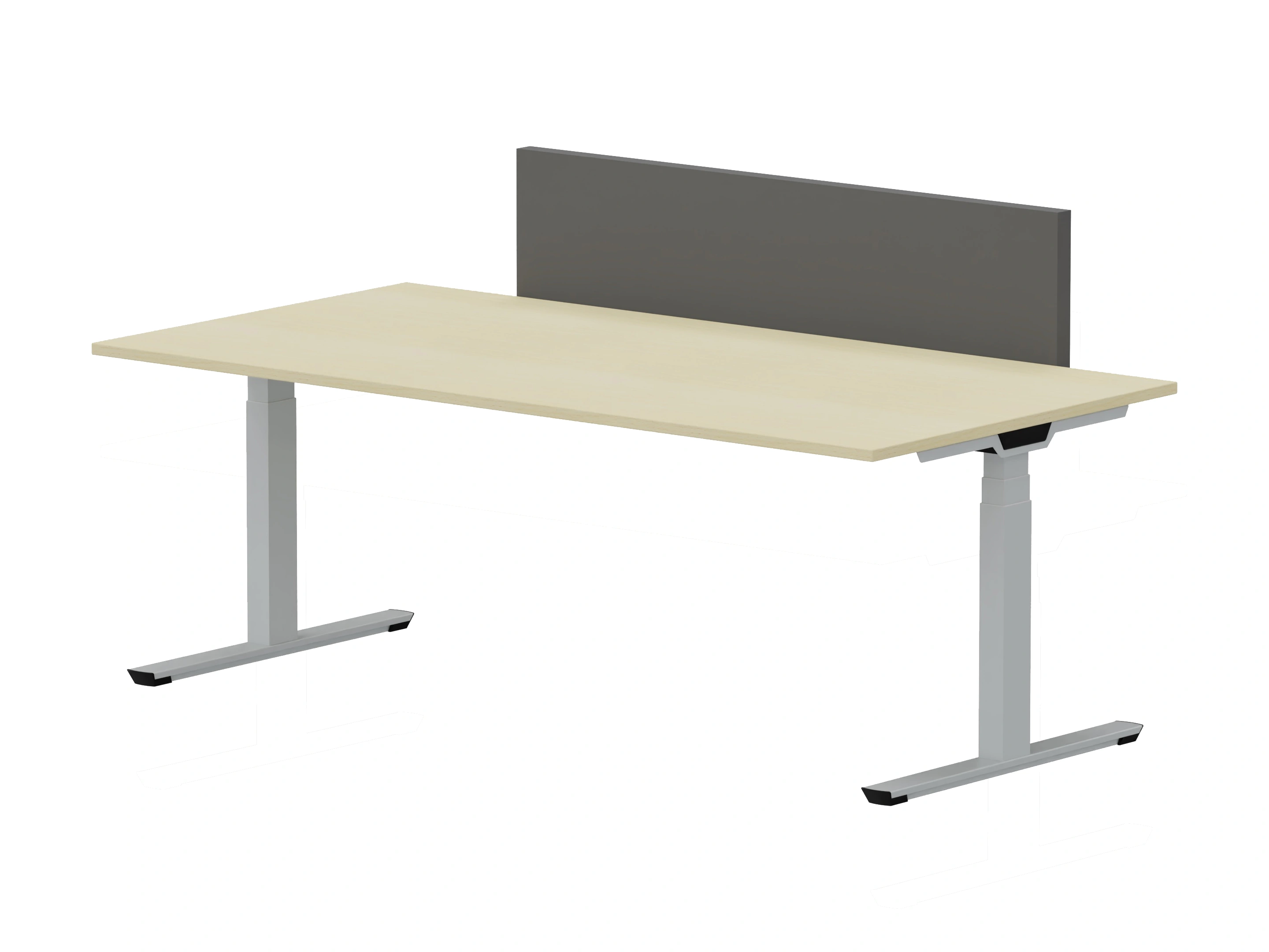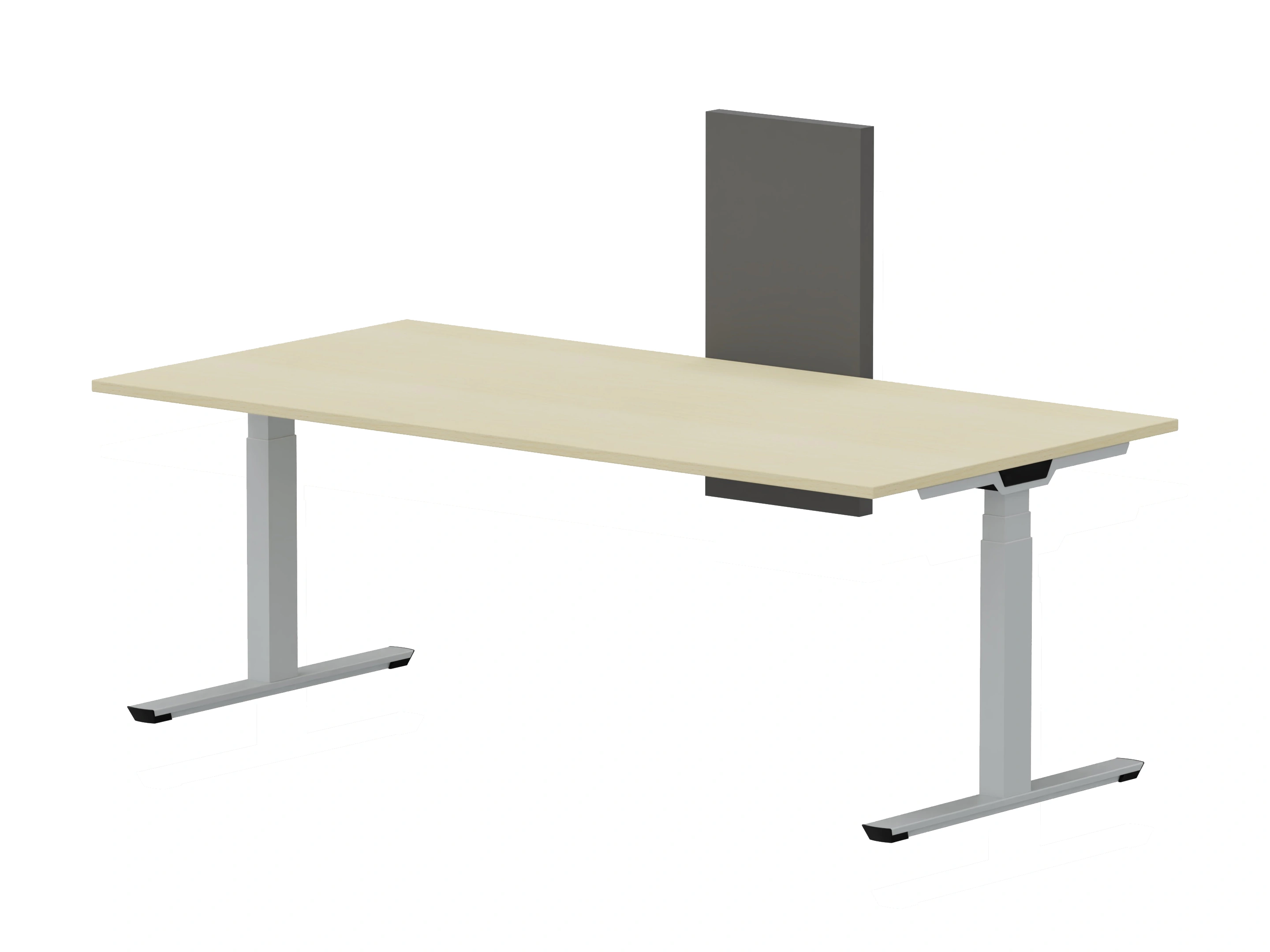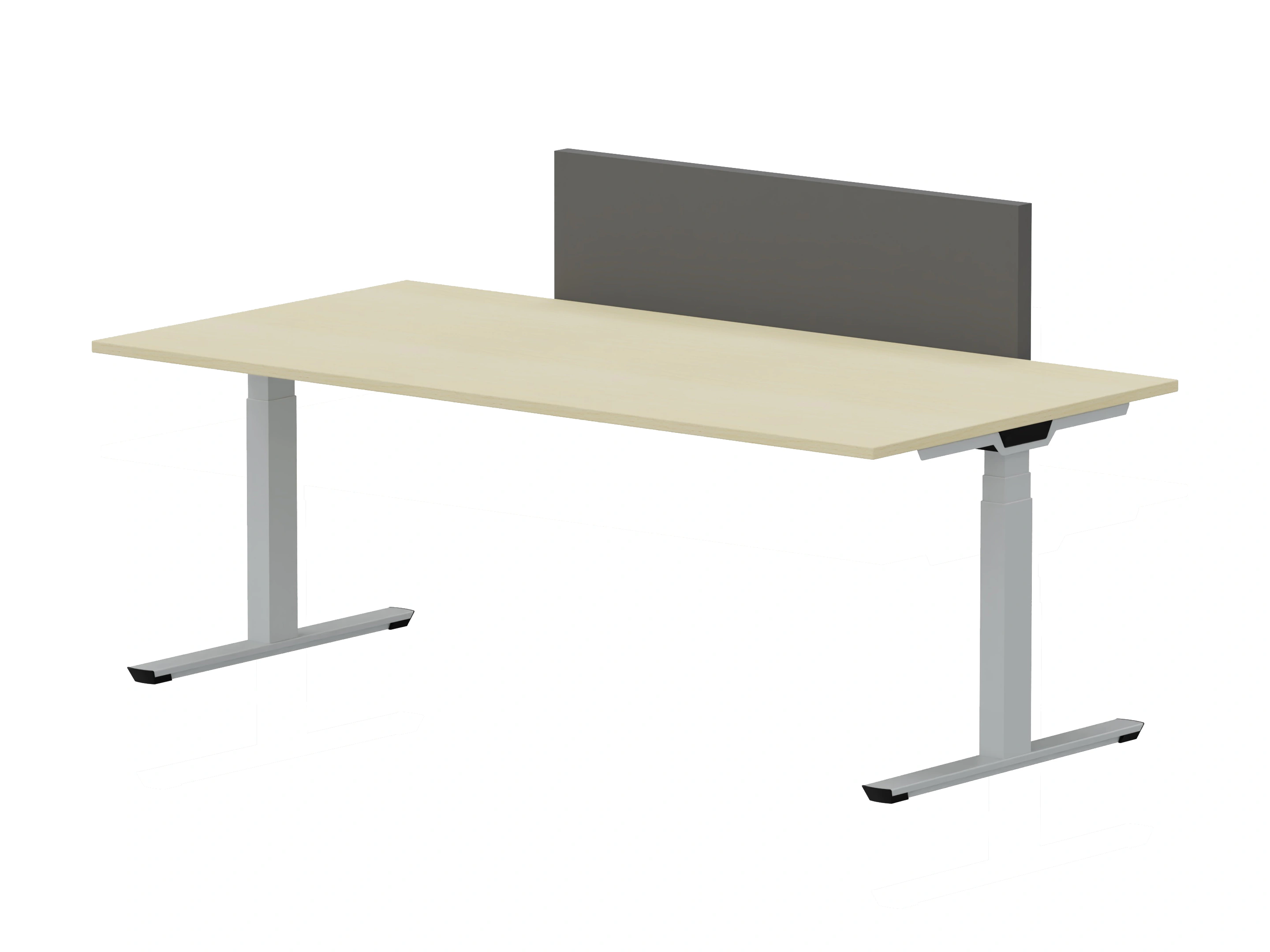 Akoestisch paneel hangend aan het bureaublad, opgebouwd uit een 40mm berken multiplex frame, gevuld met gerecycled katoen, absorbtieklasse A/NRC waarde 0,95