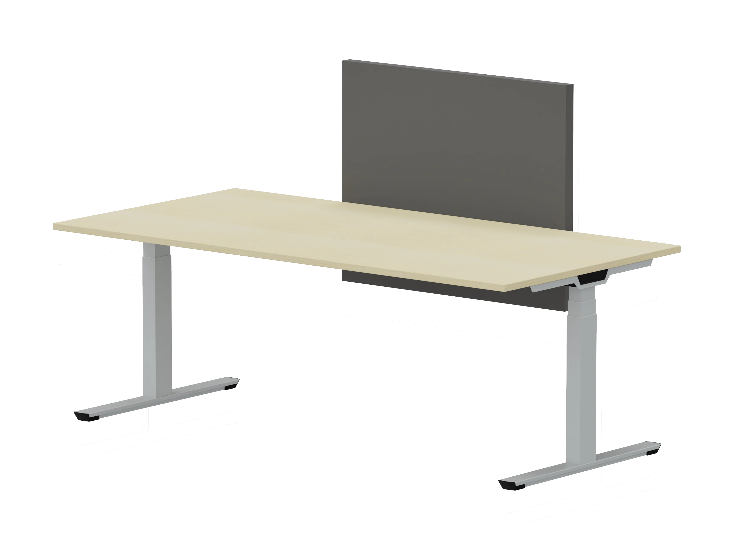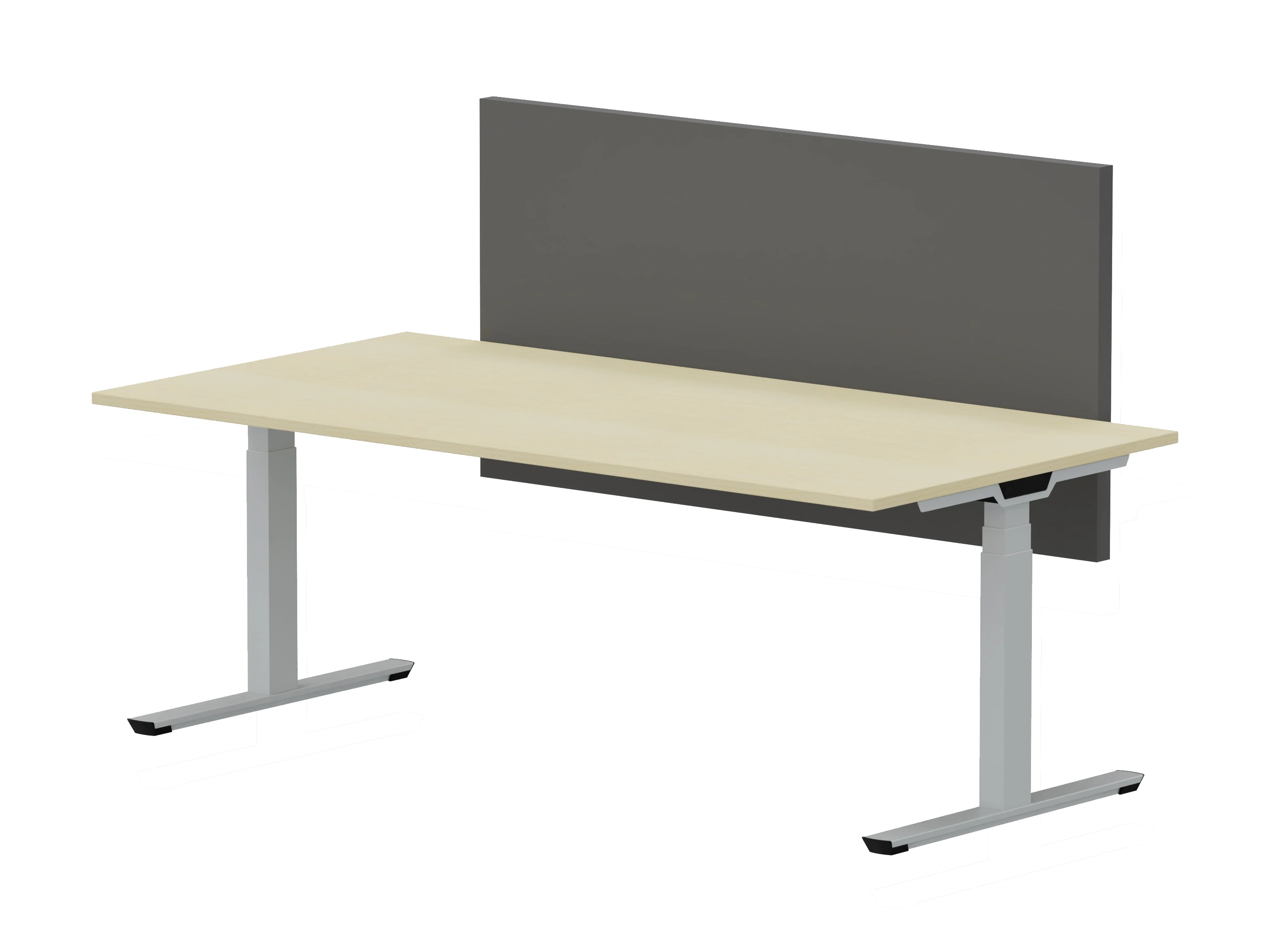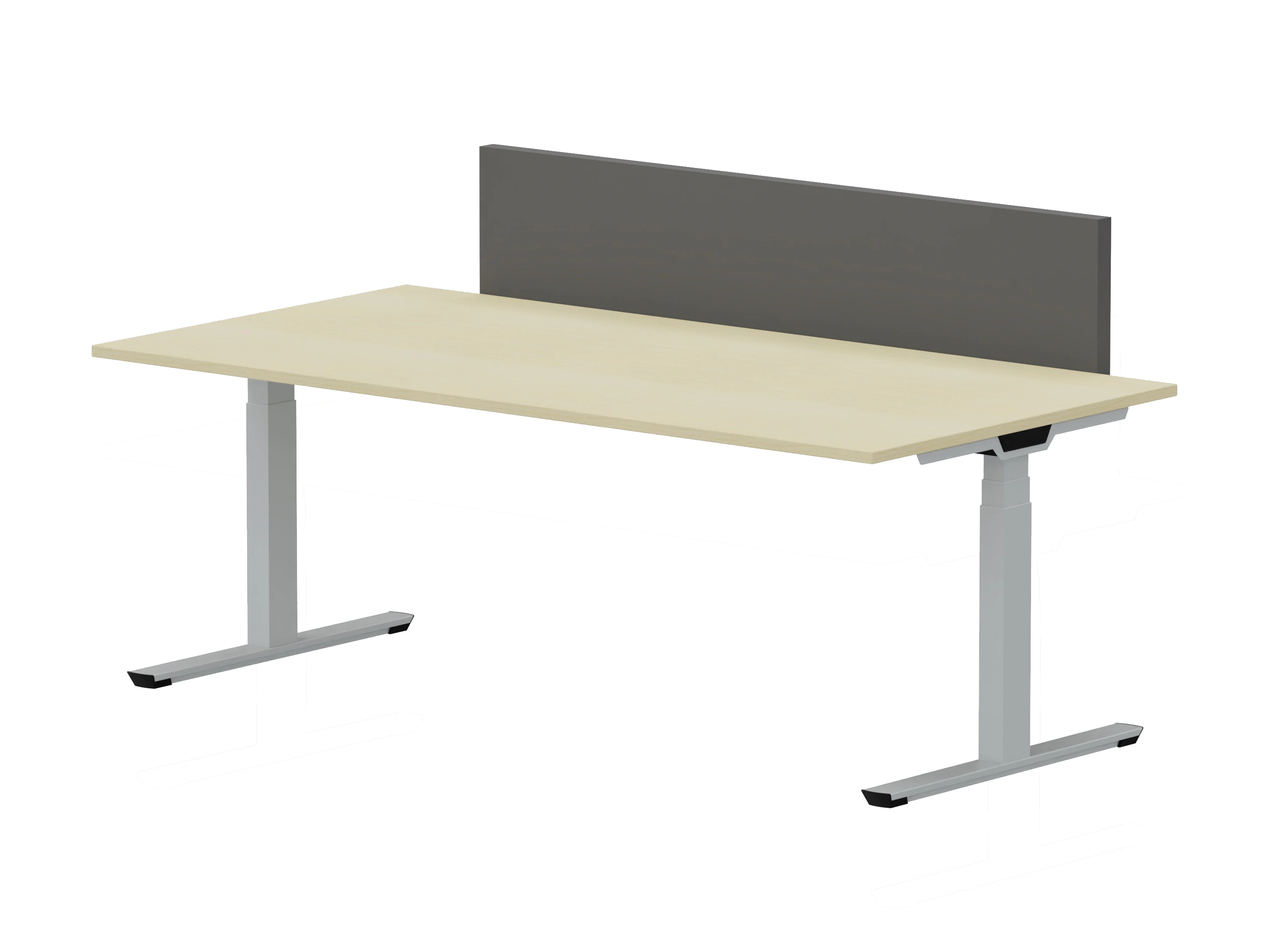Akoestisch paneel hangend aan het bureaublad, opgebouwd uit een 40mm berken multiplex frame, gevuld met gerecycled katoen, absorbtieklasse A/NRC waarde 0,95