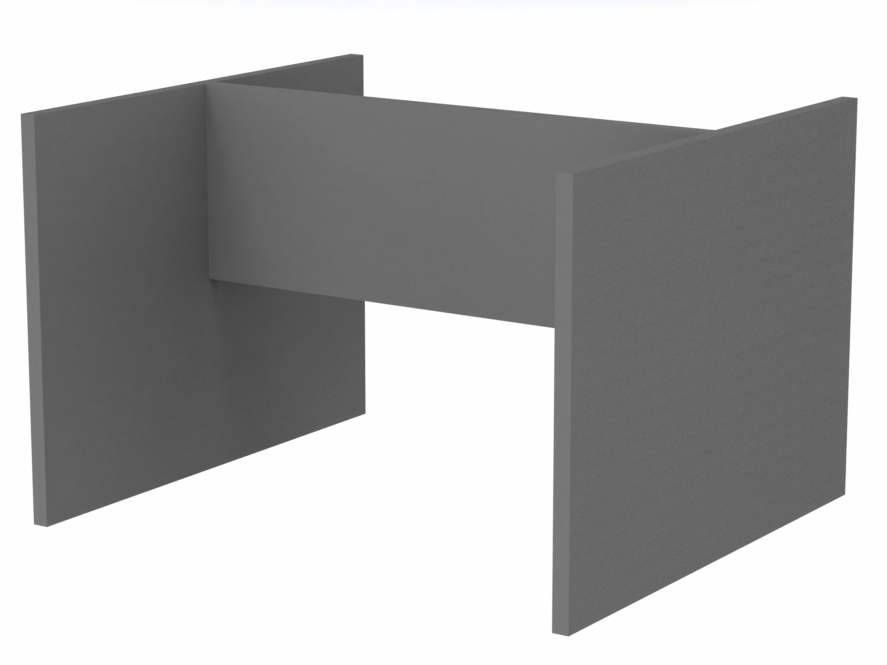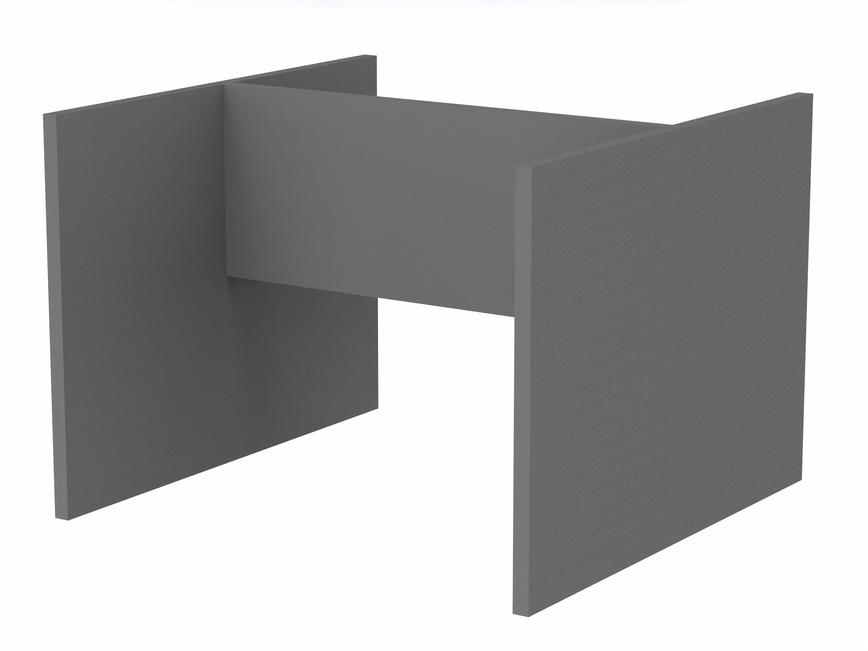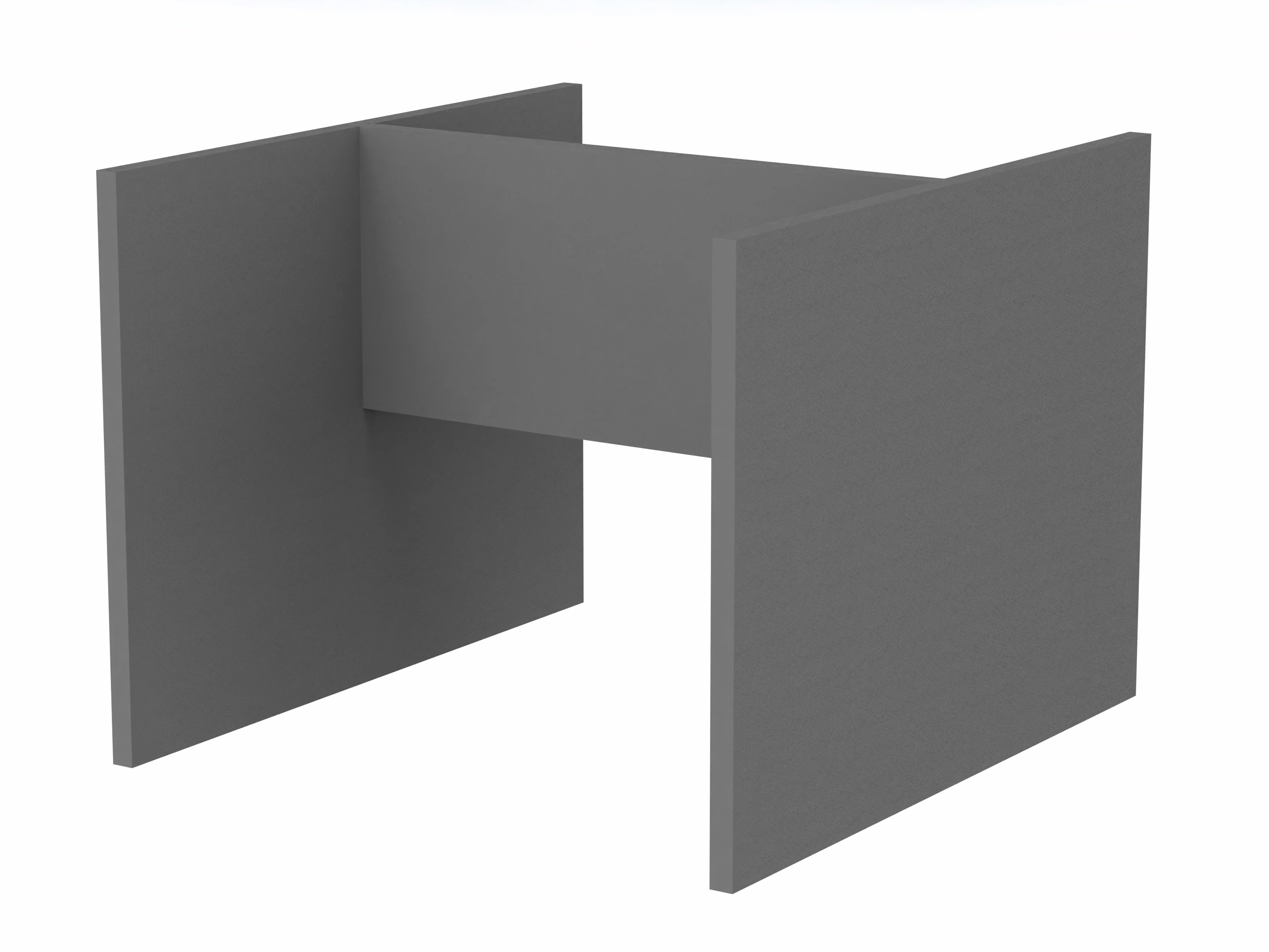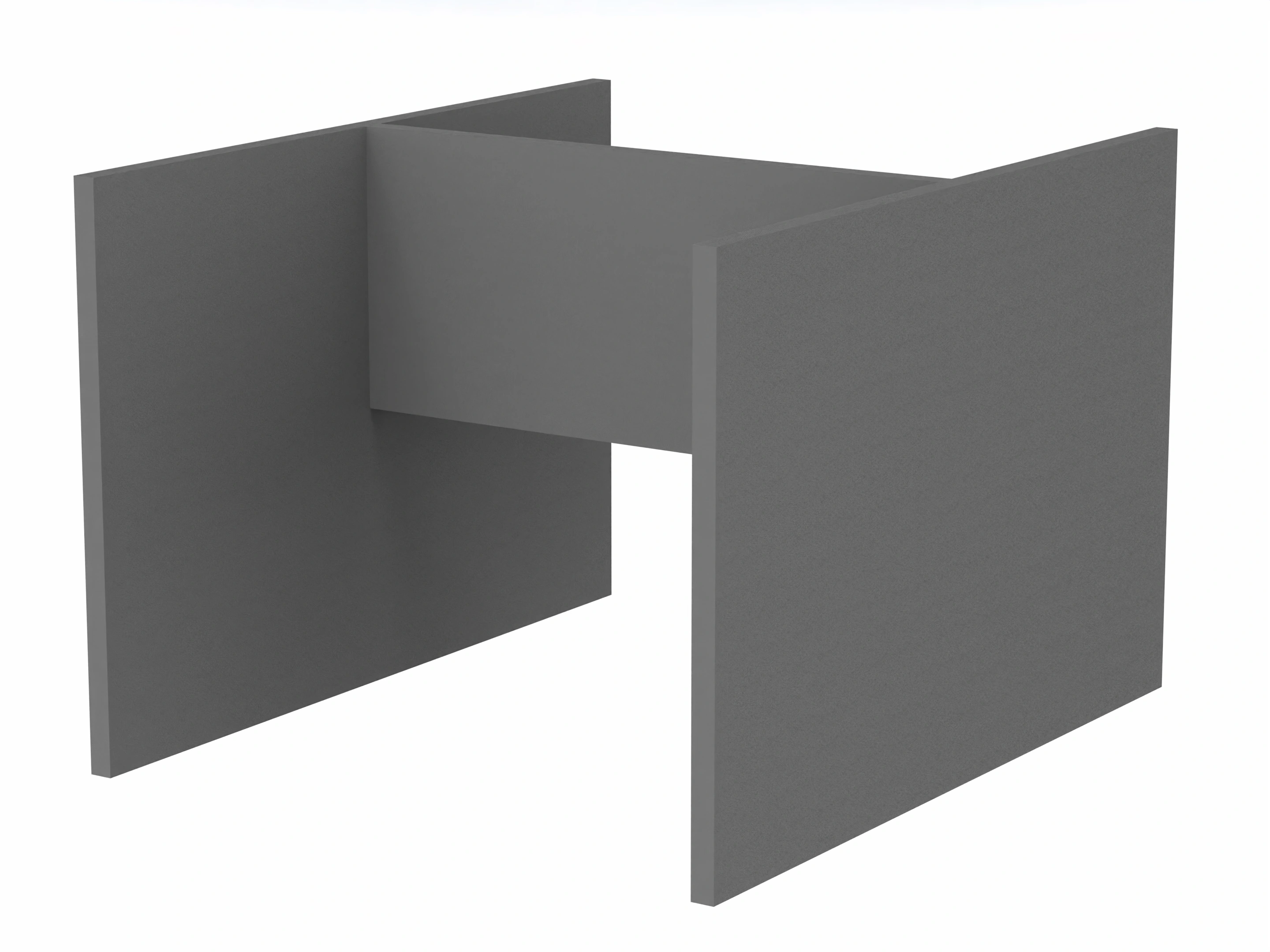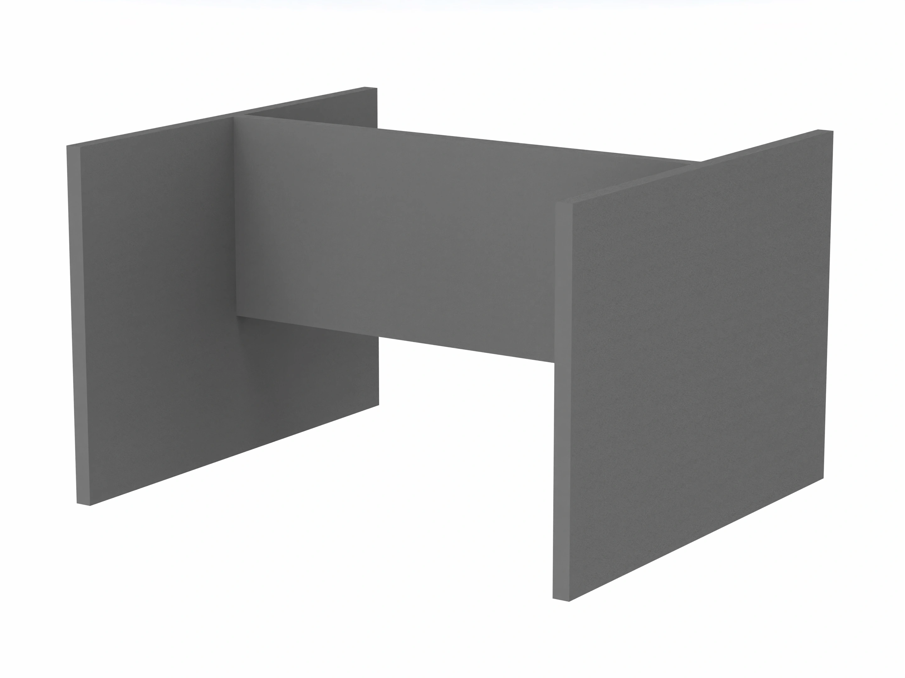 Bestaande uit 1 staand frontpaneel tussen 2 staande zijpanelen. Panelen zijn opgebouwd uit een 40mm berken multiplex frame, gevuld met gerecycled katoen, absorbtieklasse A/NRC waarde 0,95. Gegeven maatvoering zijn bureaumaten
