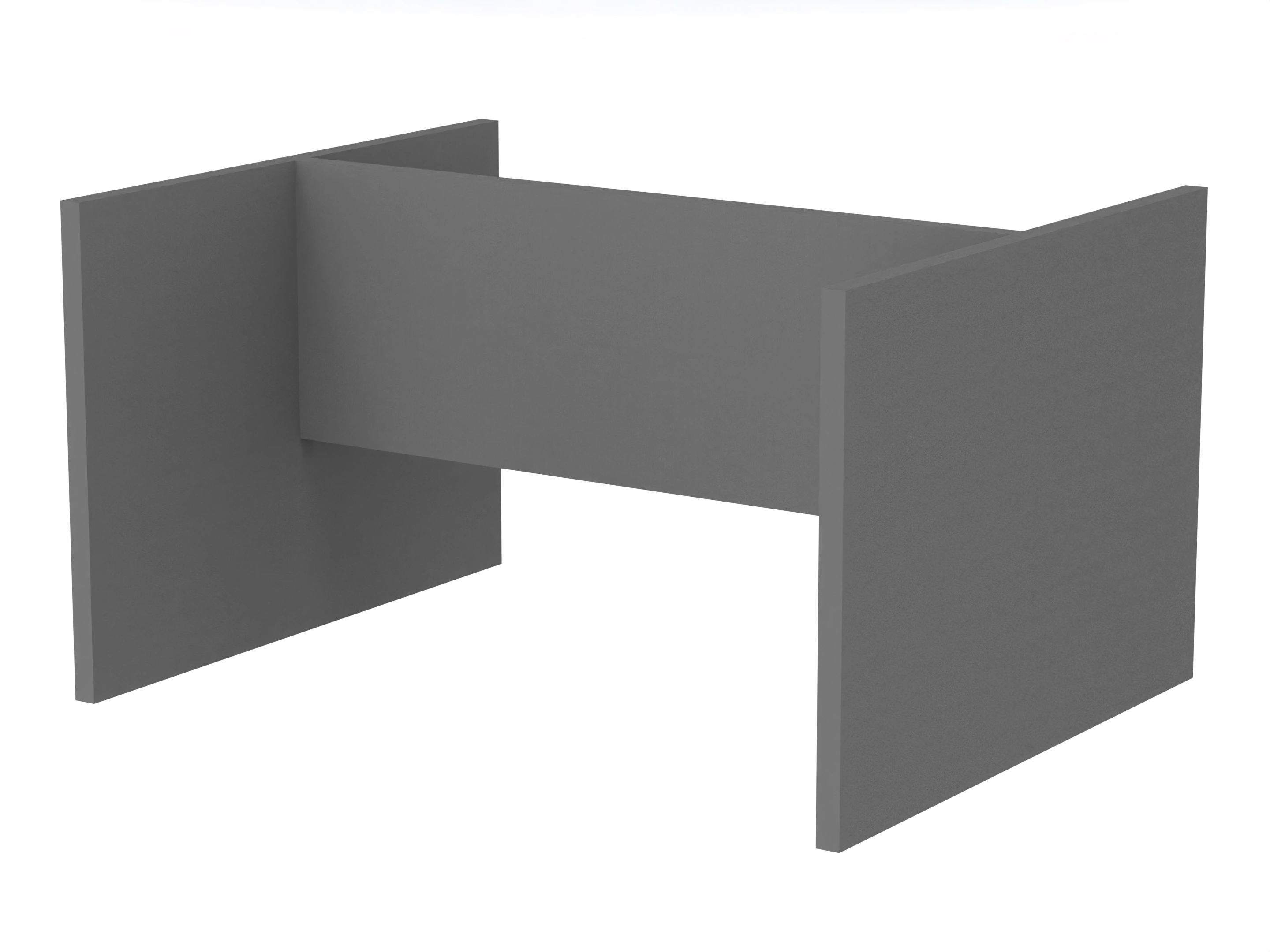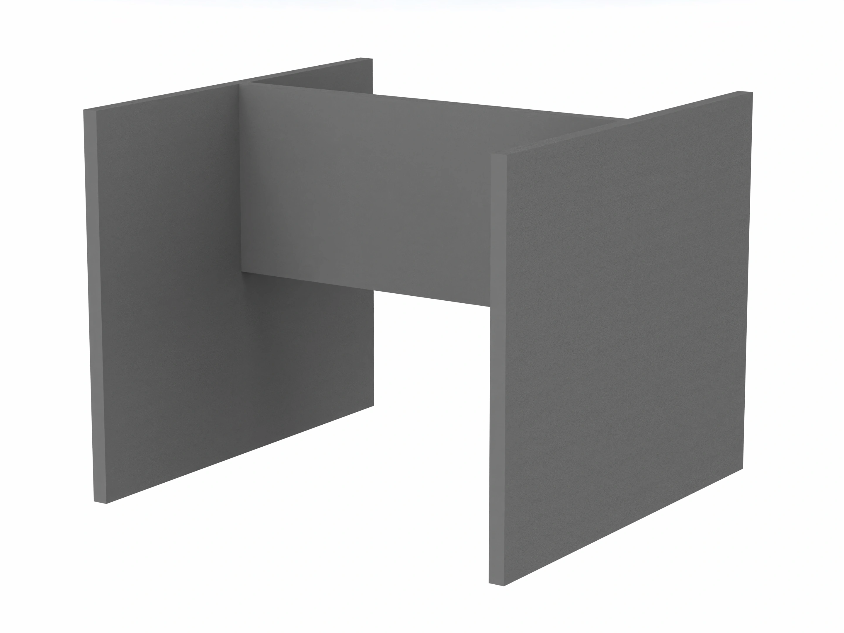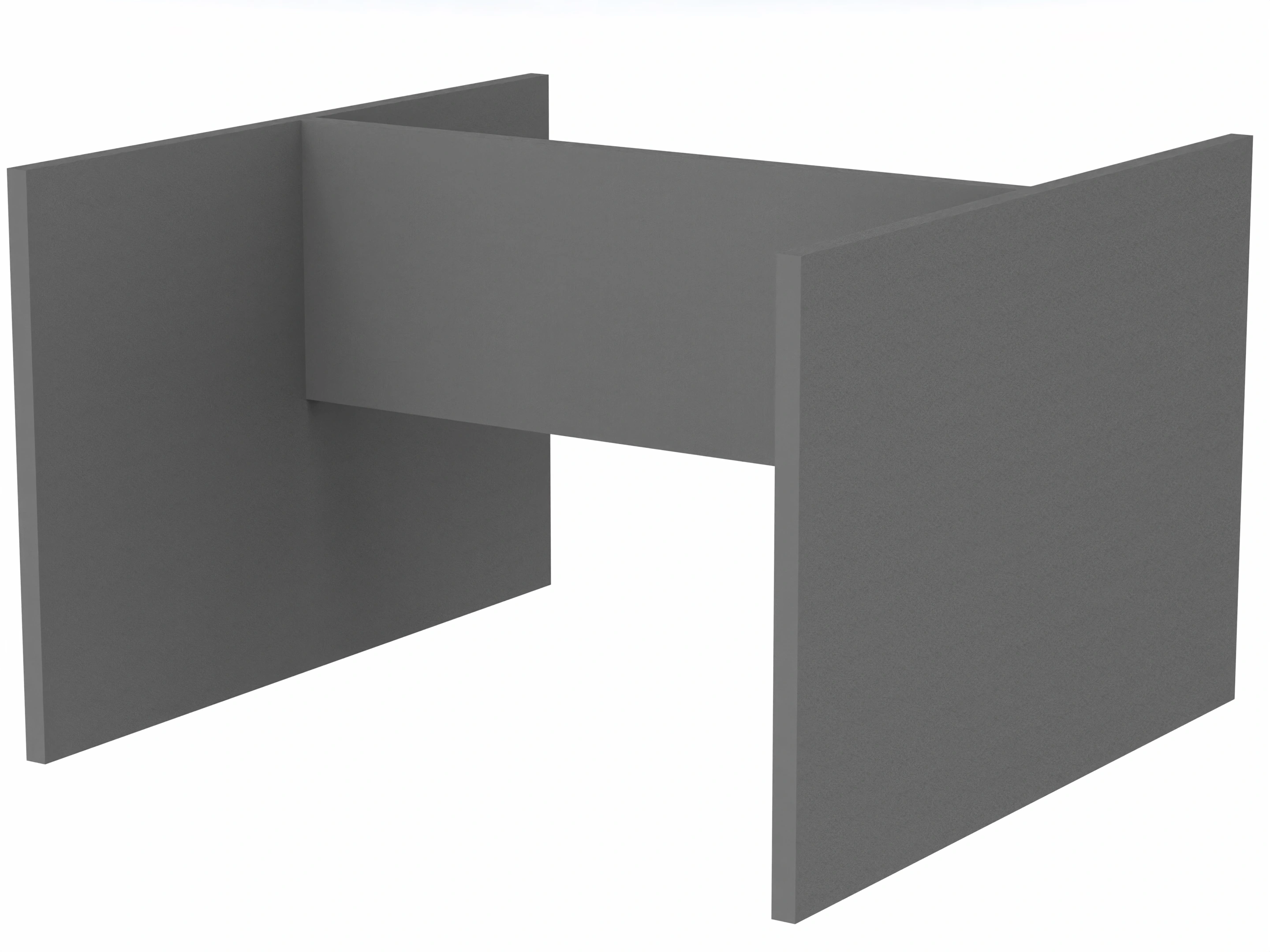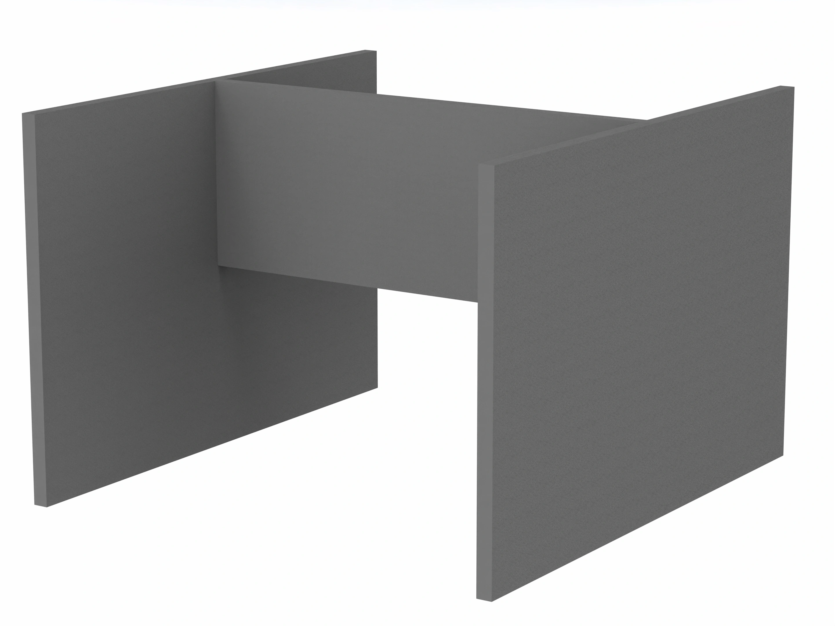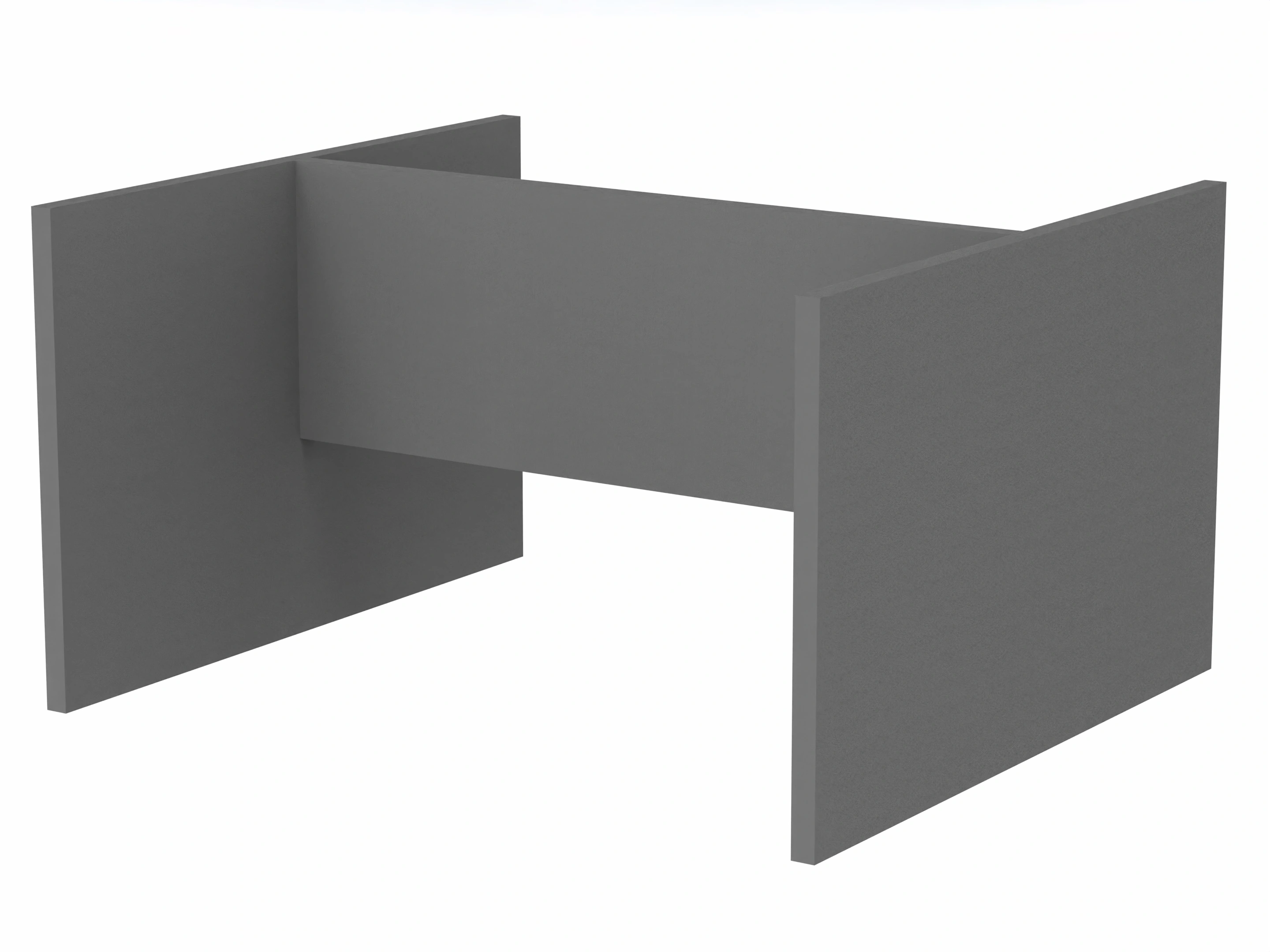 Bestaande uit 1 staand frontpaneel tussen 2 staande zijpanelen. Panelen zijn opgebouwd uit een 40mm berken multiplex frame, gevuld met gerecycled katoen, absorbtieklasse A/NRC waarde 0,95. Gegeven maatvoering zijn bureaumaten