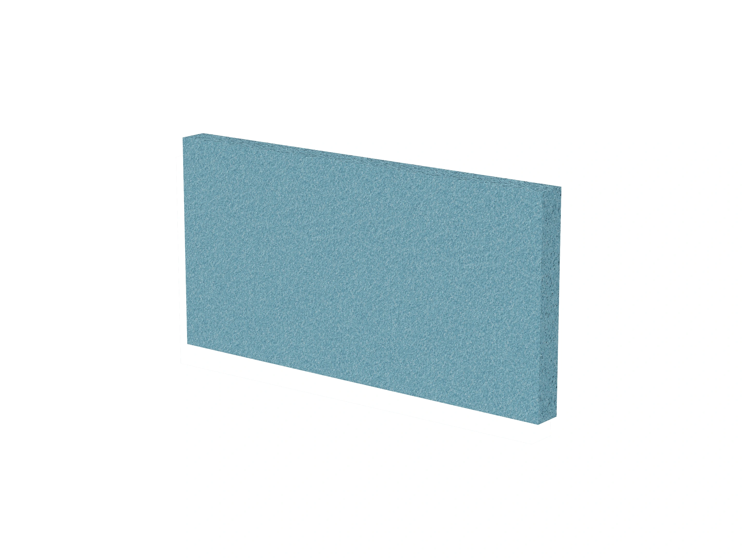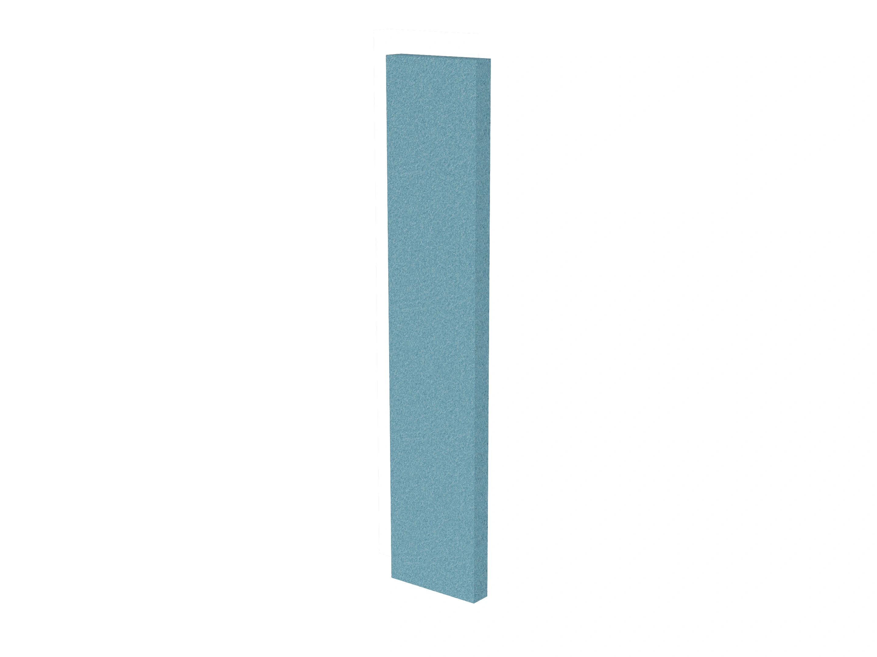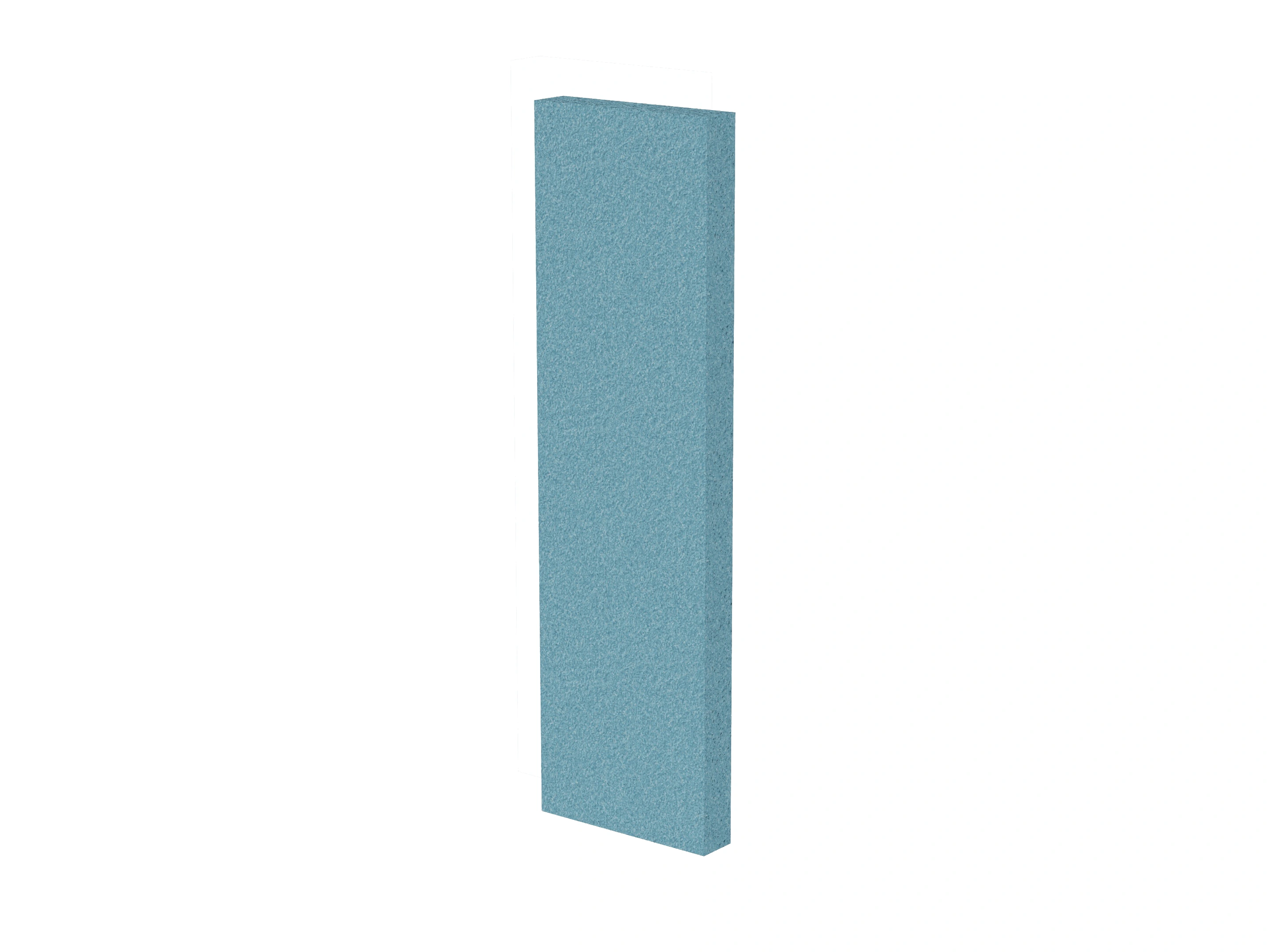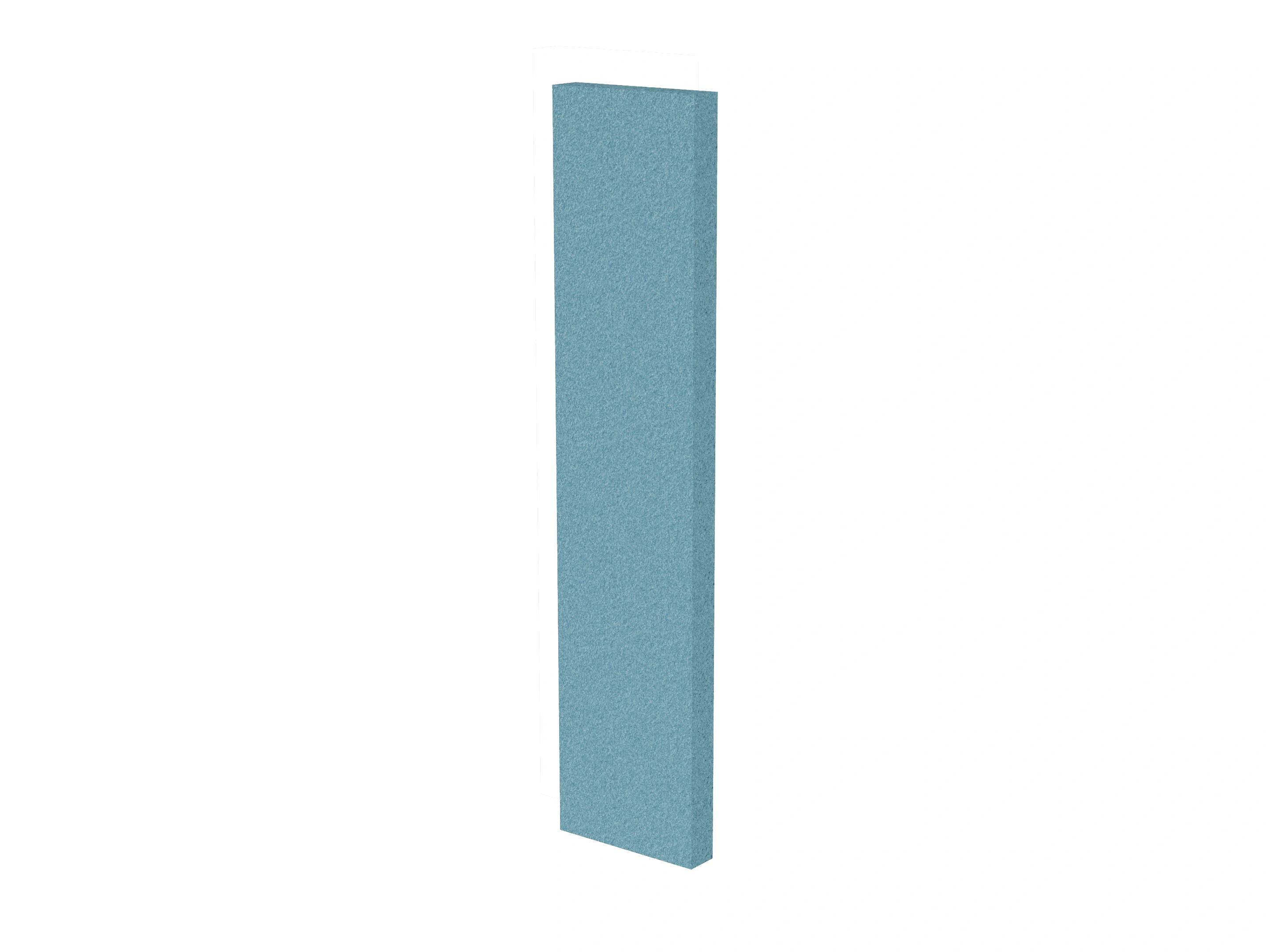 Vrijstaand akoestisch paneel, opgebouwd uit een 40mm berken multiplex frame, gevuld met gerecycled katoen, absorbtieklasse A/NRC waarde 0,95. Excl. stelpootjes, vloerkoker en stalen voeten. Verticale stiknaad zichtbaar in het midden van het paneel.