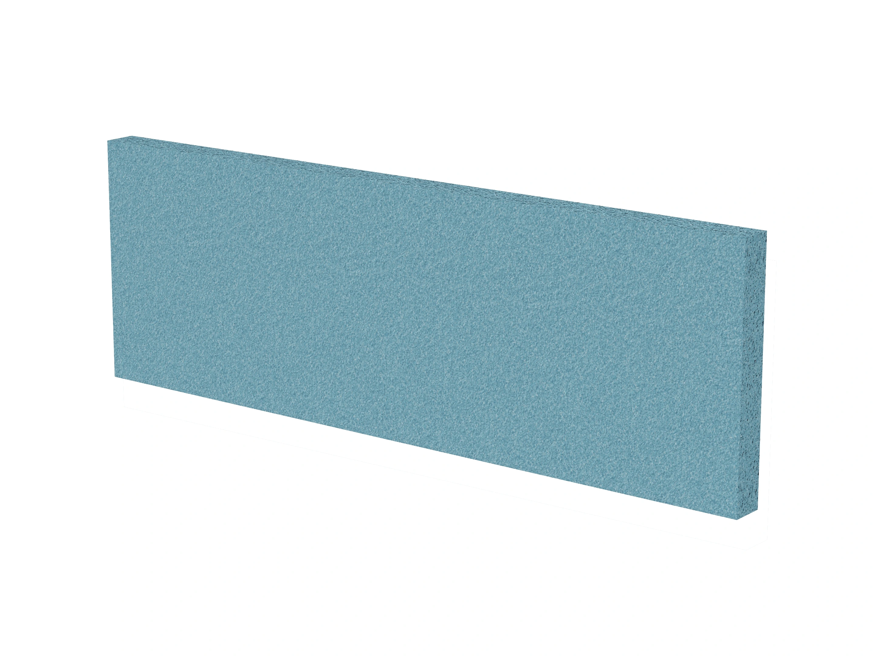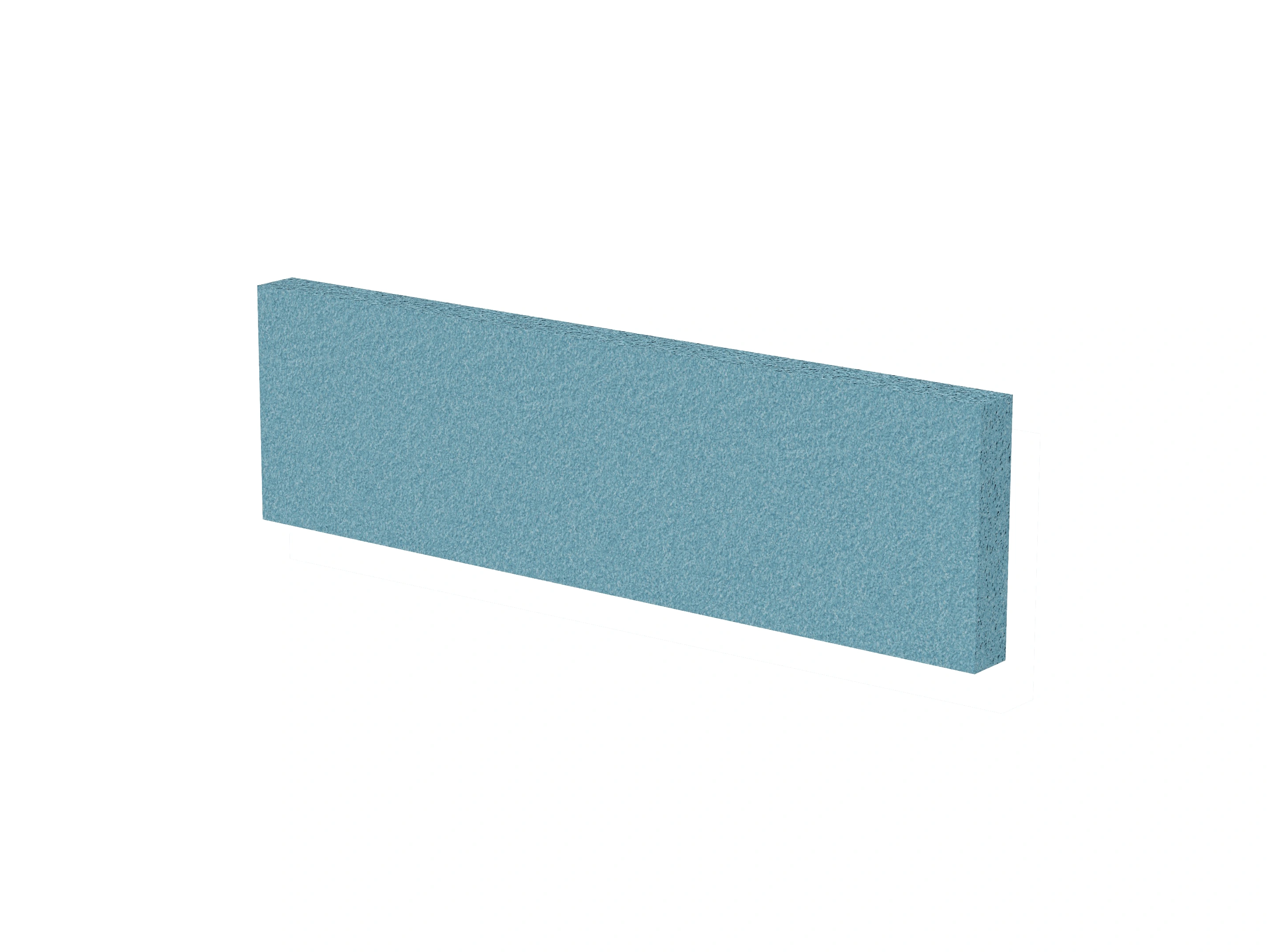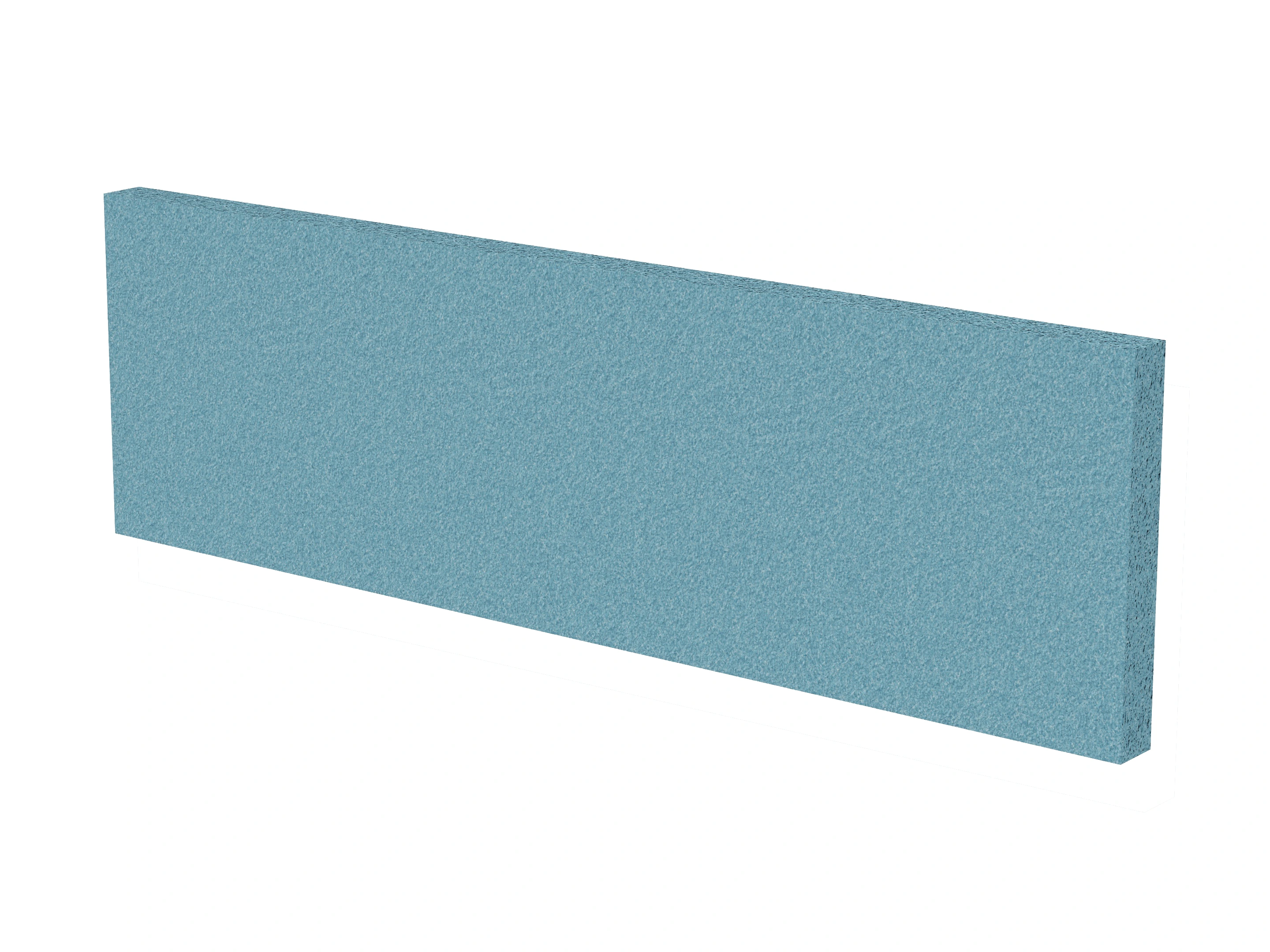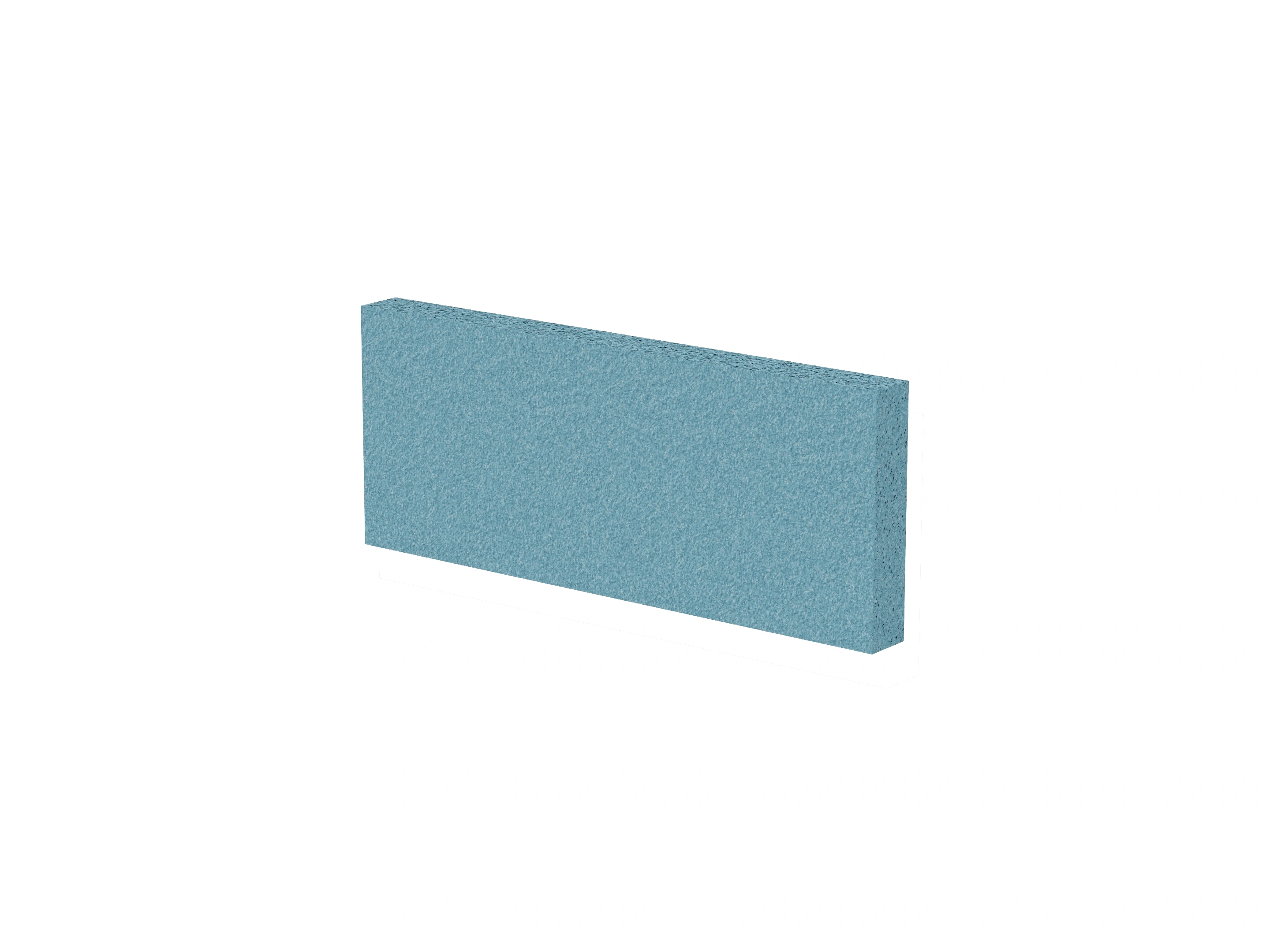 Vrijstaand akoestisch paneel, opgebouwd uit een 40mm berken multiplex frame, gevuld met gerecycled katoen, absorbtieklasse A/NRC waarde 0,95. Excl. stelpootjes, vloerkoker en stalen voeten. Verticale stiknaad zichtbaar in het midden van het paneel.