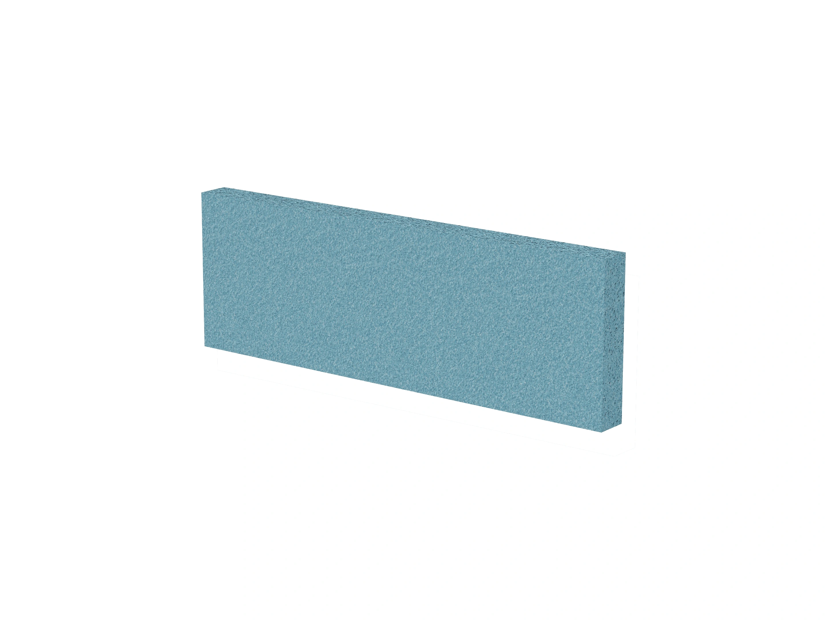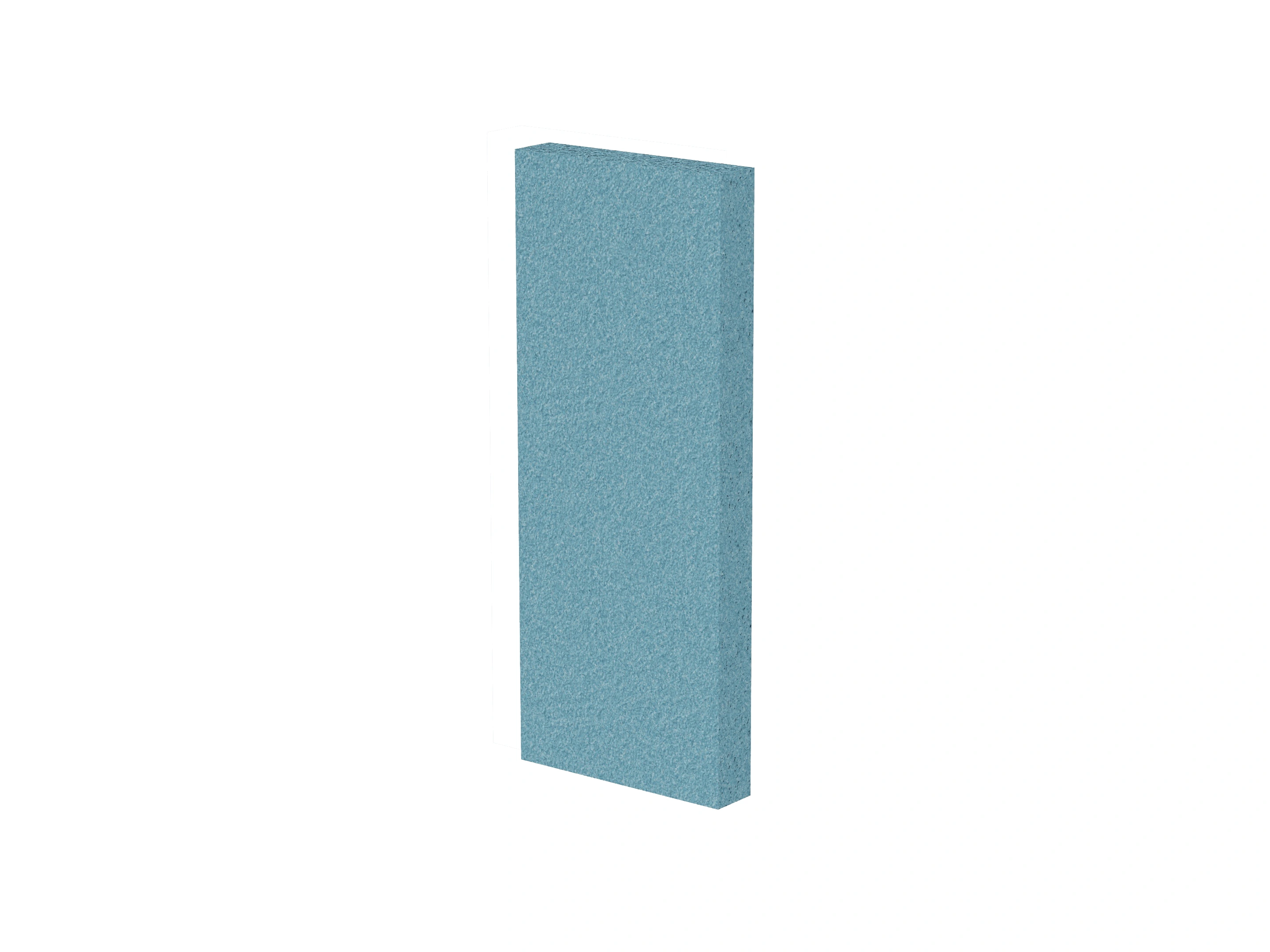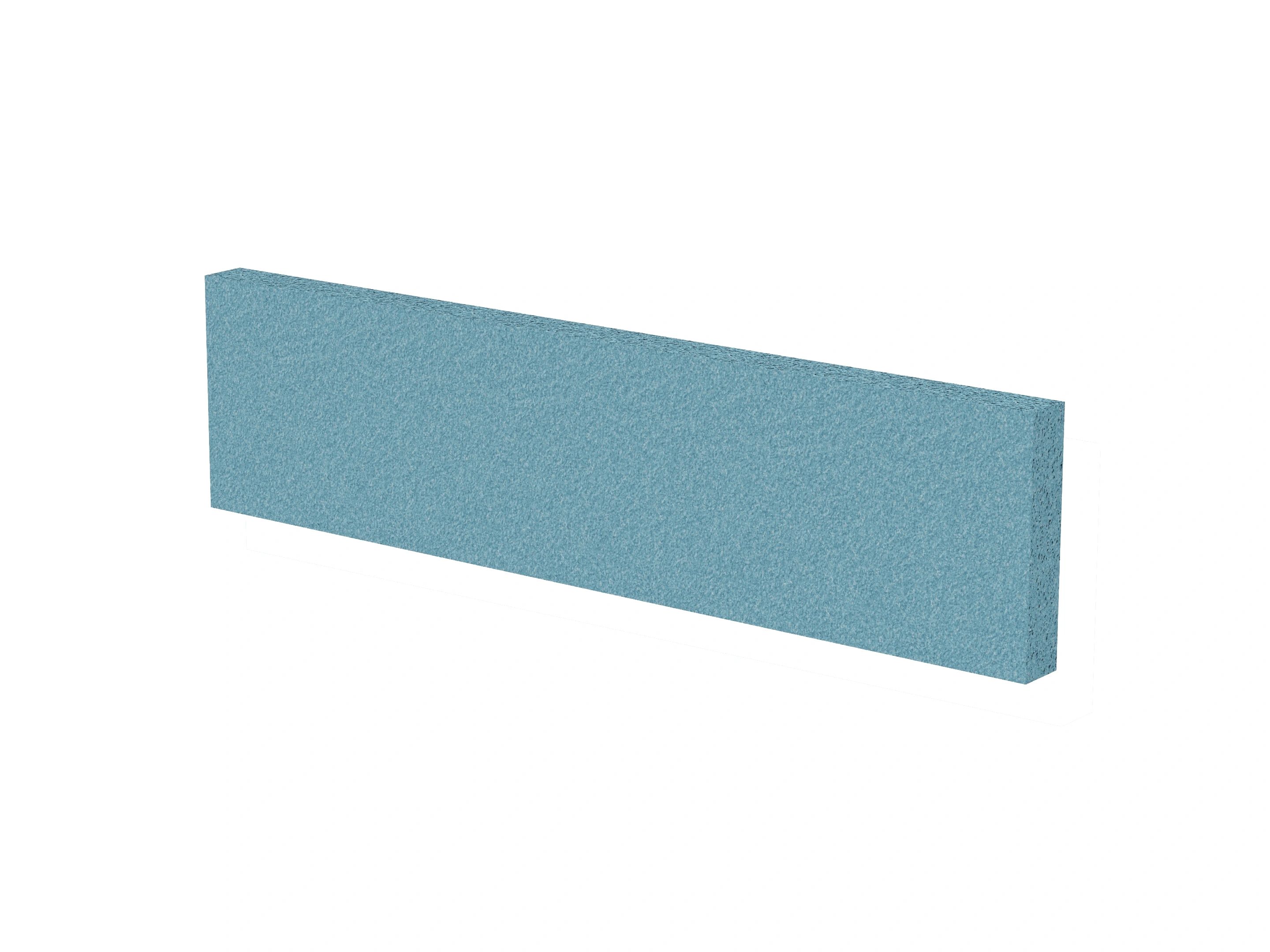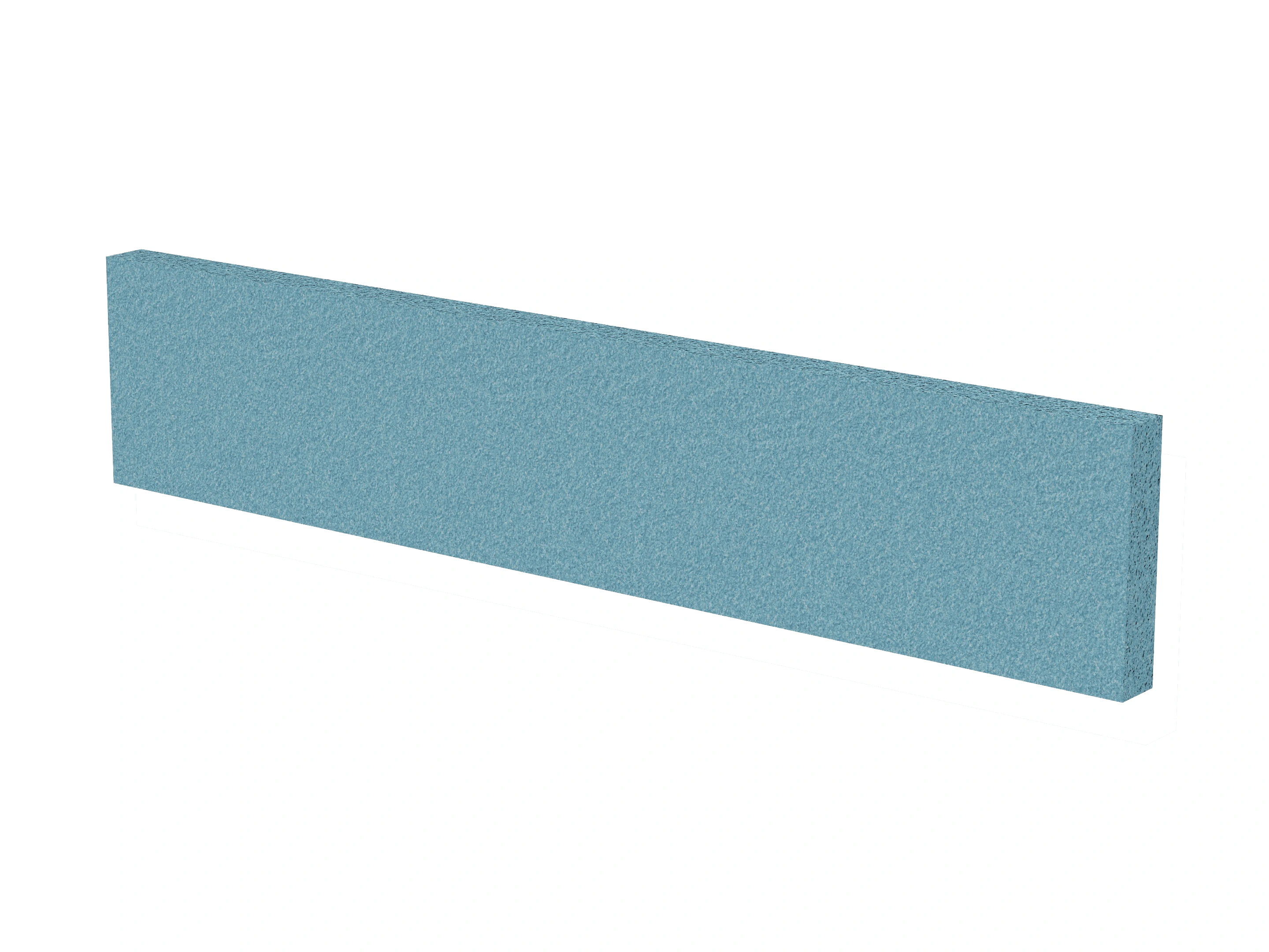 Vrijstaand akoestisch paneel, opgebouwd uit een 40mm berken multiplex frame, gevuld met gerecycled katoen, absorbtieklasse A/NRC waarde 0,95. Excl. stelpootjes, vloerkoker en stalen voeten. Verticale stiknaad zichtbaar in het midden van het paneel.