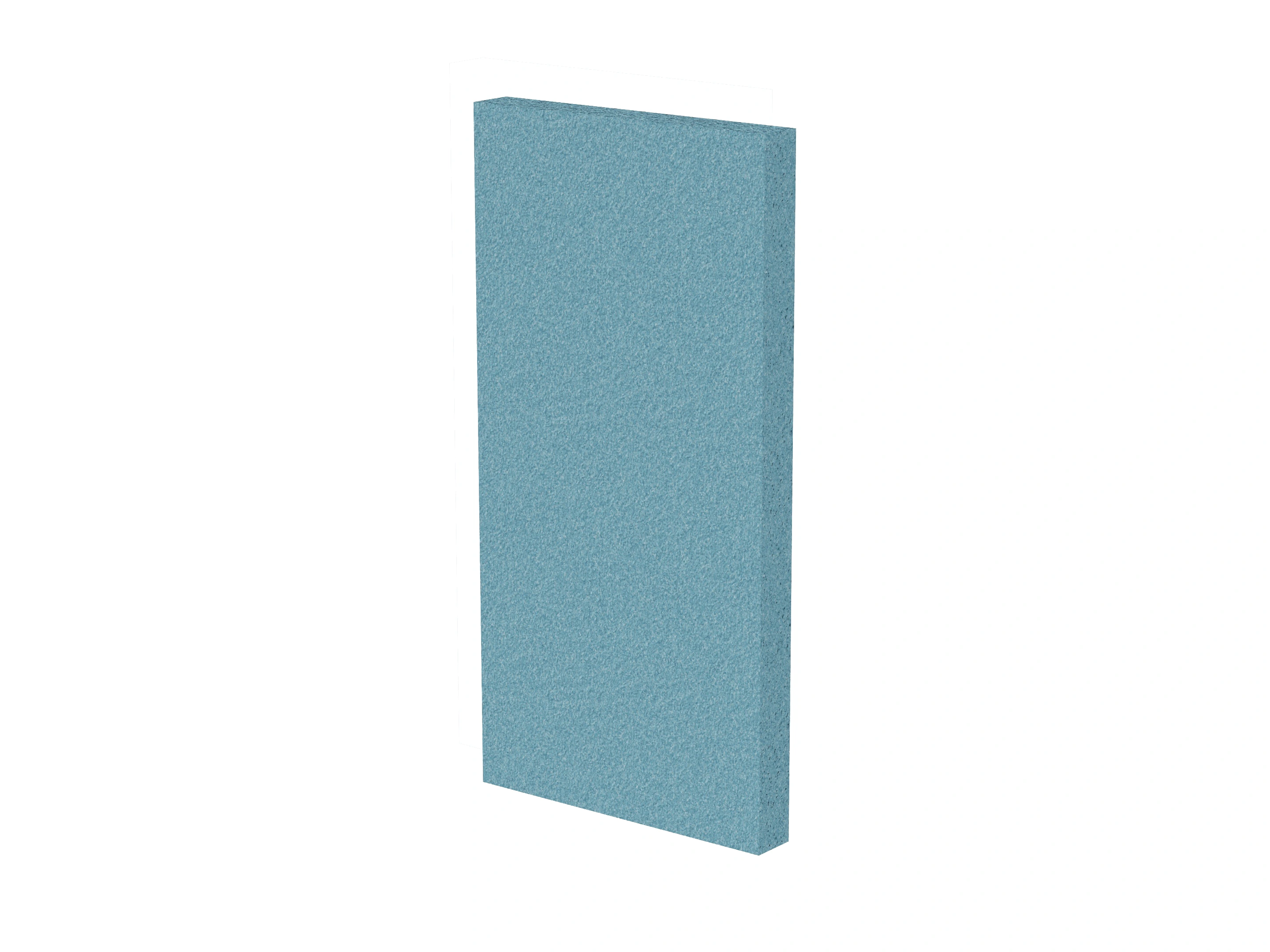 Vrijstaand akoestisch paneel, opgebouwd uit een 40mm berken multiplex frame, gevuld met gerecycled katoen, absorbtieklasse A/NRC waarde 0,95. Excl. stelpootjes, vloerkoker en stalen voeten.
