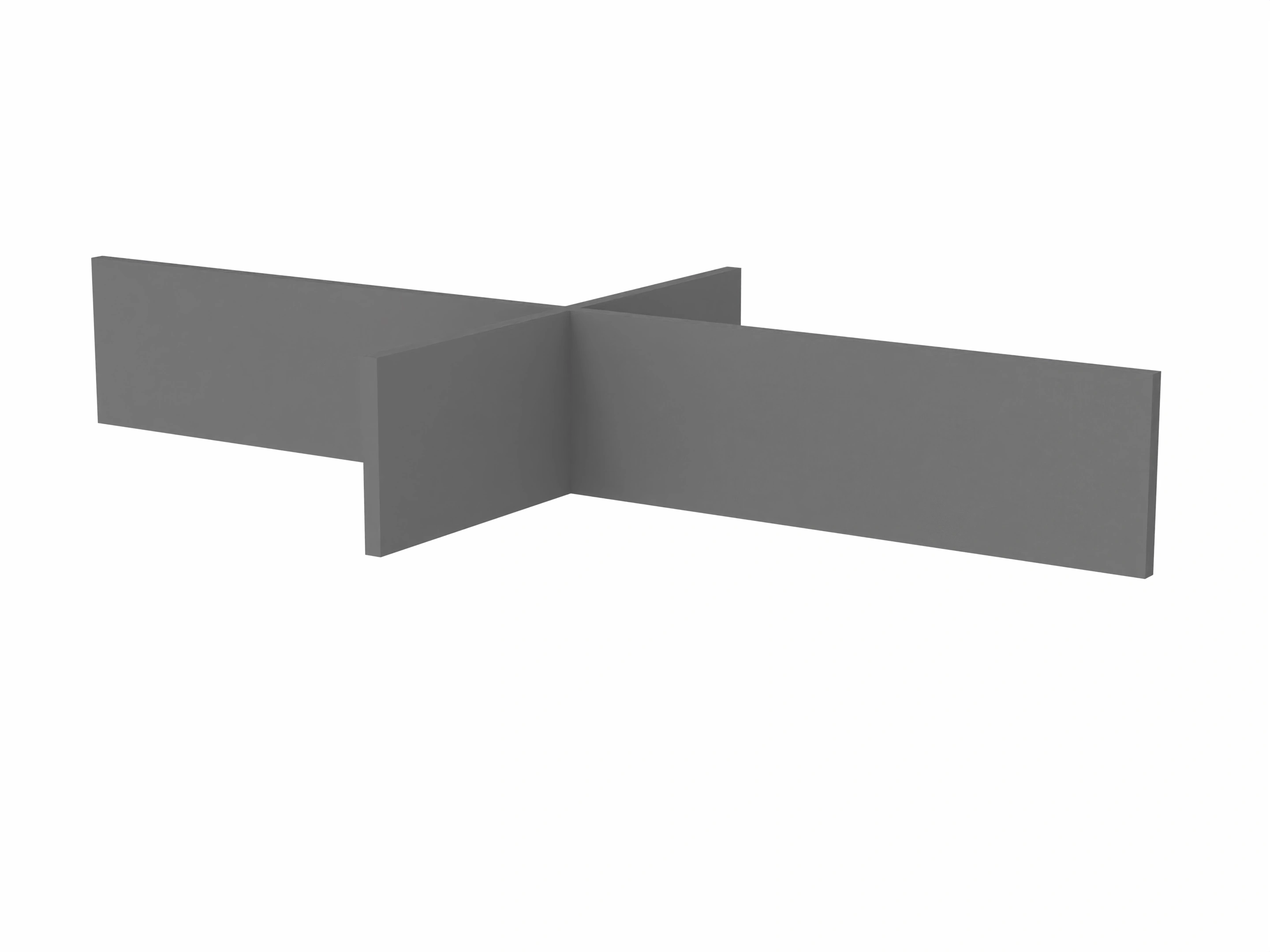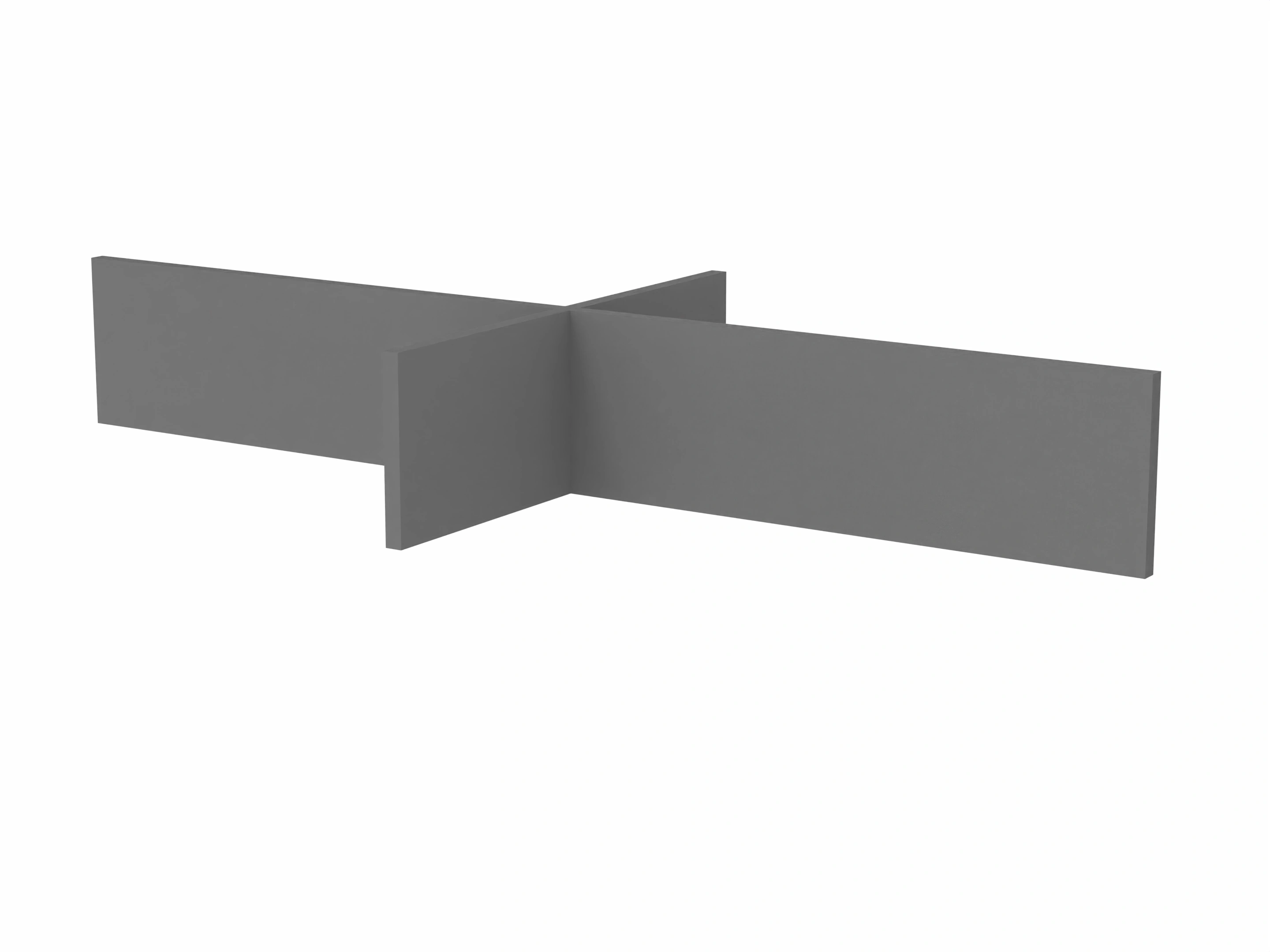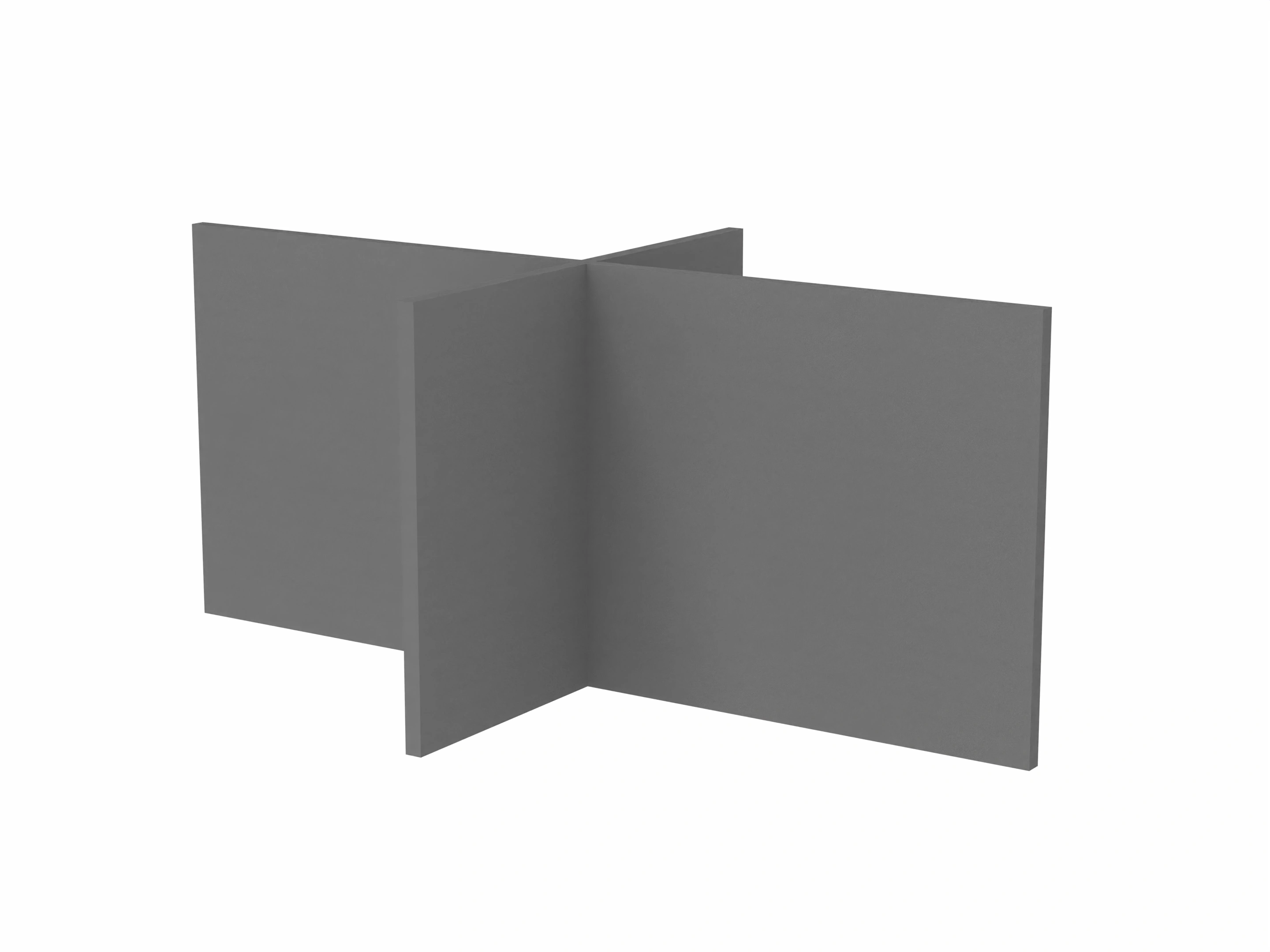 Bestaande uit 2 staande frontpanelen en 1 staand middenpaneel. Panelen zijn opgebouwd uit een 40mm berken multiplex frame, gevuld met gerecycled katoen, absorbtieklasse A/NRC waarde 0,95. Gegeven maatvoering zijn de bureaumaten