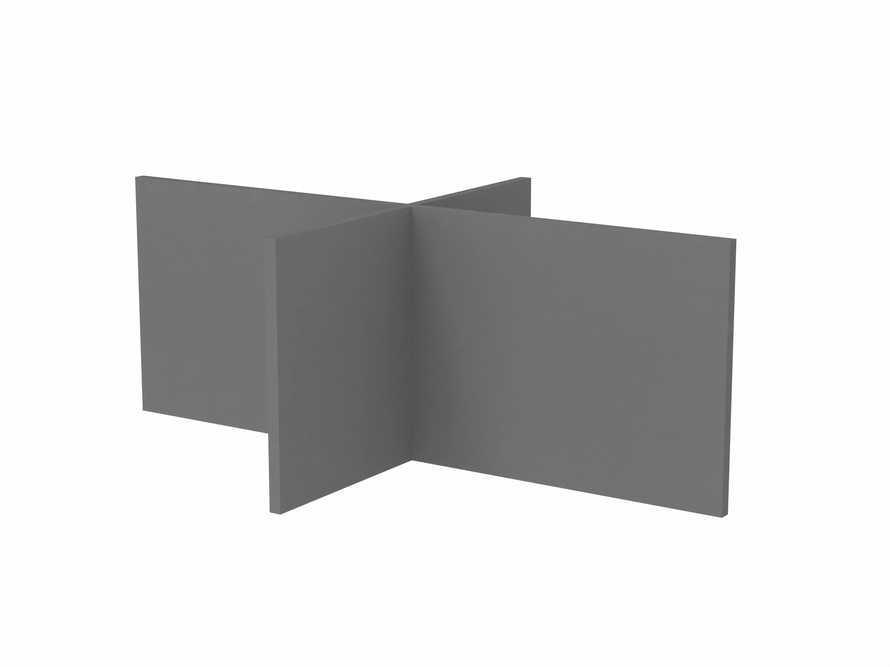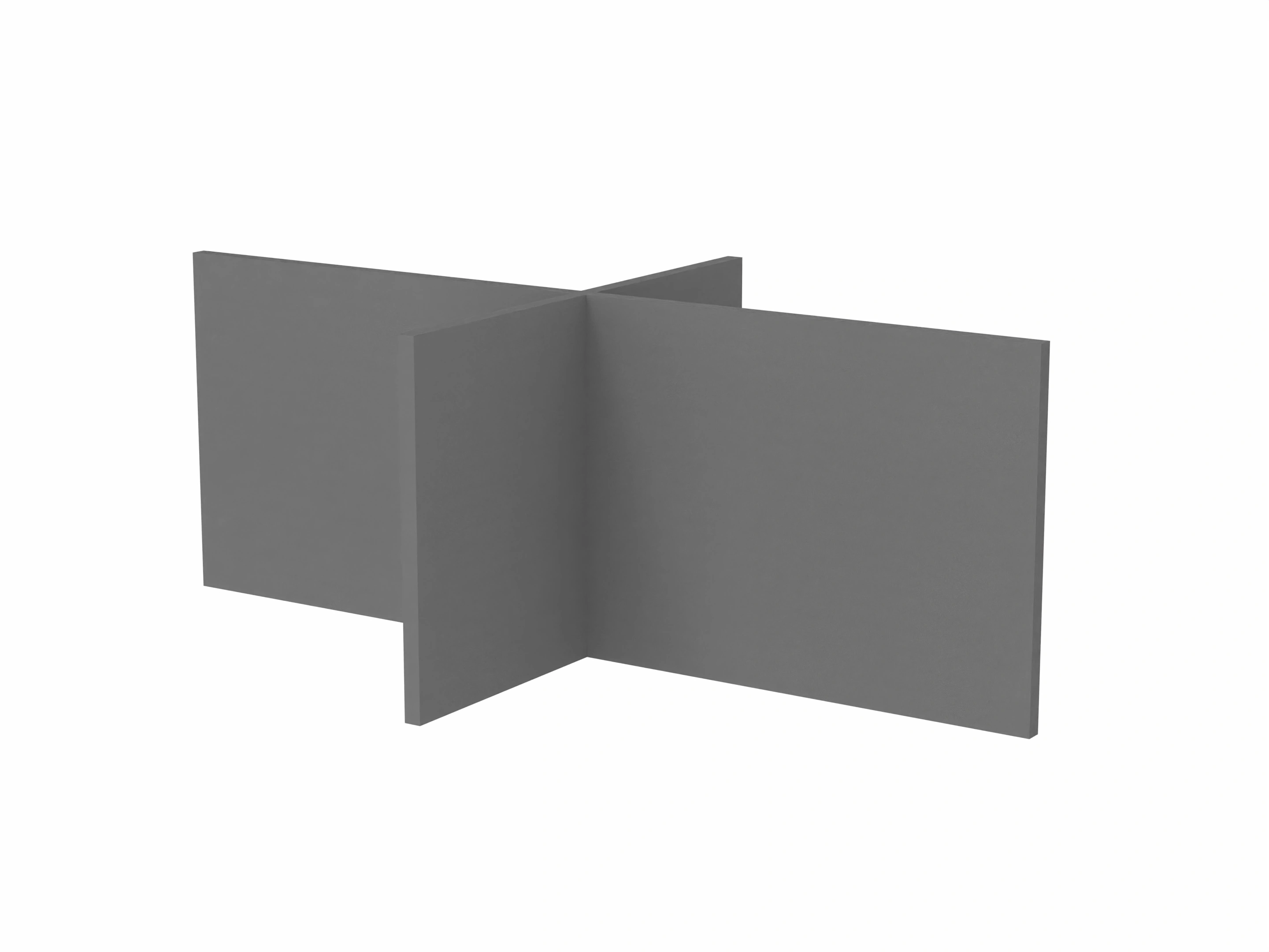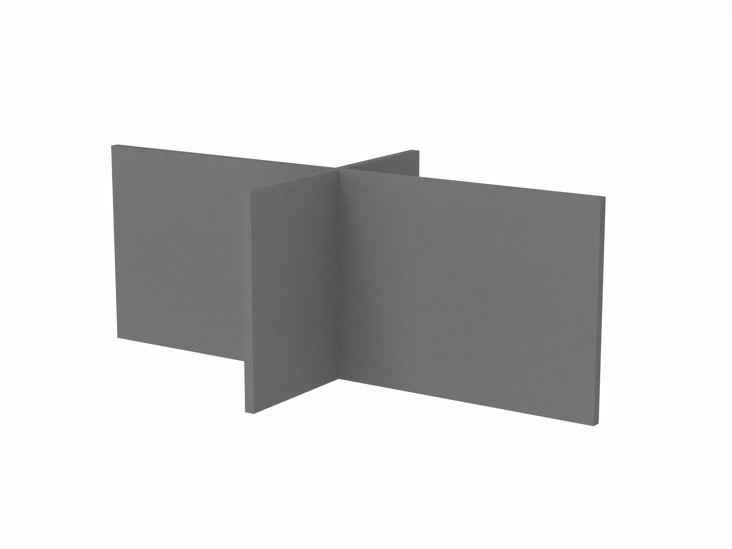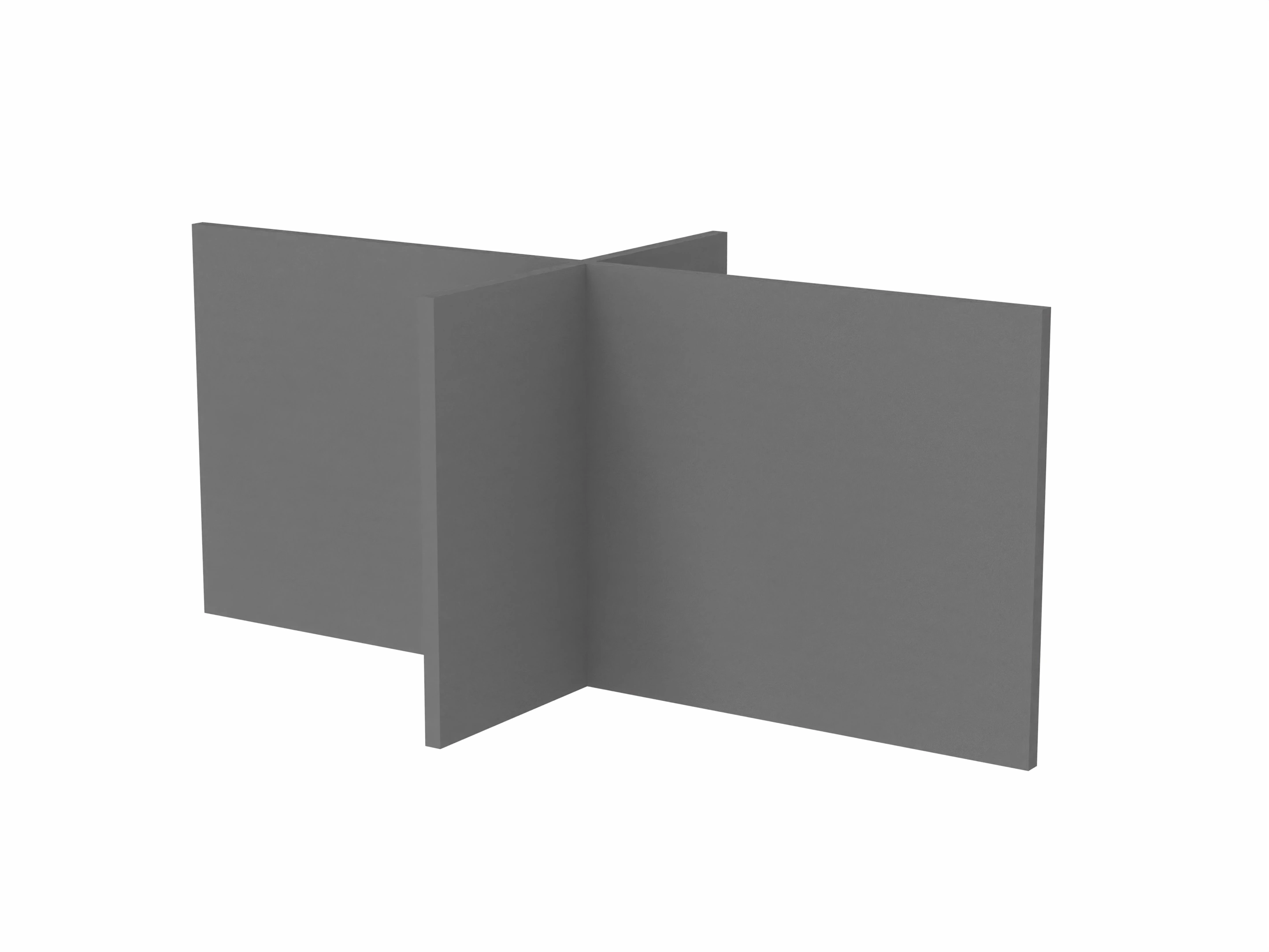 Bestaande uit 2 staande frontpanelen en 1 staand middenpaneel. Panelen zijn opgebouwd uit een 40mm berken multiplex frame, gevuld met gerecycled katoen, absorbtieklasse A/NRC waarde 0,95. Gegeven maatvoering zijn bureaumaten