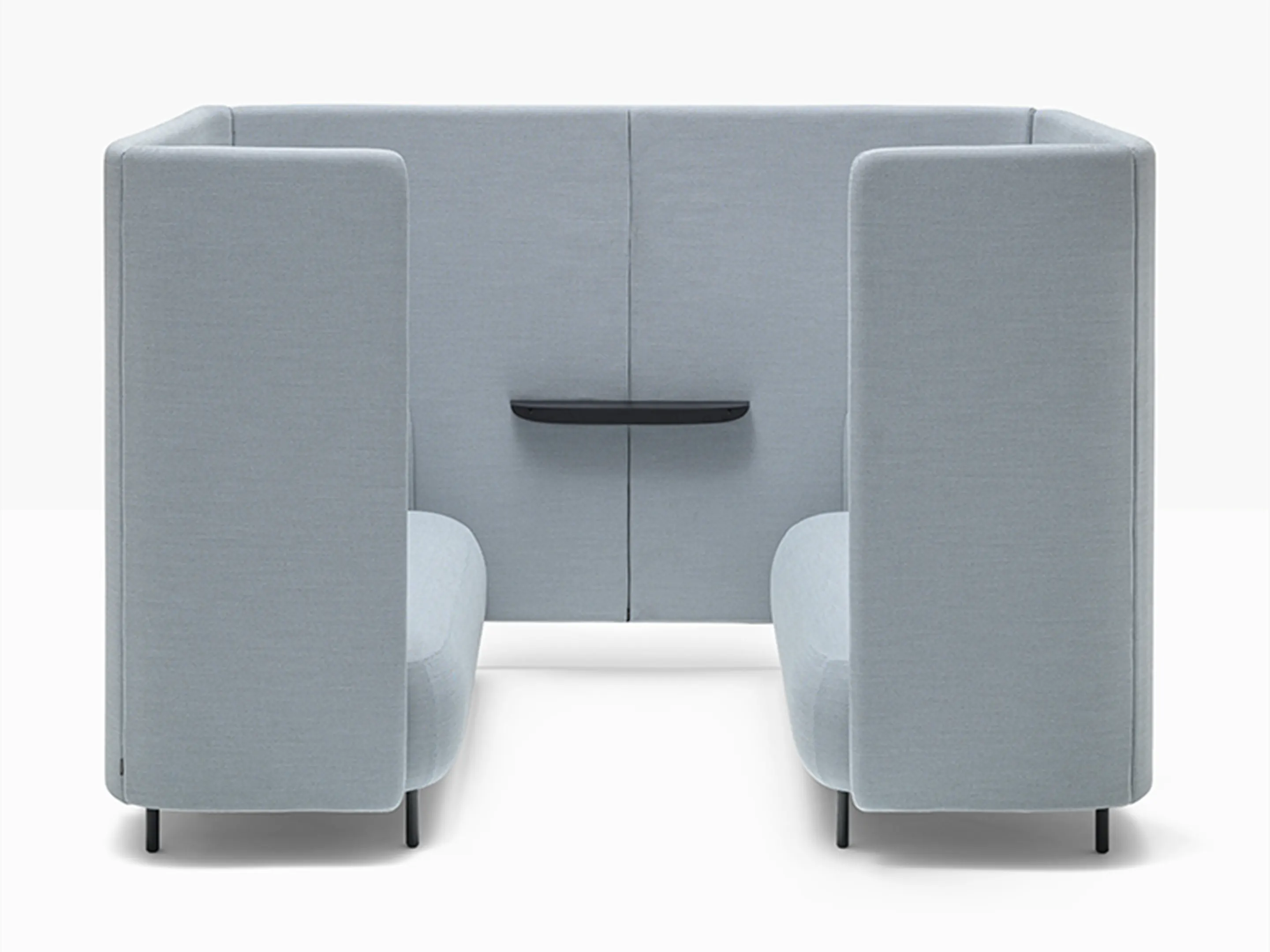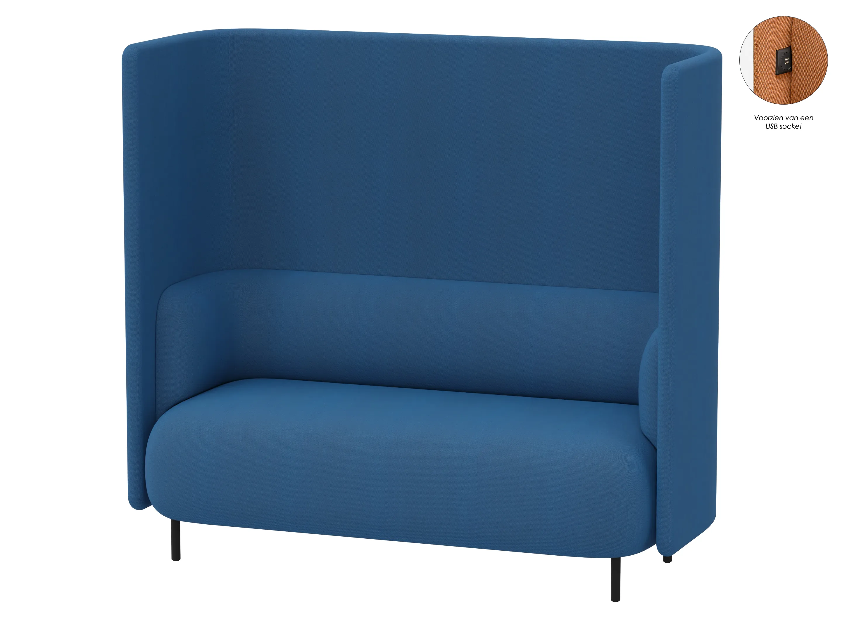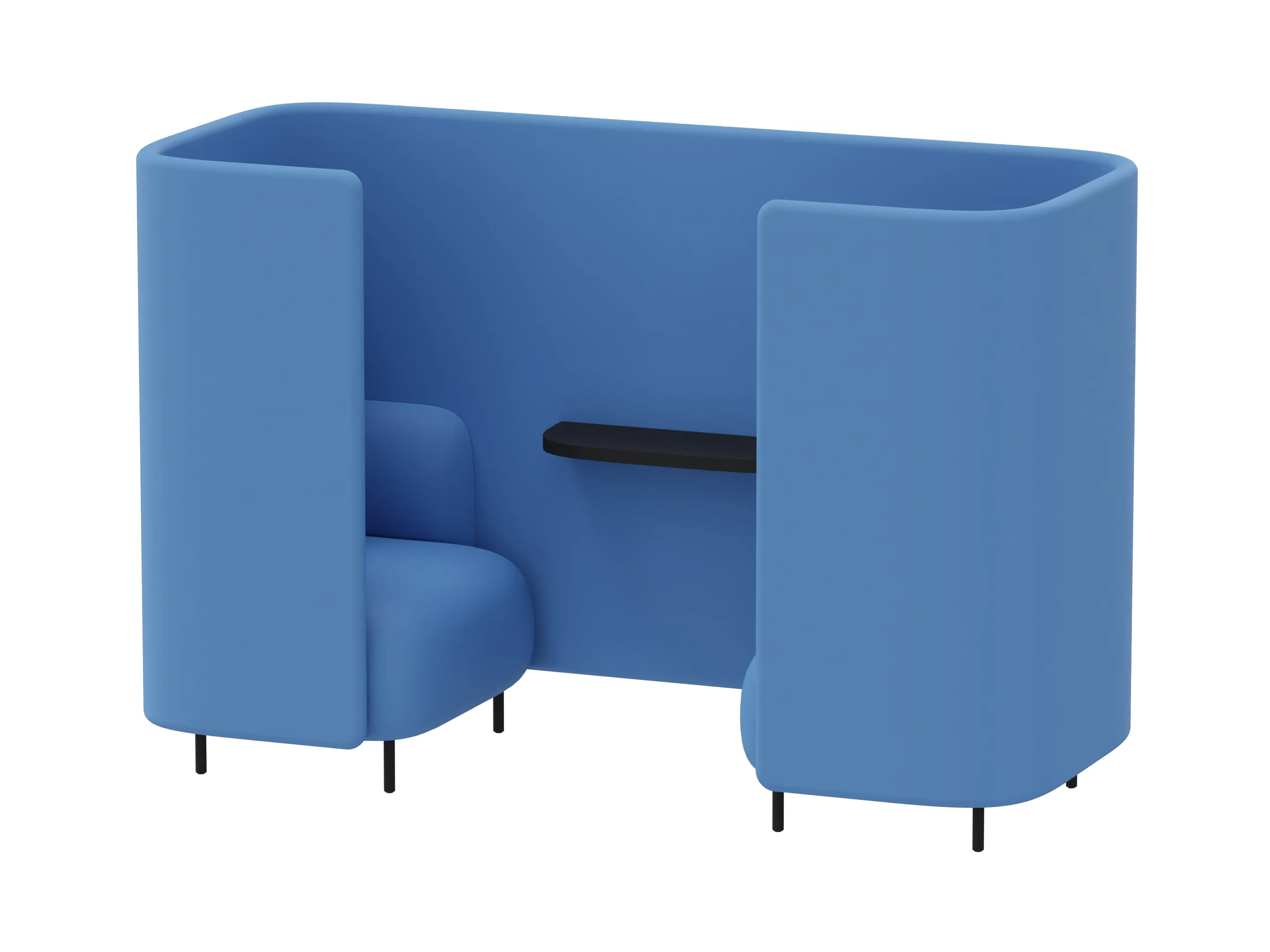 Volledig gestoffeerde hub met een hoge ombouw. Binnenzijde is een tafel (met steunpoot). Het achterpaneel is voorzien van kabelmanagement t.b.v. het ophangen van multimedia. Afmeting: 2140 x 915 x 1400mm (BxDxH)