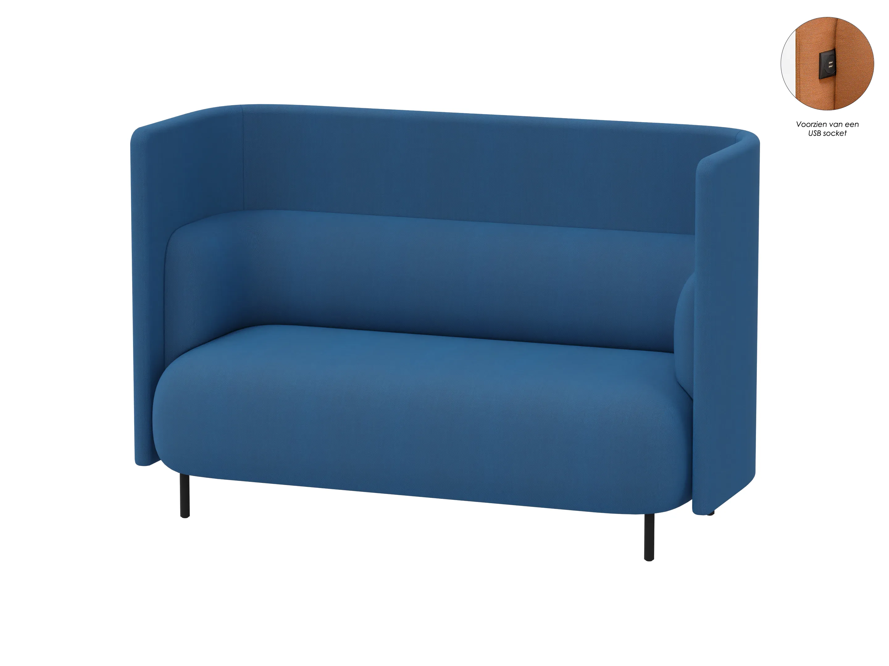 Volledig gestoffeerde fauteuil met een hoge ombouw.In het zijpaneel is een USB socket voorzien. Afmeting: 915 x 715 x 1400mm (BxDxH)