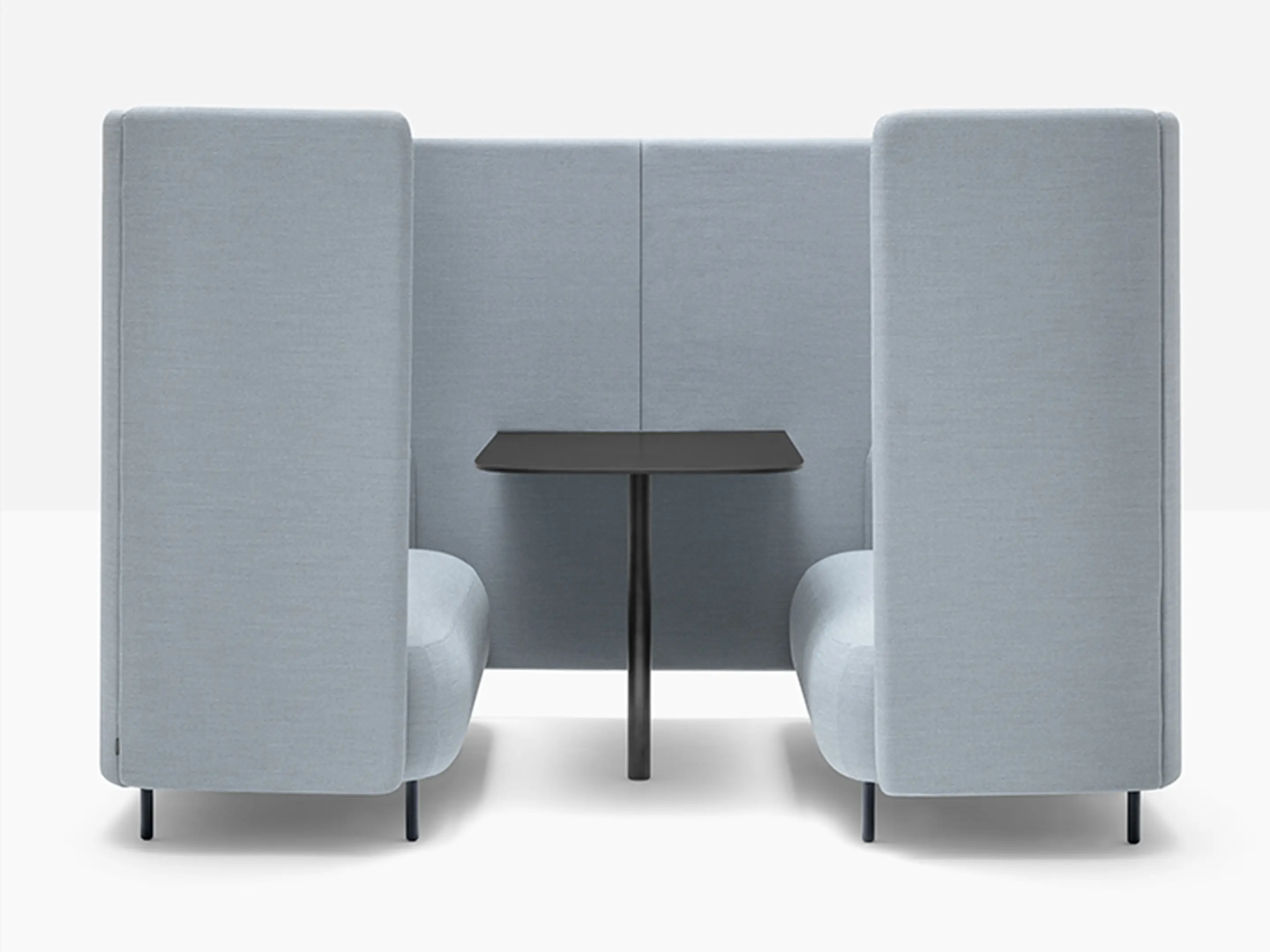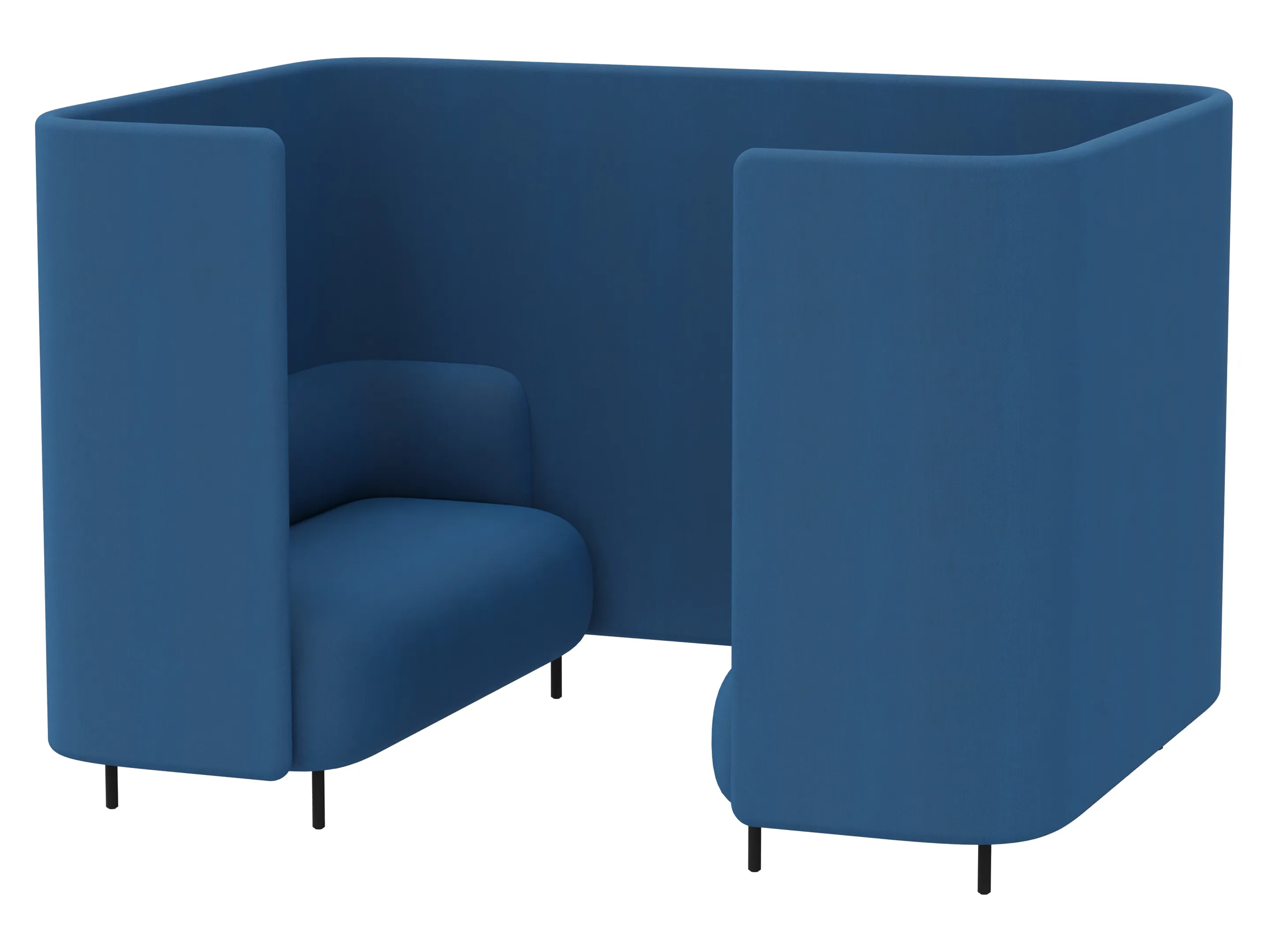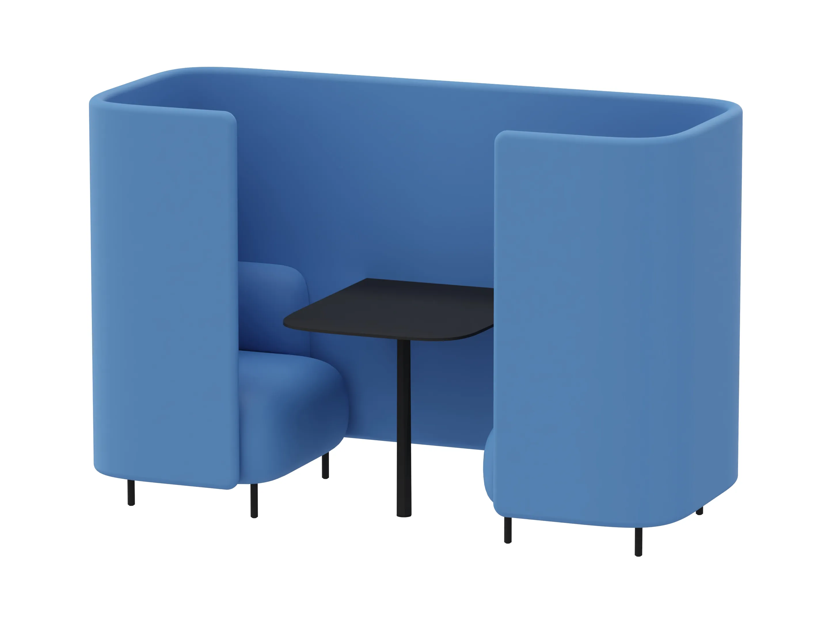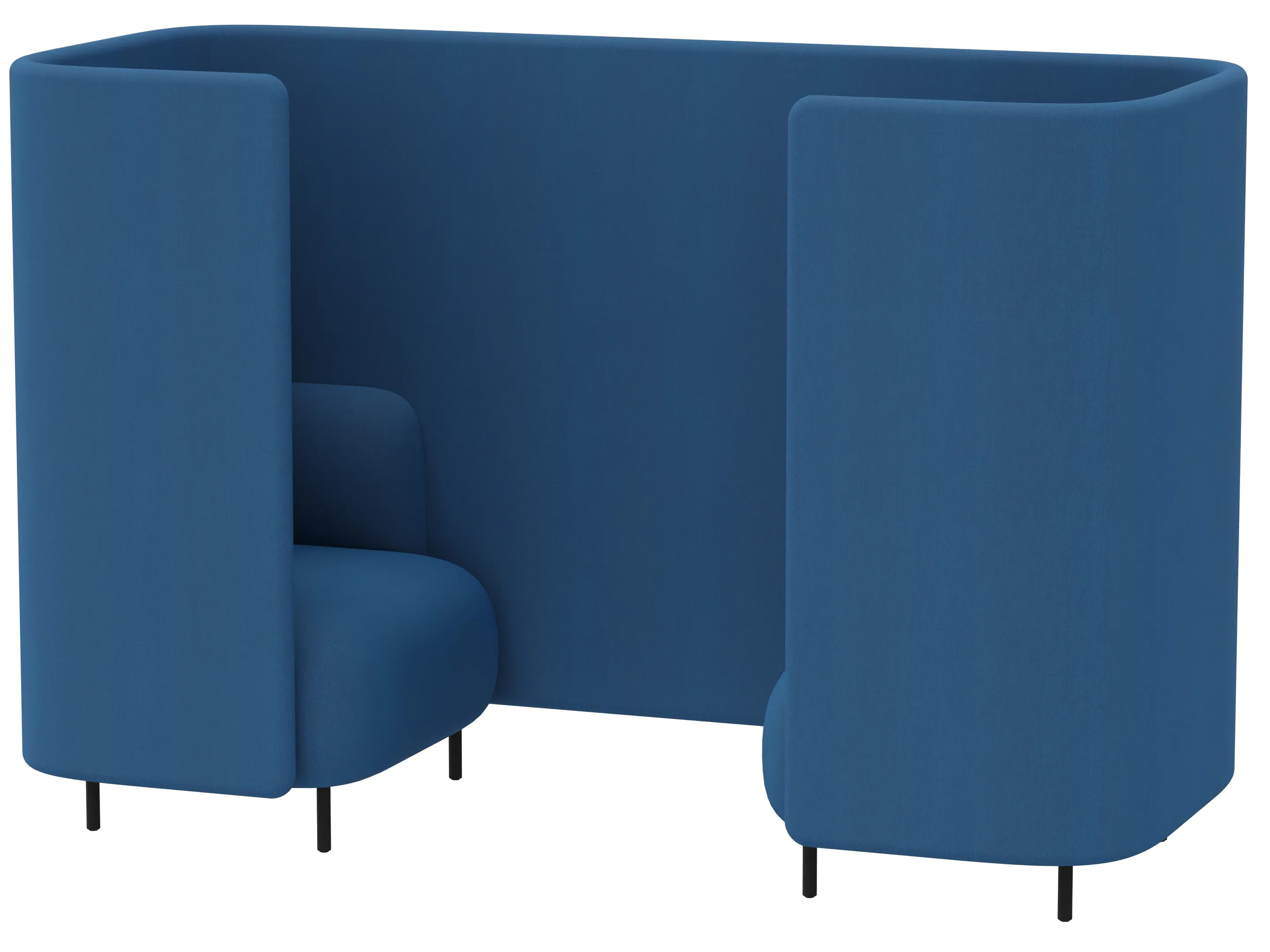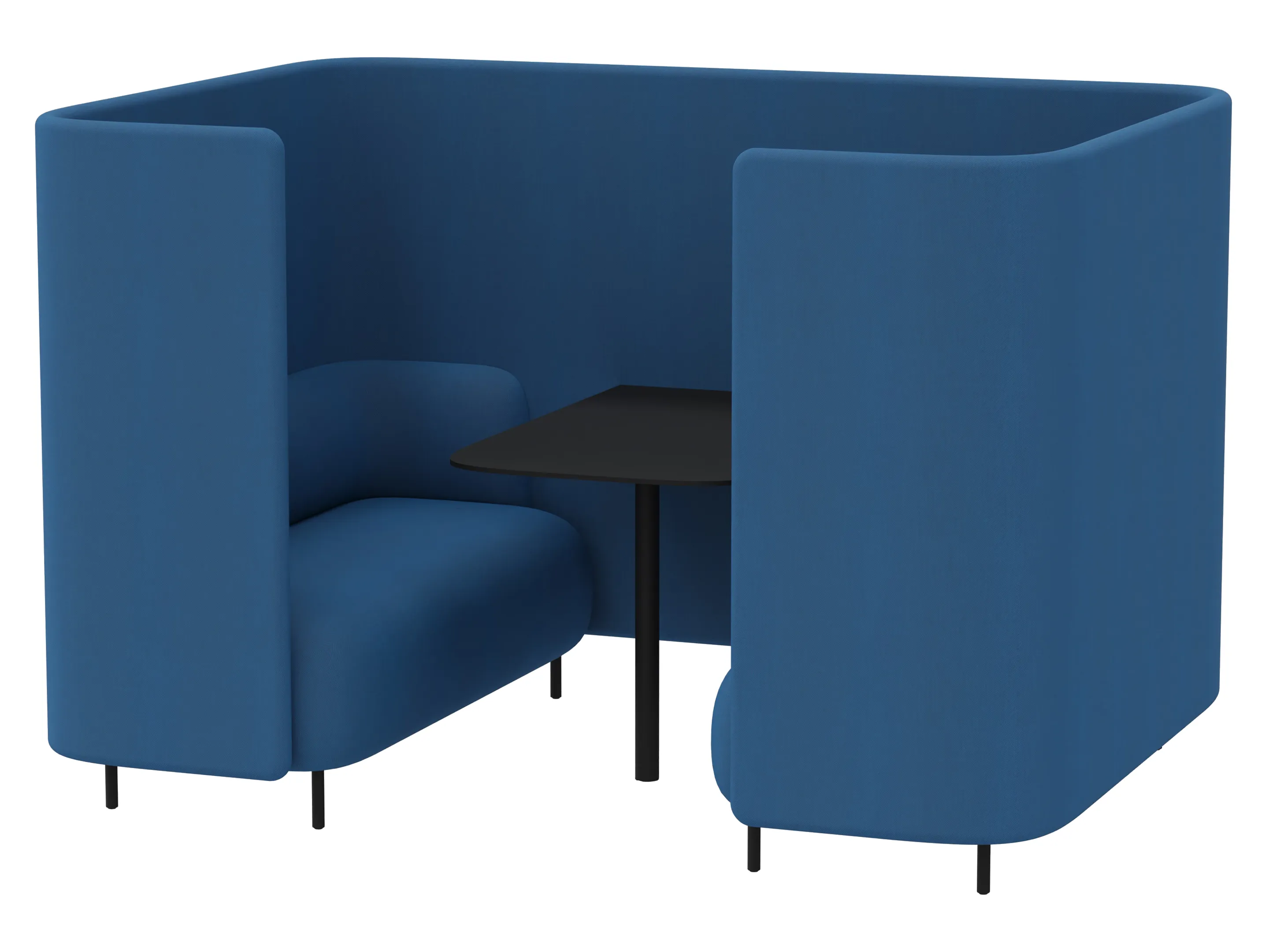 Volledig gestoffeerde hub met een hoge ombouw. Binnenzijde is een tafel (met steunpoot). Het achterpaneel is voorzien van kabelmanagement t.b.v. het ophangen van multimedia. Afmeting: 2140 x 1565 x 1400mm (BxDxH)