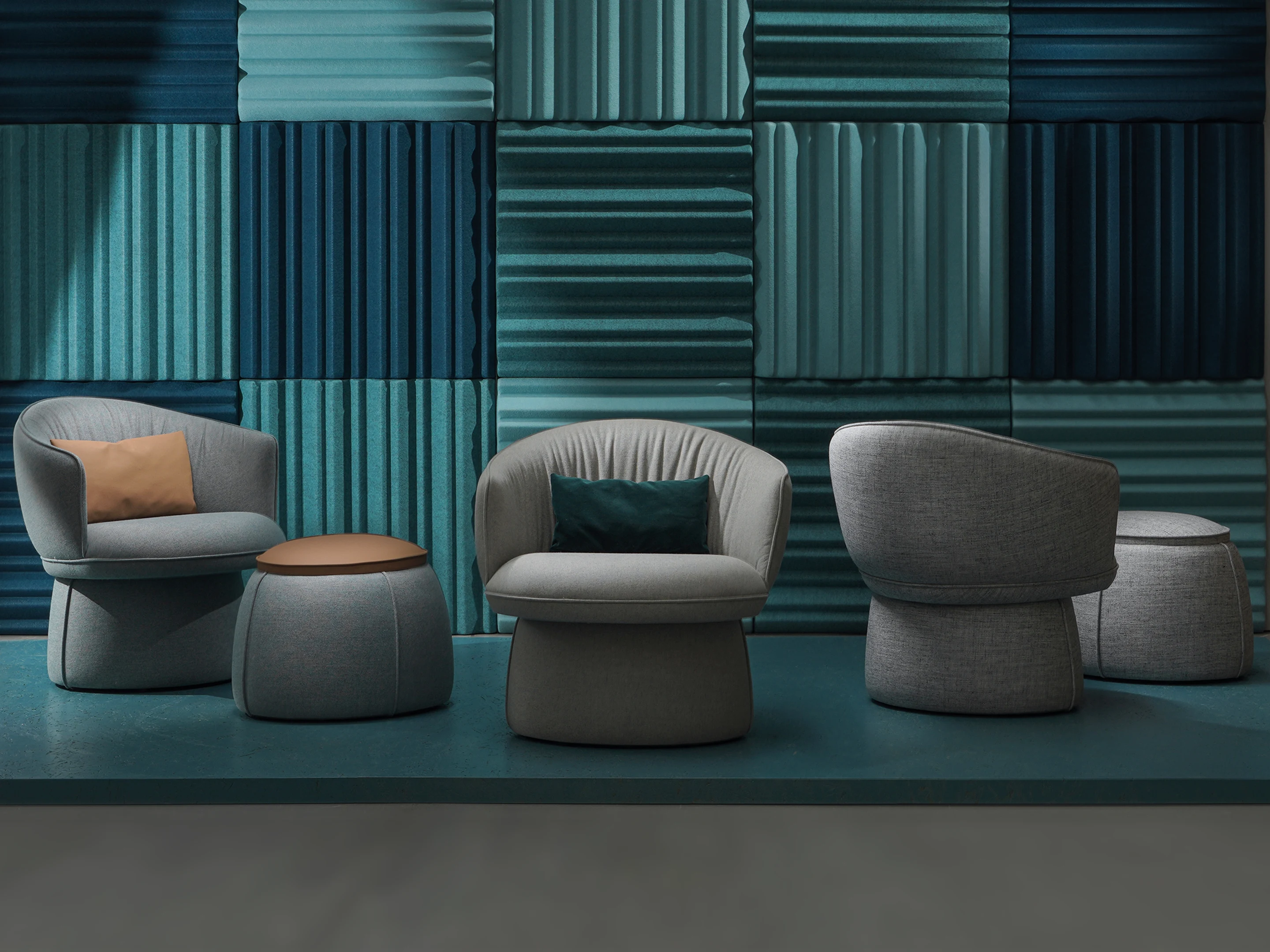 Bussola Fauteuil - Poef, Volledig gestoffeerd